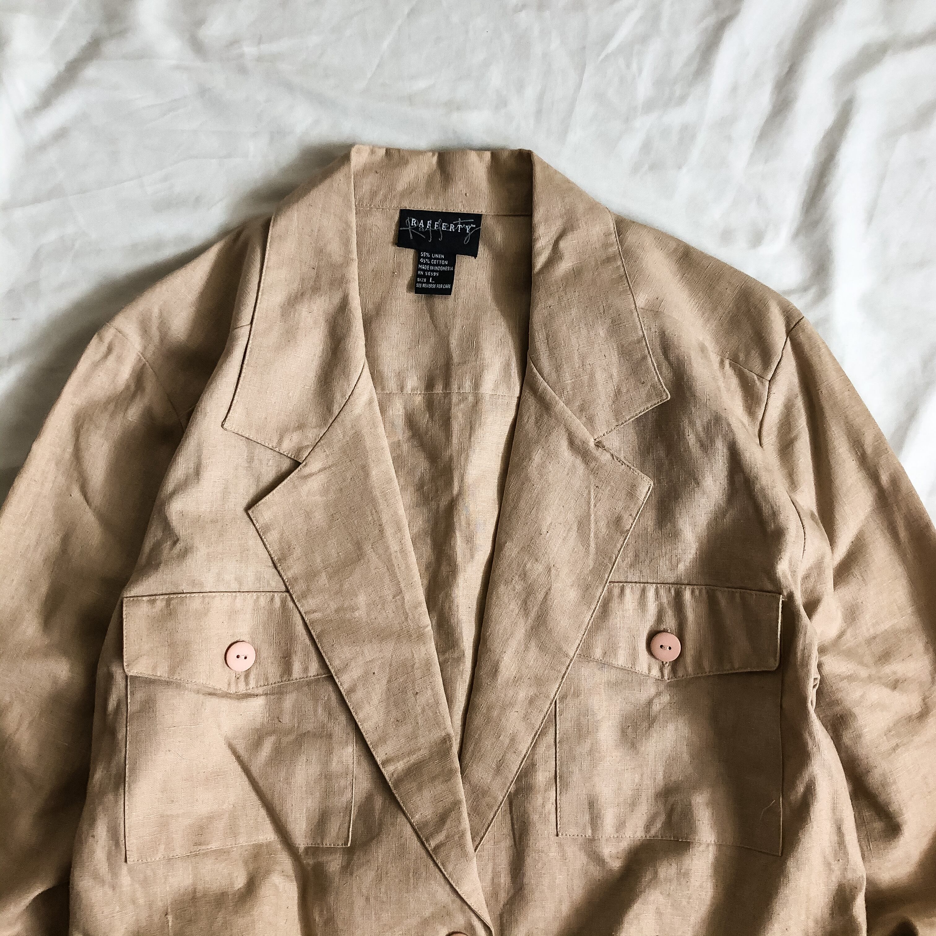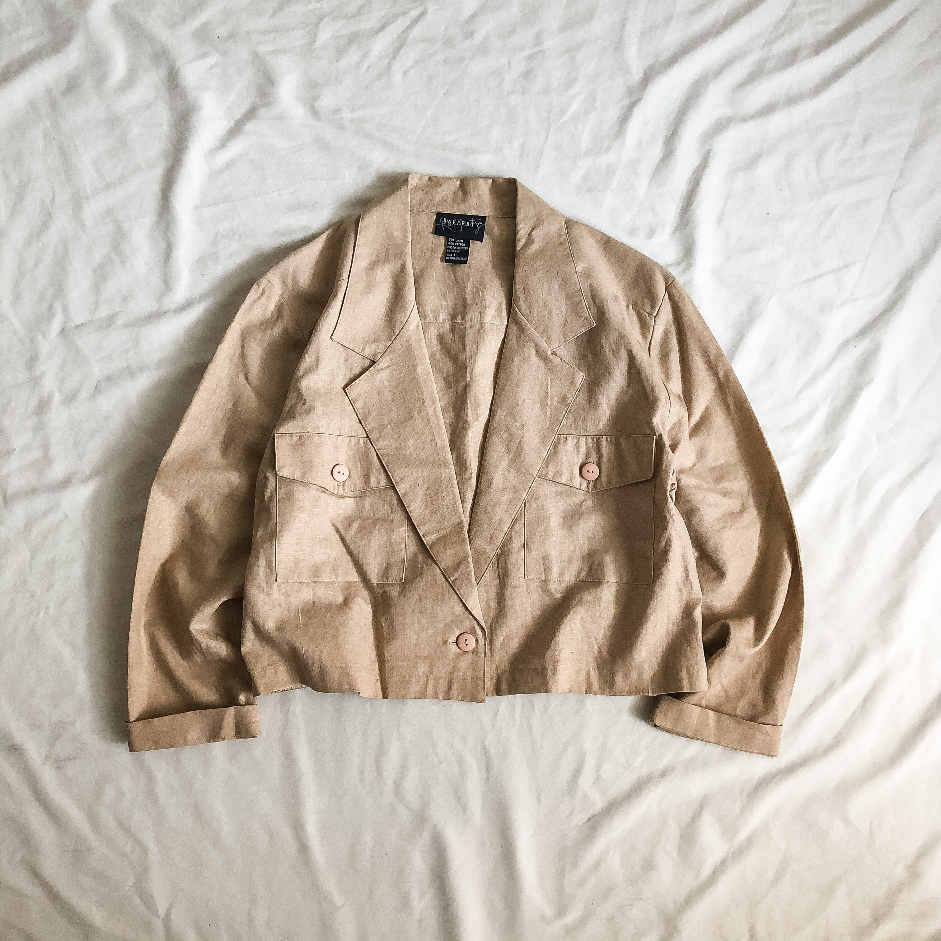1990s~ beige linen×cotton short tailored Jacket