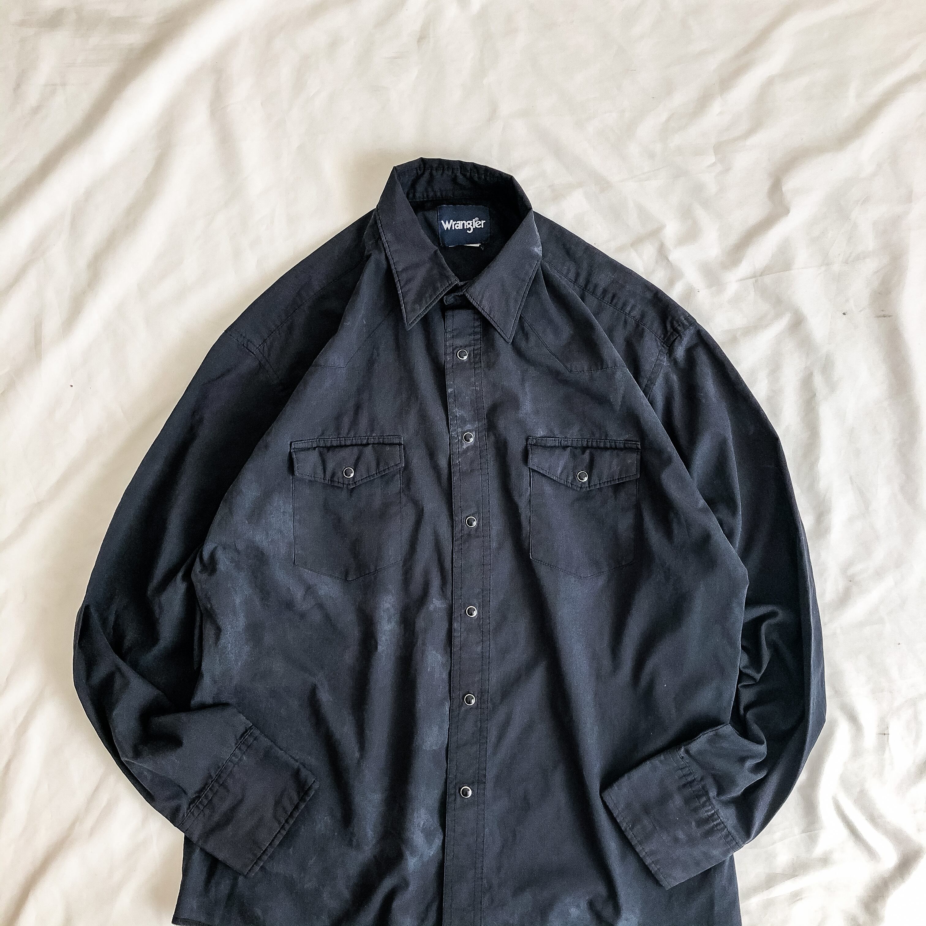 特徴 :ブラックボディーに所々がブリーチされたようなフェードの雰囲気が素晴らしいラングラーのウエスタンシャツ。