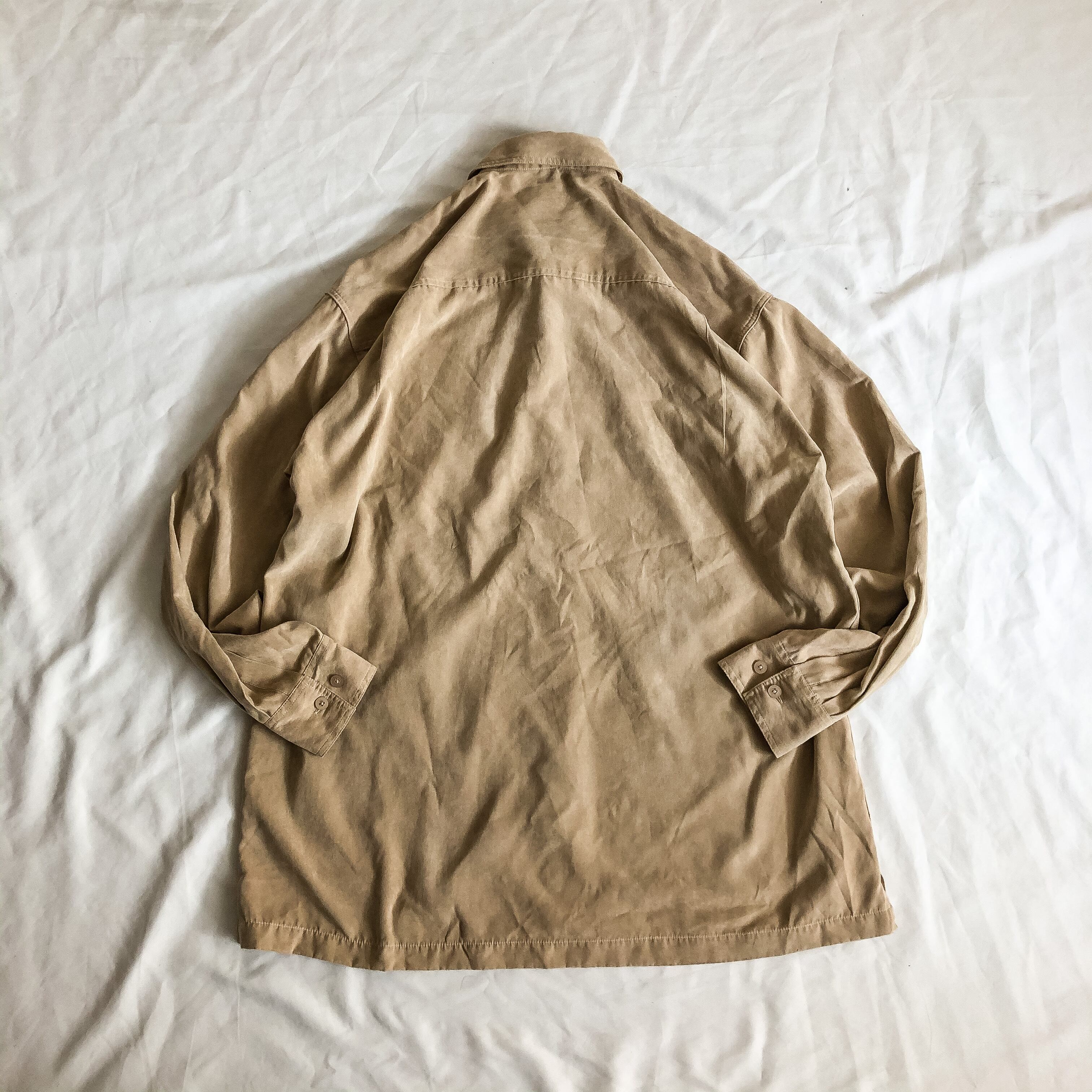 1990's~ bigsize beige fake suede shirt