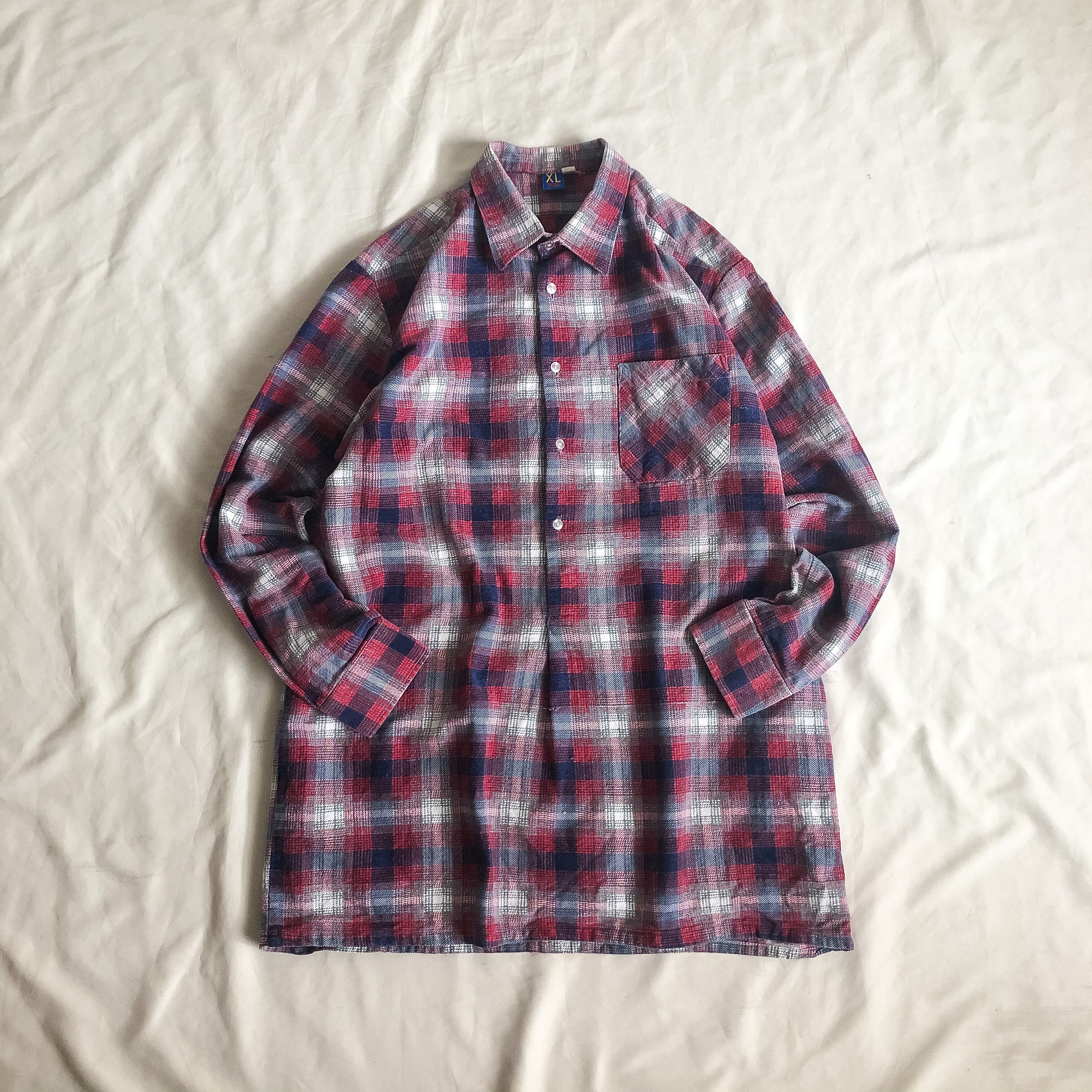Vintage 1970's~1980's Euro plaid pattern grandfather shirt
