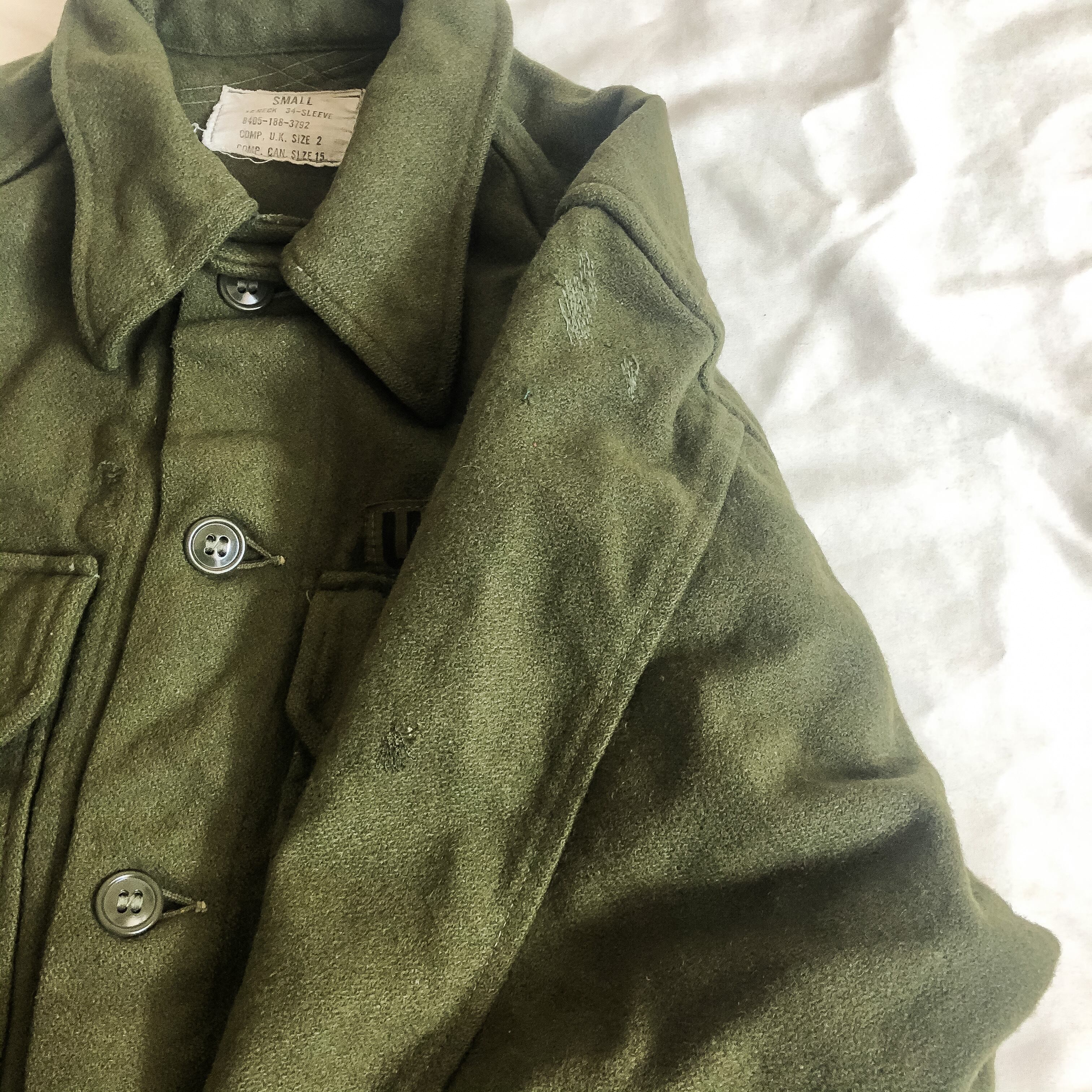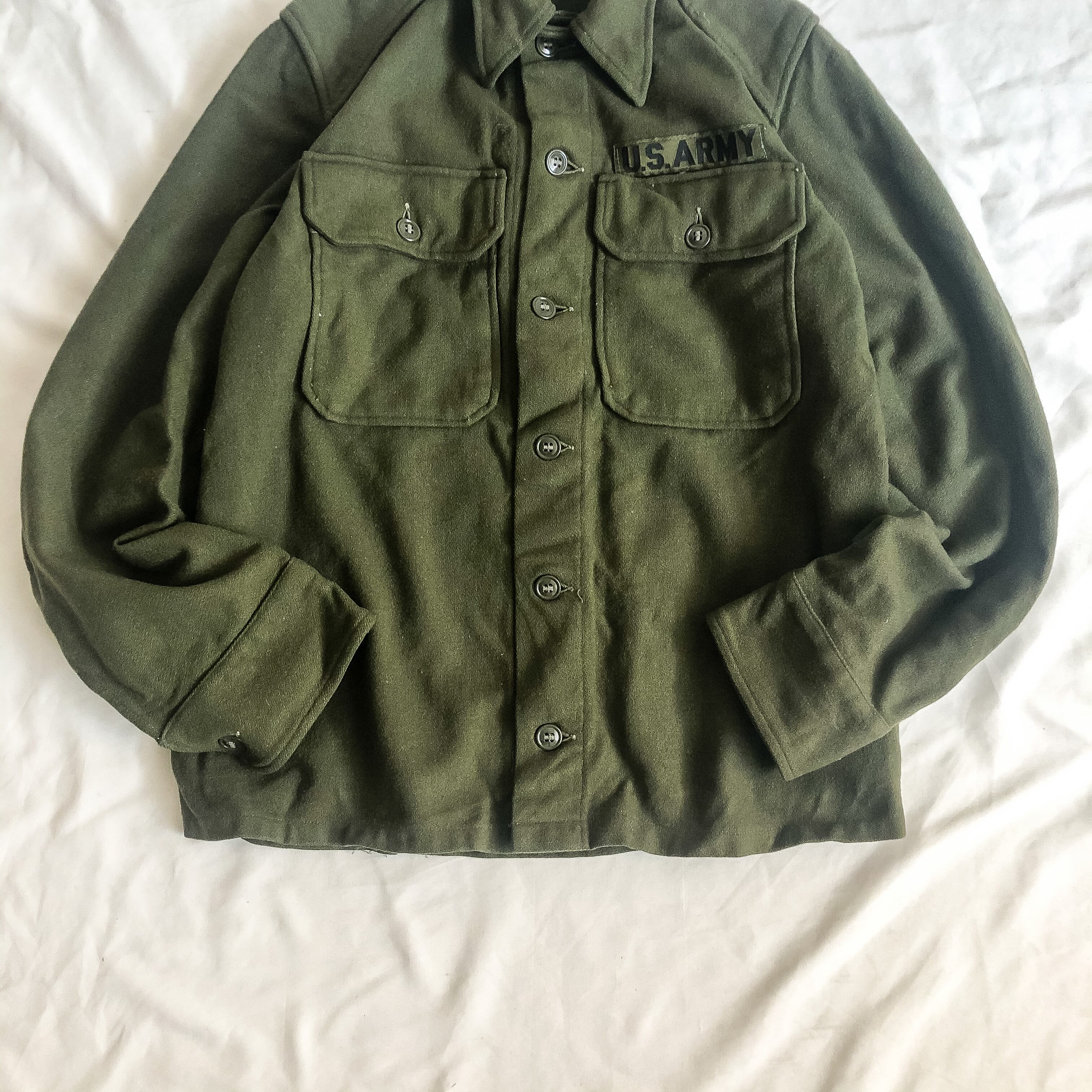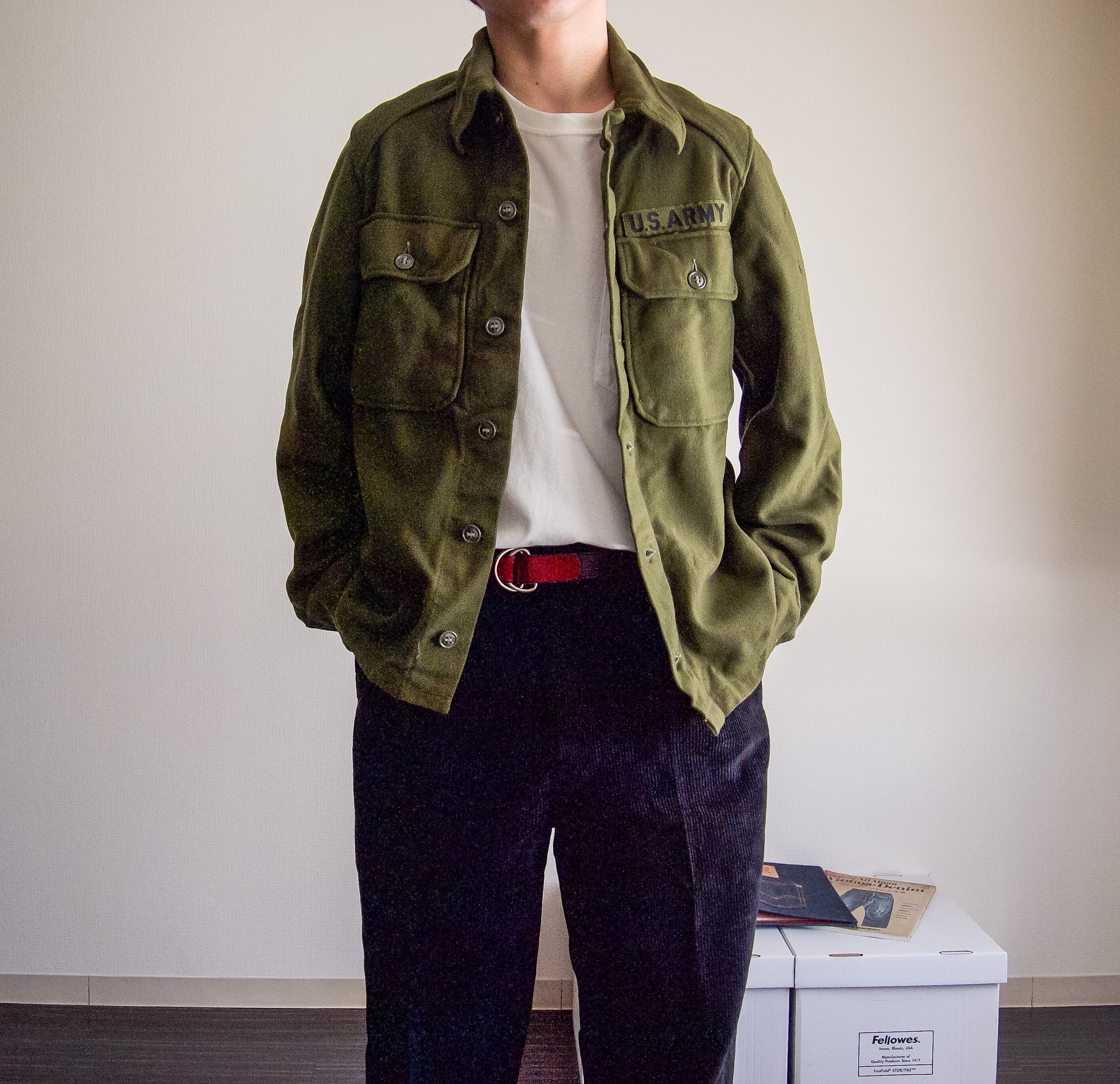 特徴 :ミリタリーらしいオリーブカラーでしっかりとした質感のウールが使用された50年代頃のUS ARMYのヴィンテージウールシャツジャケット。