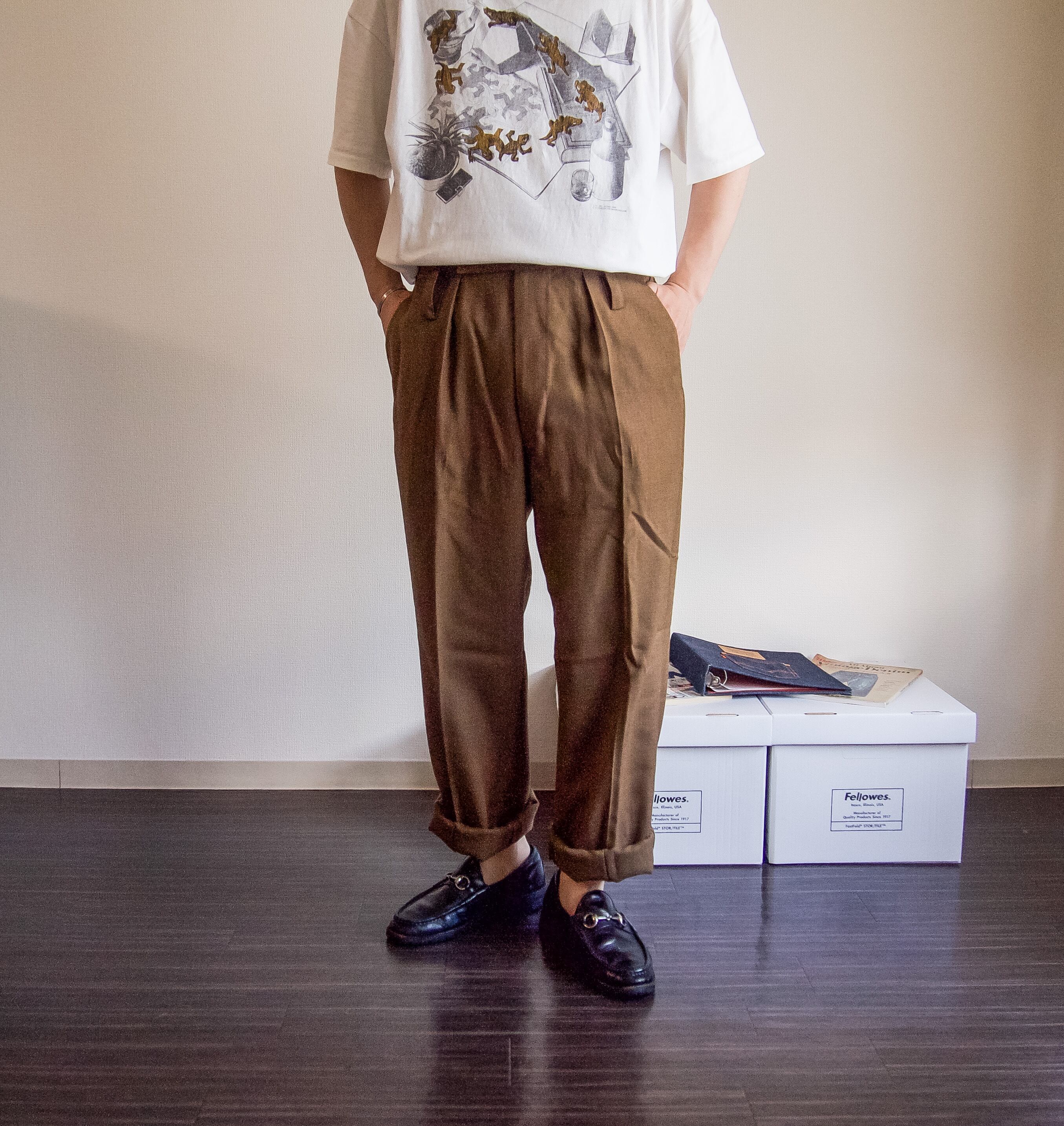 ドレスパンツながらカチッとしすぎていないので、クラシカルなスタイルからカジュアルまで幅広く使える素晴らしいアイテムです。