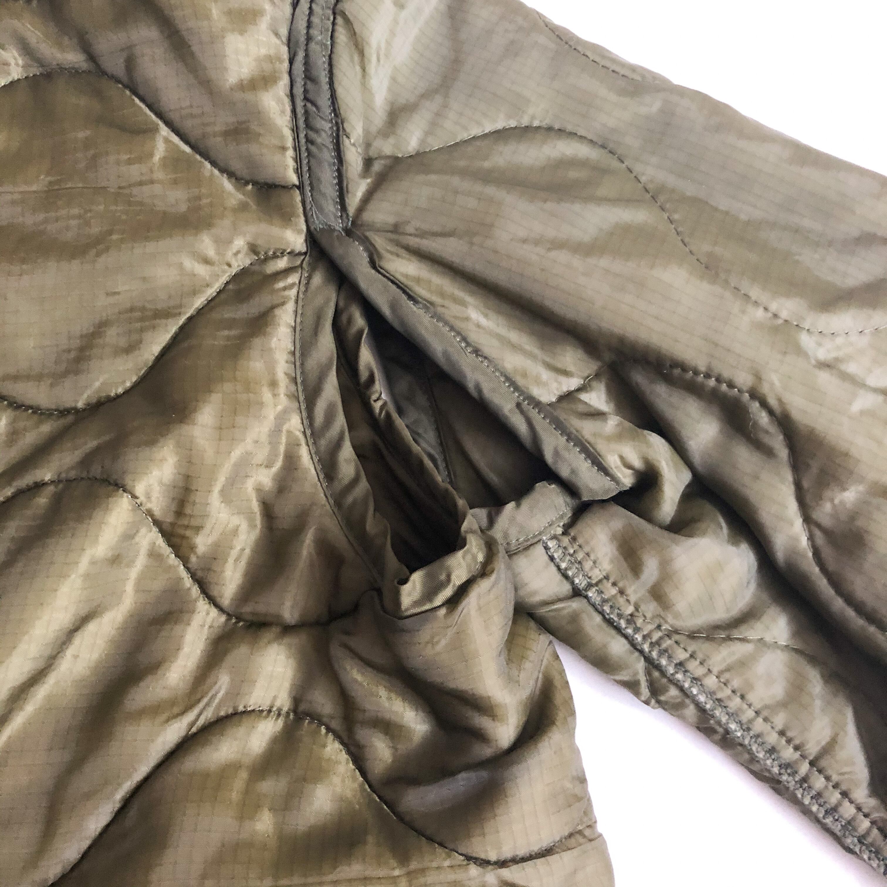 M-65本体に付けるためのボタン穴や袖内側のタブ、剥き出しになっている袖のステッチ、脇下の開口部はディテールですが、全体で見た時に程よい主張があり、デザインとしても大変優秀かと。
