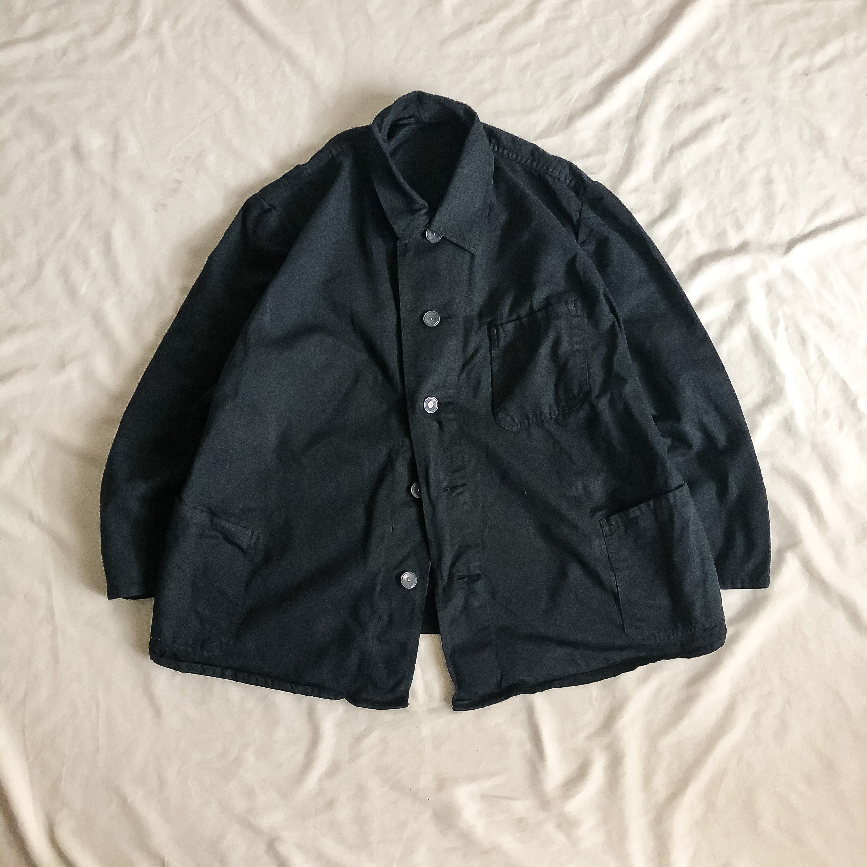 特徴 :ドイツ軍実物放出のワークジャケットで、元々サックスブルーだった物を染め職人に丁寧に黒染めしていただいた素晴らしいアイテムです。