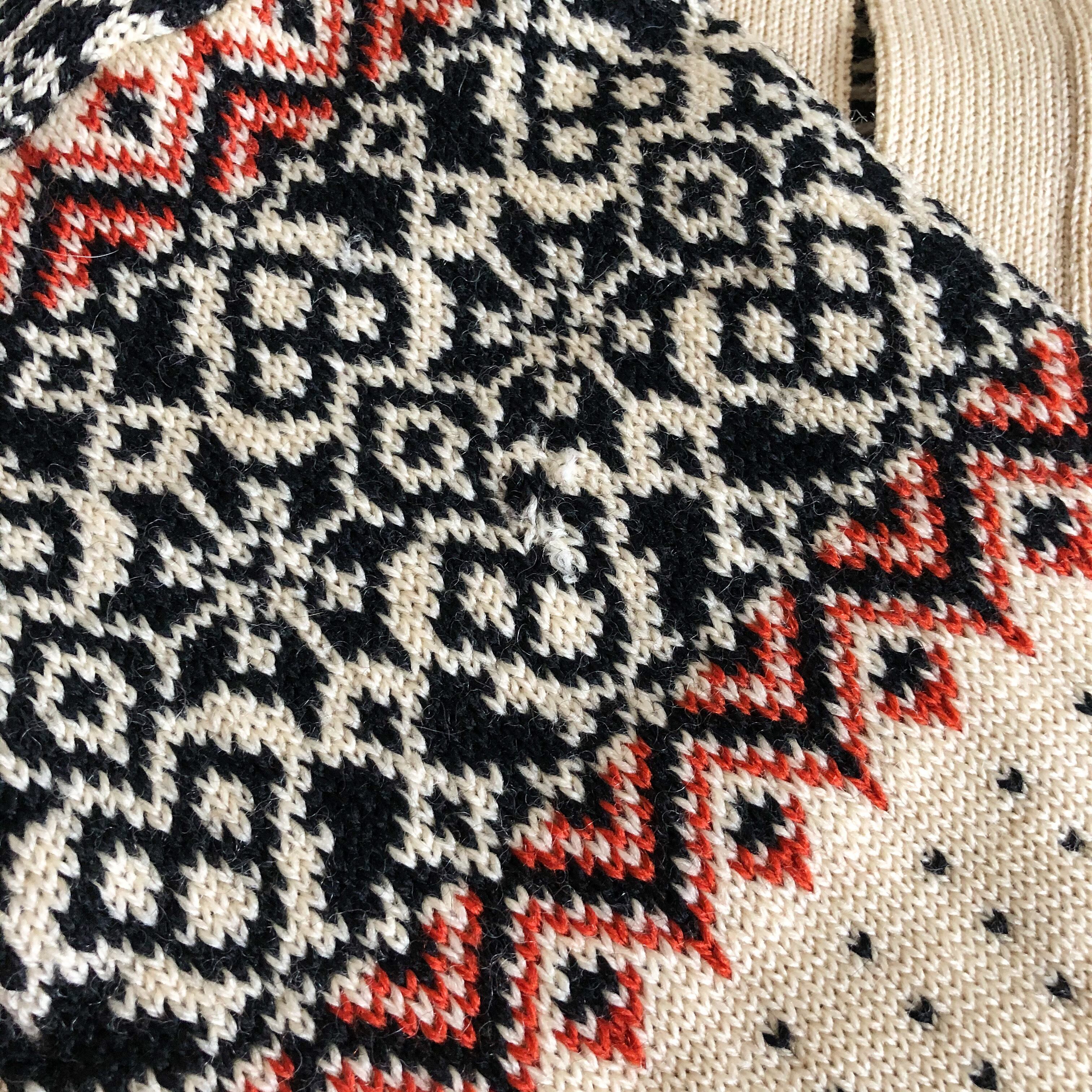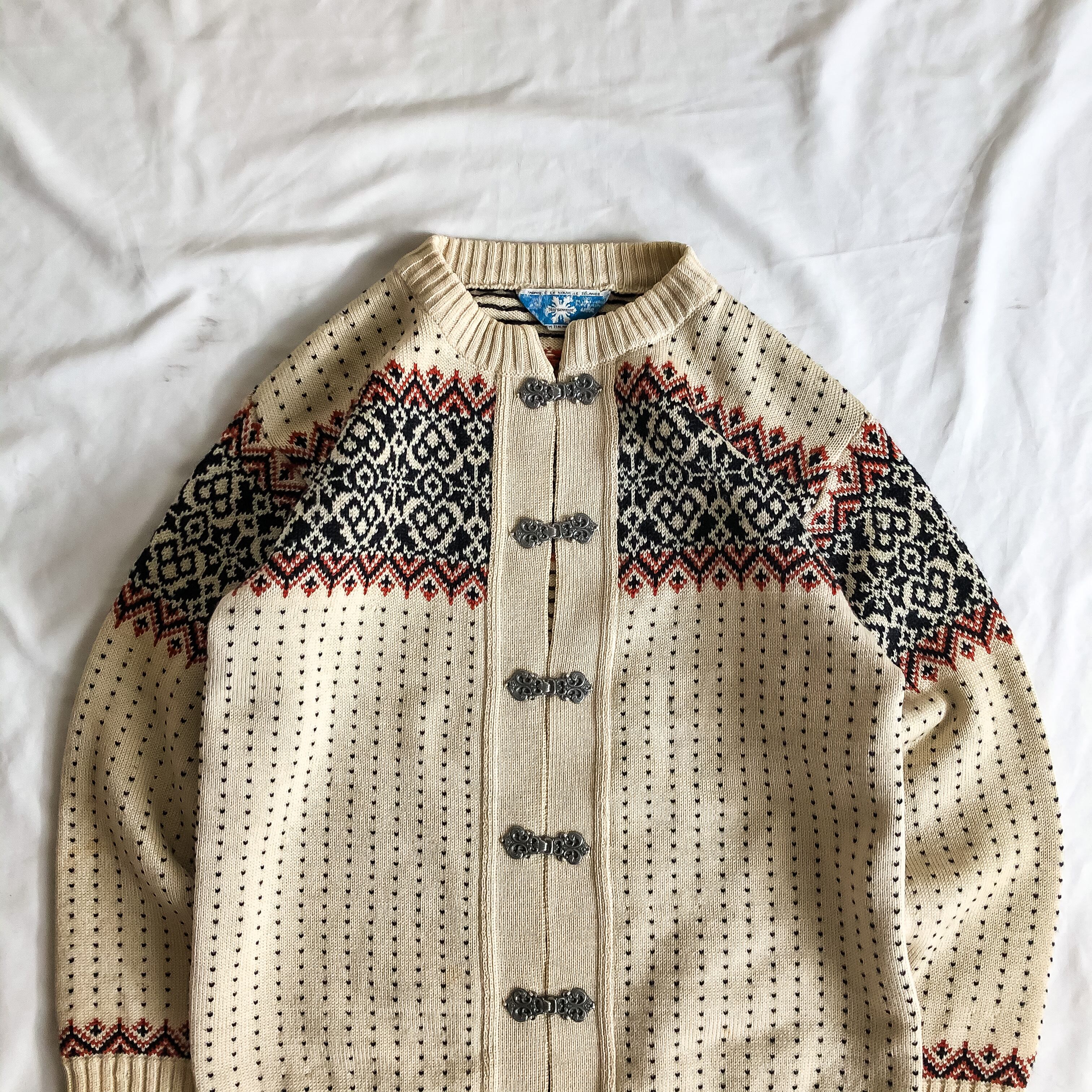 特徴 :北欧の伝統的に伝わる模様が織り込まれた1960's~1970's頃のヴィンテージノルディックカーディガン