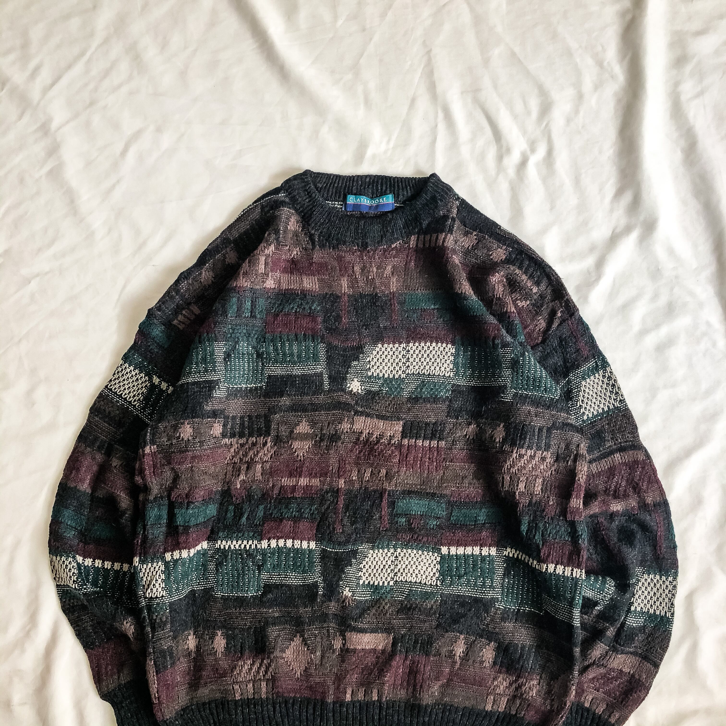 1990's~ bigsize patterned allover design sweater