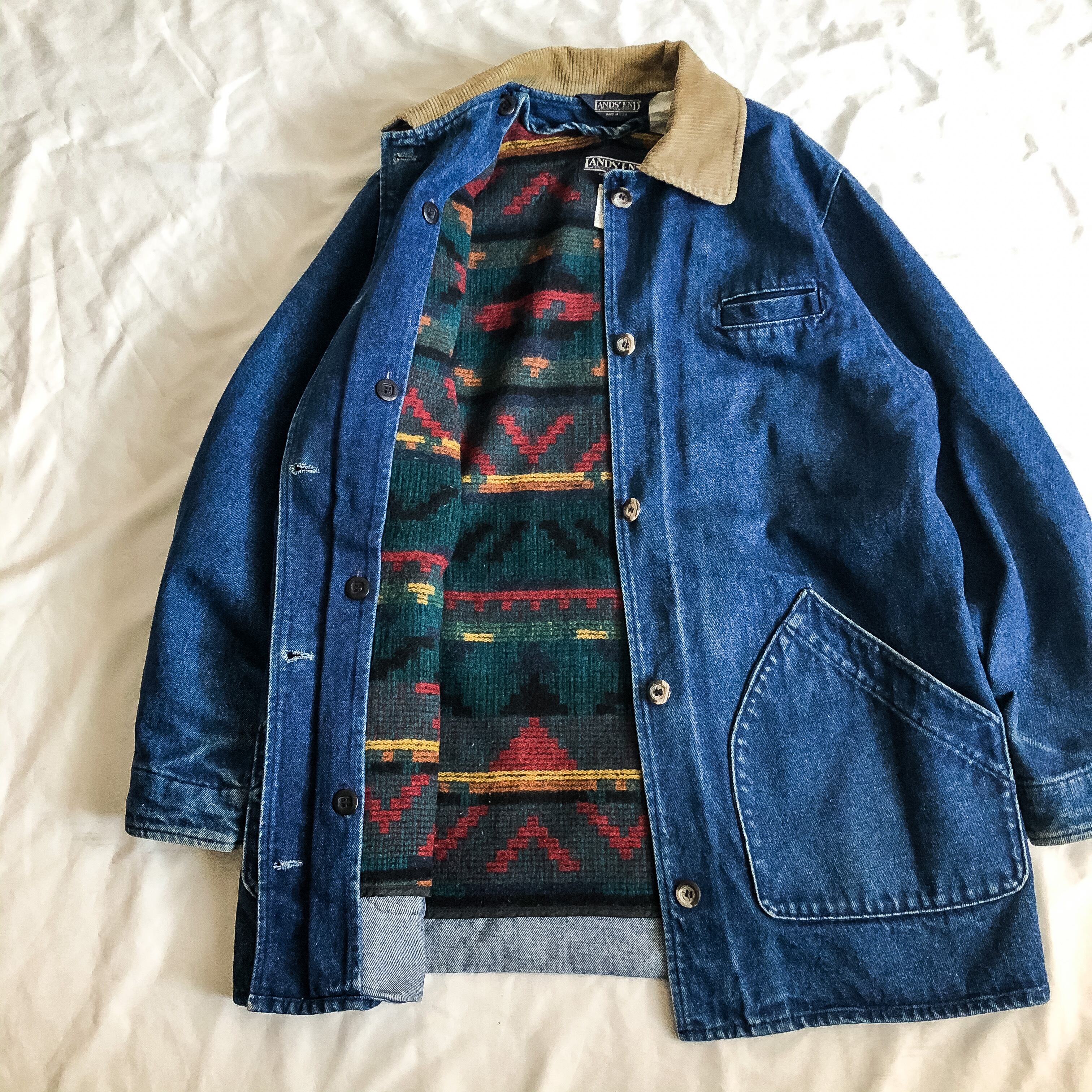 1990's "LANDS END" corduroy collar denim jacket with liner