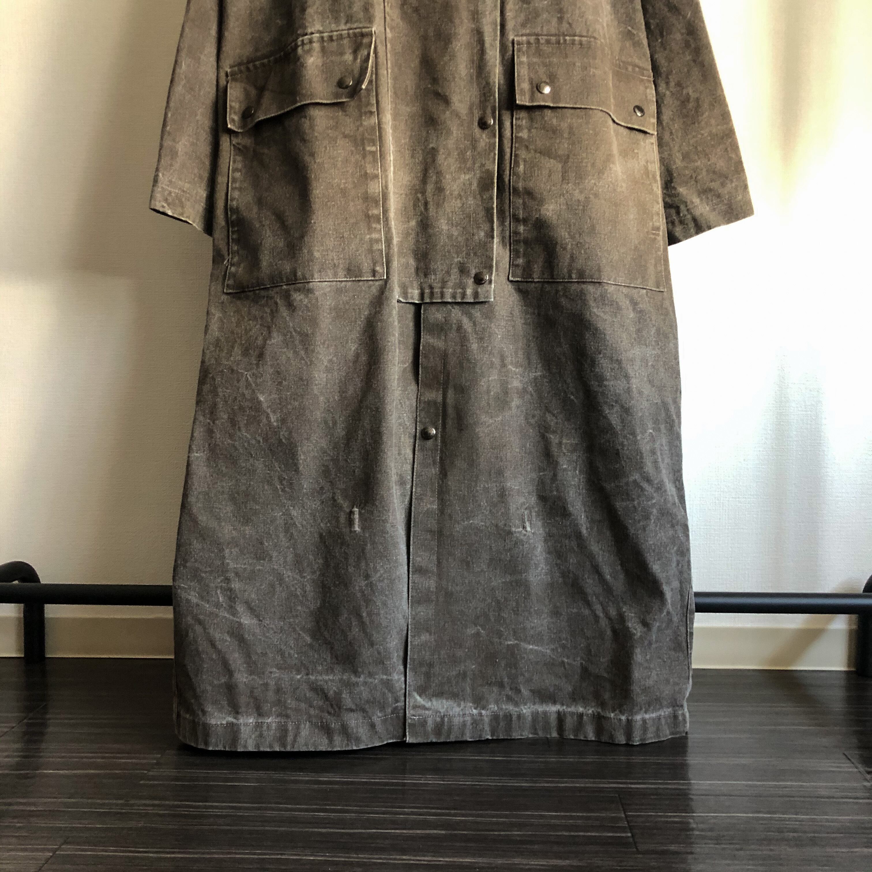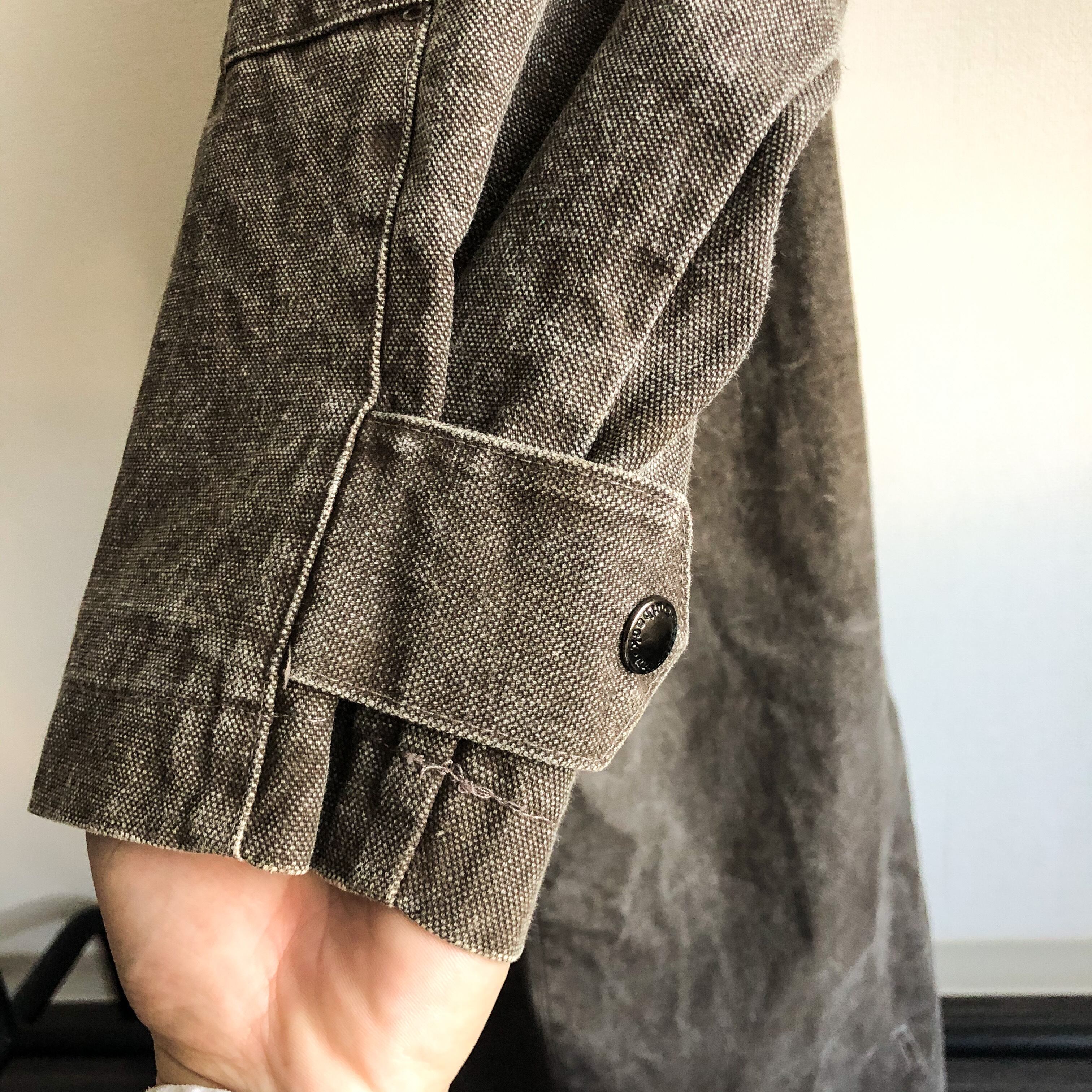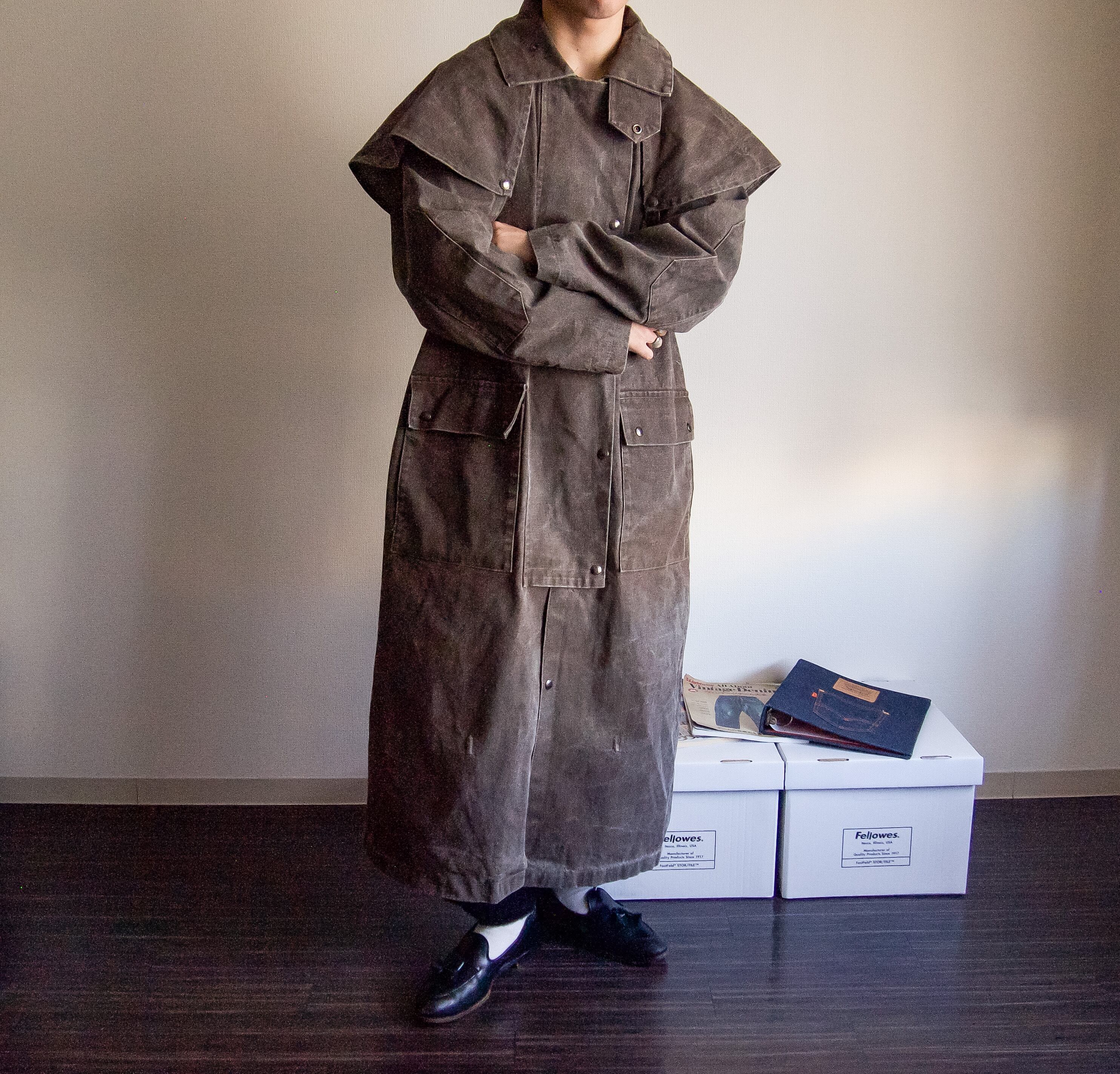 特徴 :経年変化による所々色落ちした雰囲気抜群なブラックのダックに、取り外しの出来るフランス軍のフロックコートのような肩のフラップのディテールが素晴らしいカナダ製のコート。