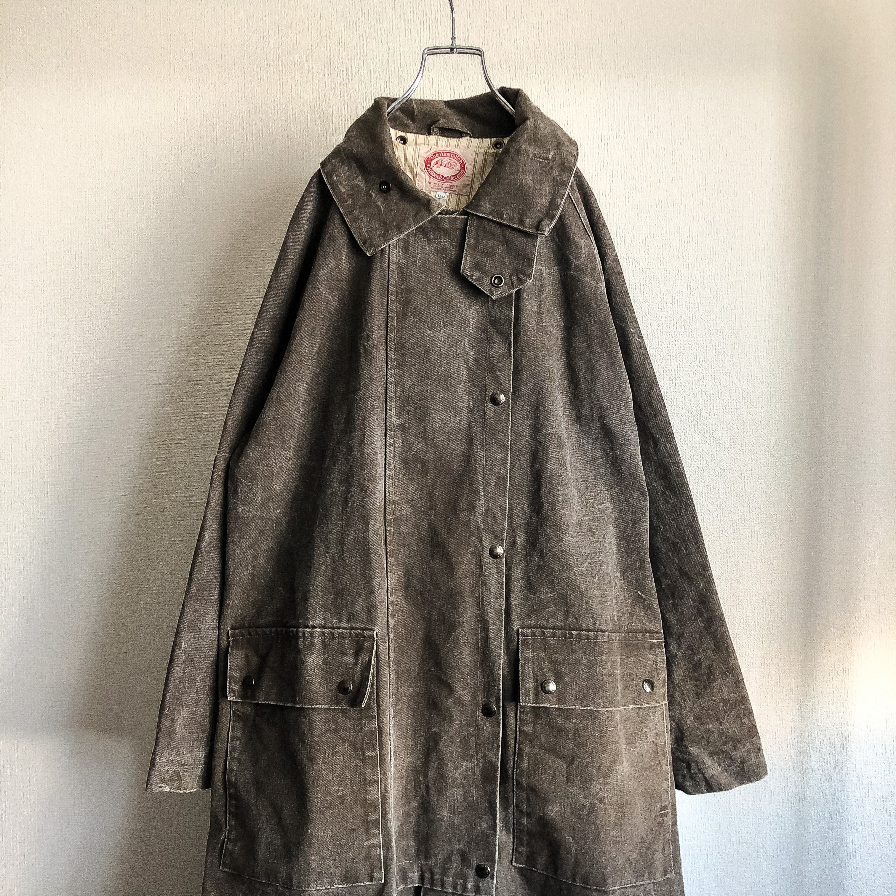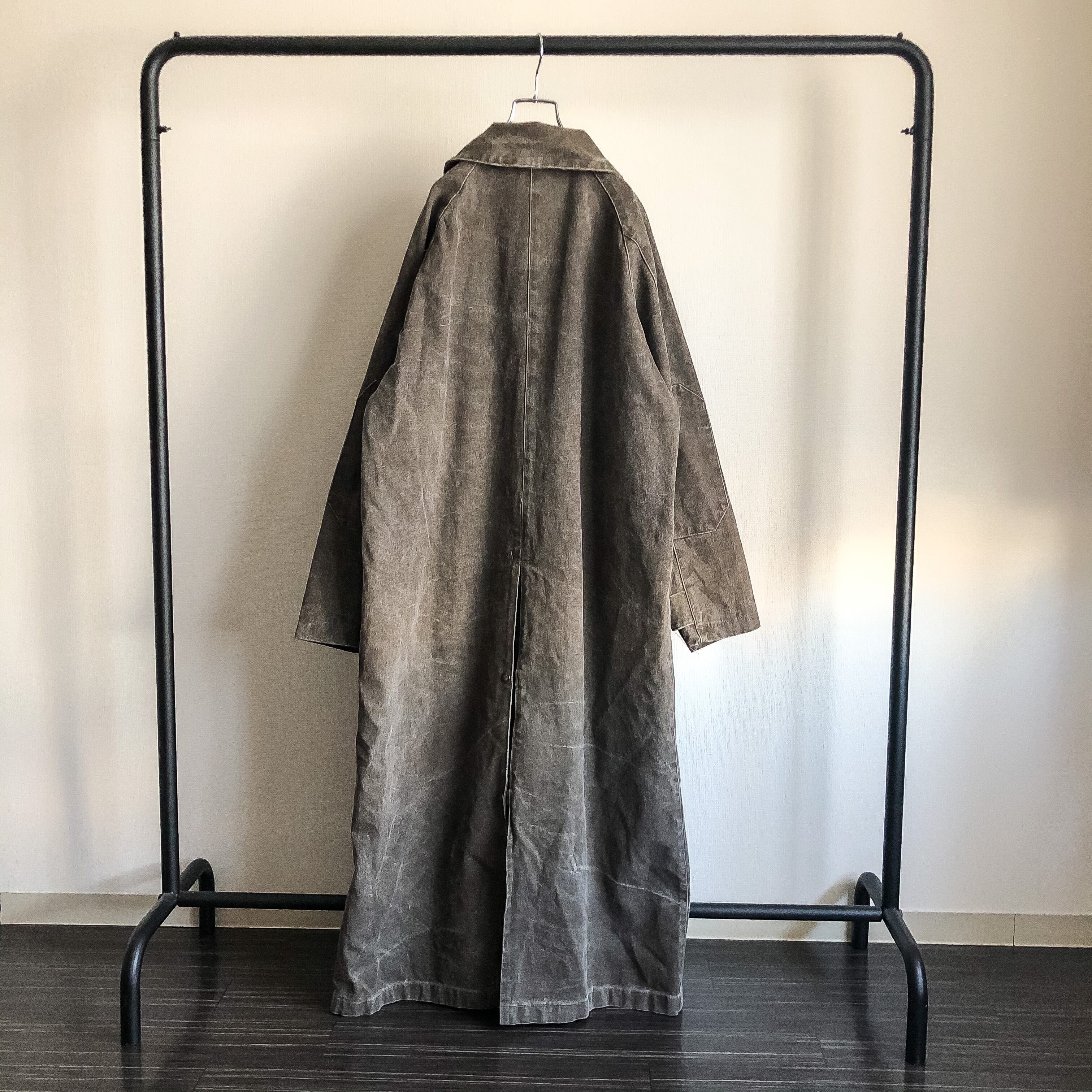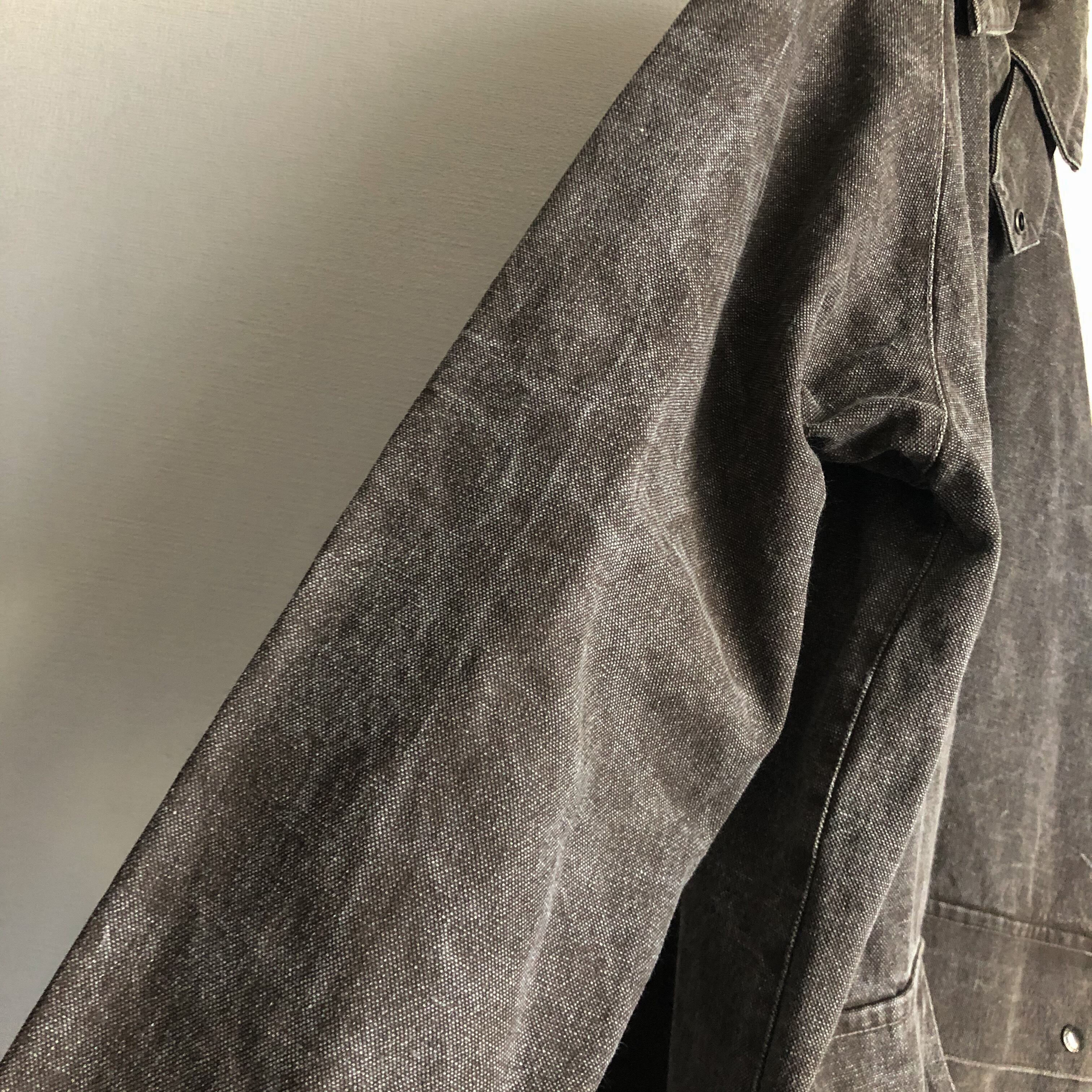 特徴 :経年変化による所々色落ちした雰囲気抜群なブラックのダックに、取り外しの出来るフランス軍のフロックコートのような肩のフラップのディテールが素晴らしいカナダ製のコート。
