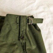 ベルトループ部分がボタン式になっており、サイド部分には金属製アジャスターが付きウエスト調整可能が可能なディテールになっています。(最大でウエスト7〜8cm調整可能です。)