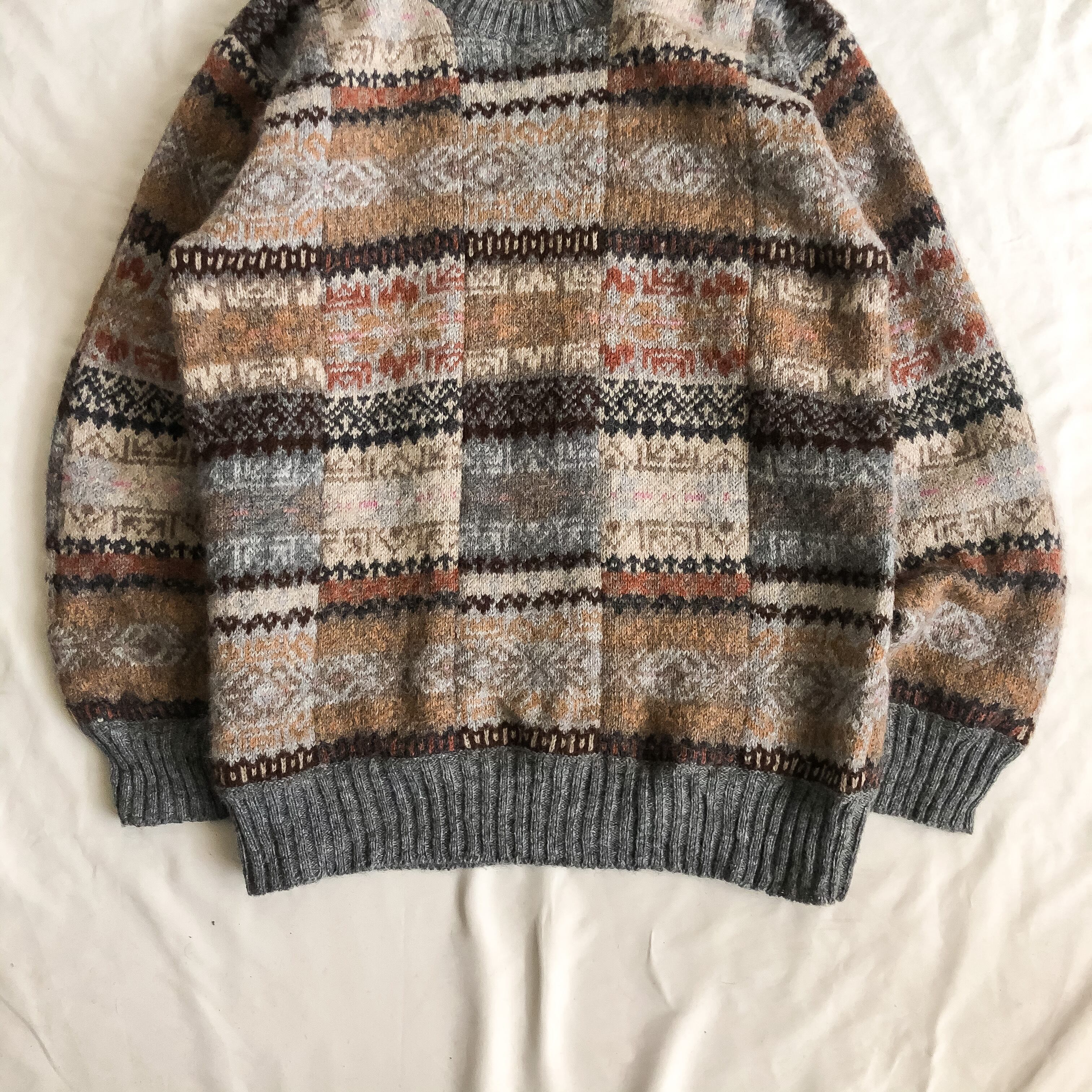 パネルデザインはケーブル編みなんかがおおいですが、こちらは非常に珍しいノルディック柄のような暖かみのあるテキスタイル。