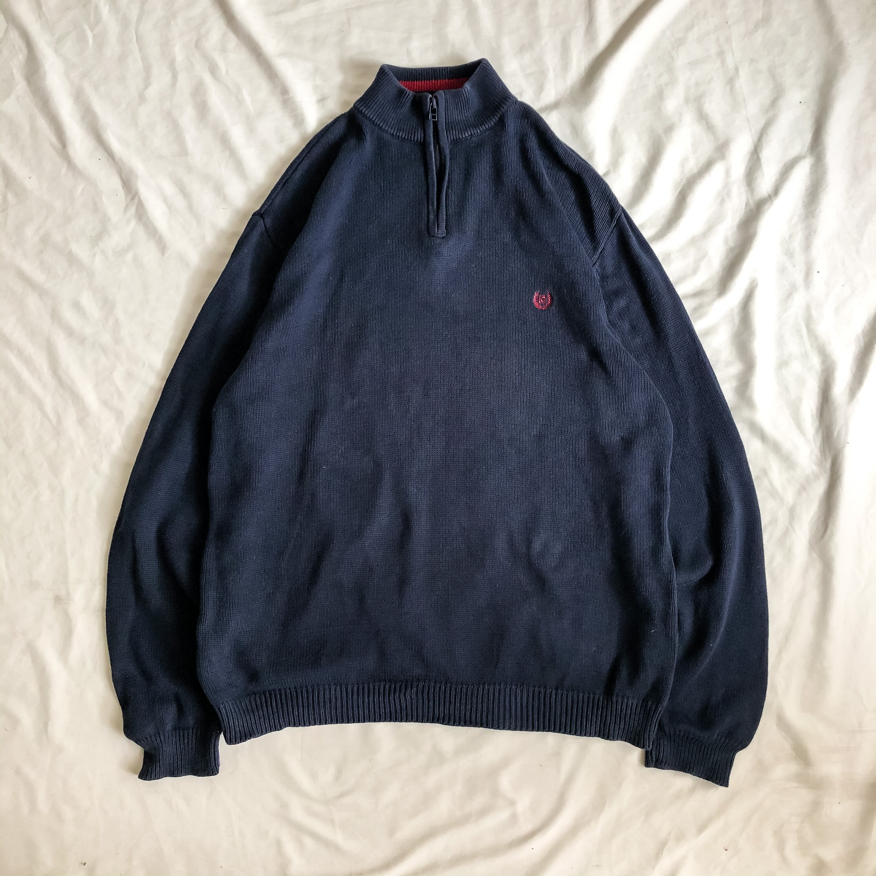 1990's~ Ralph Lauren "CHAPS" navy bigsize halfzip cotton sweater