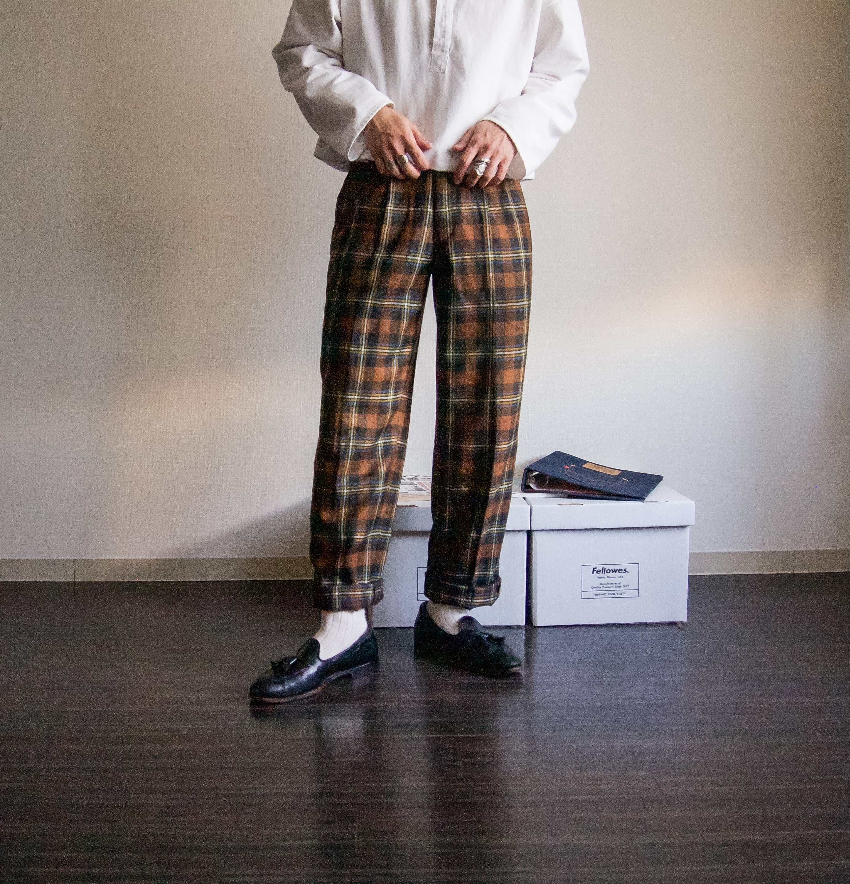 特徴 :配色が素晴らしいチェック柄のスラックスパンツ。
