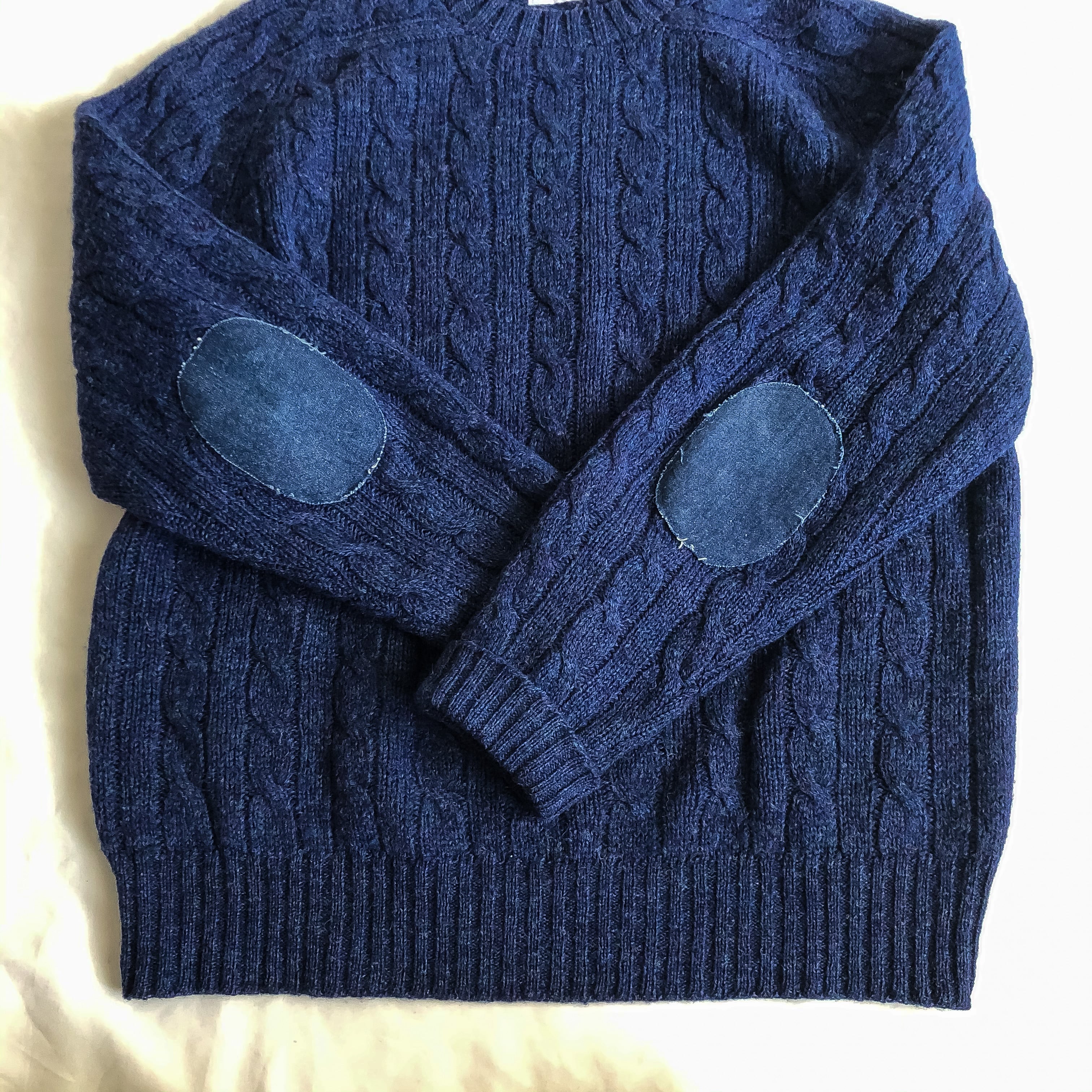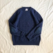 1980's~ "BROOKS BROTHERS" cable pattern shetland wool sweater with denim elbow patch
