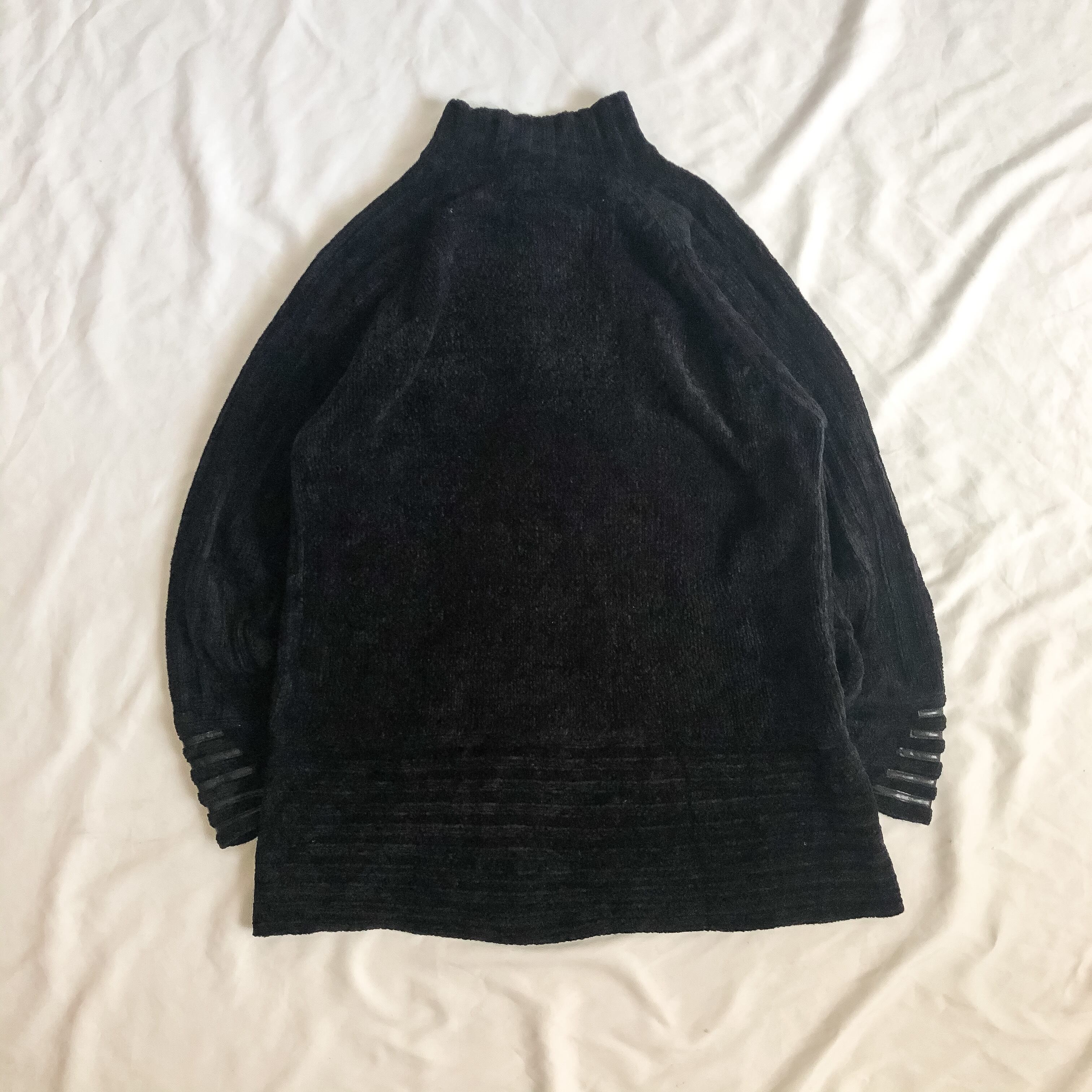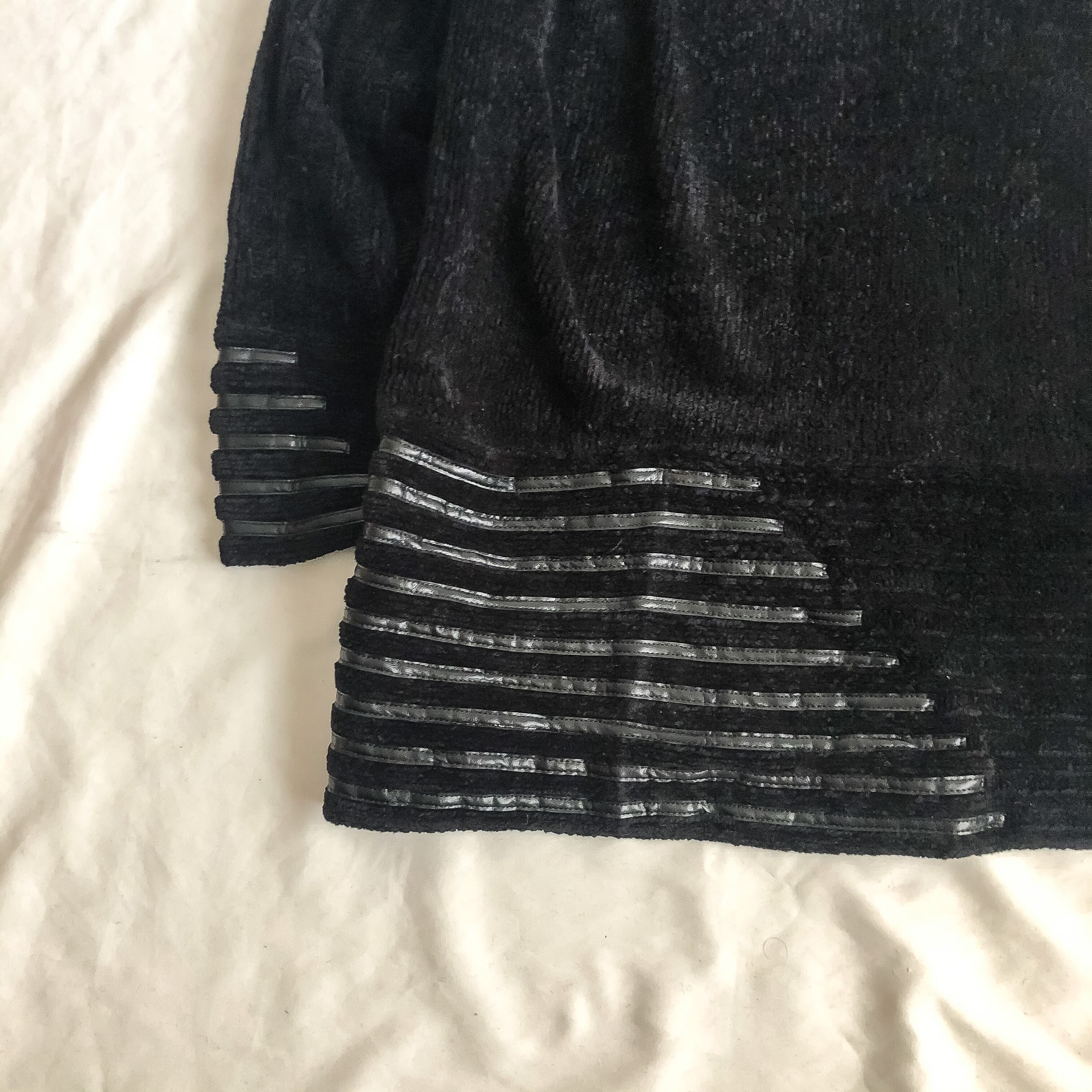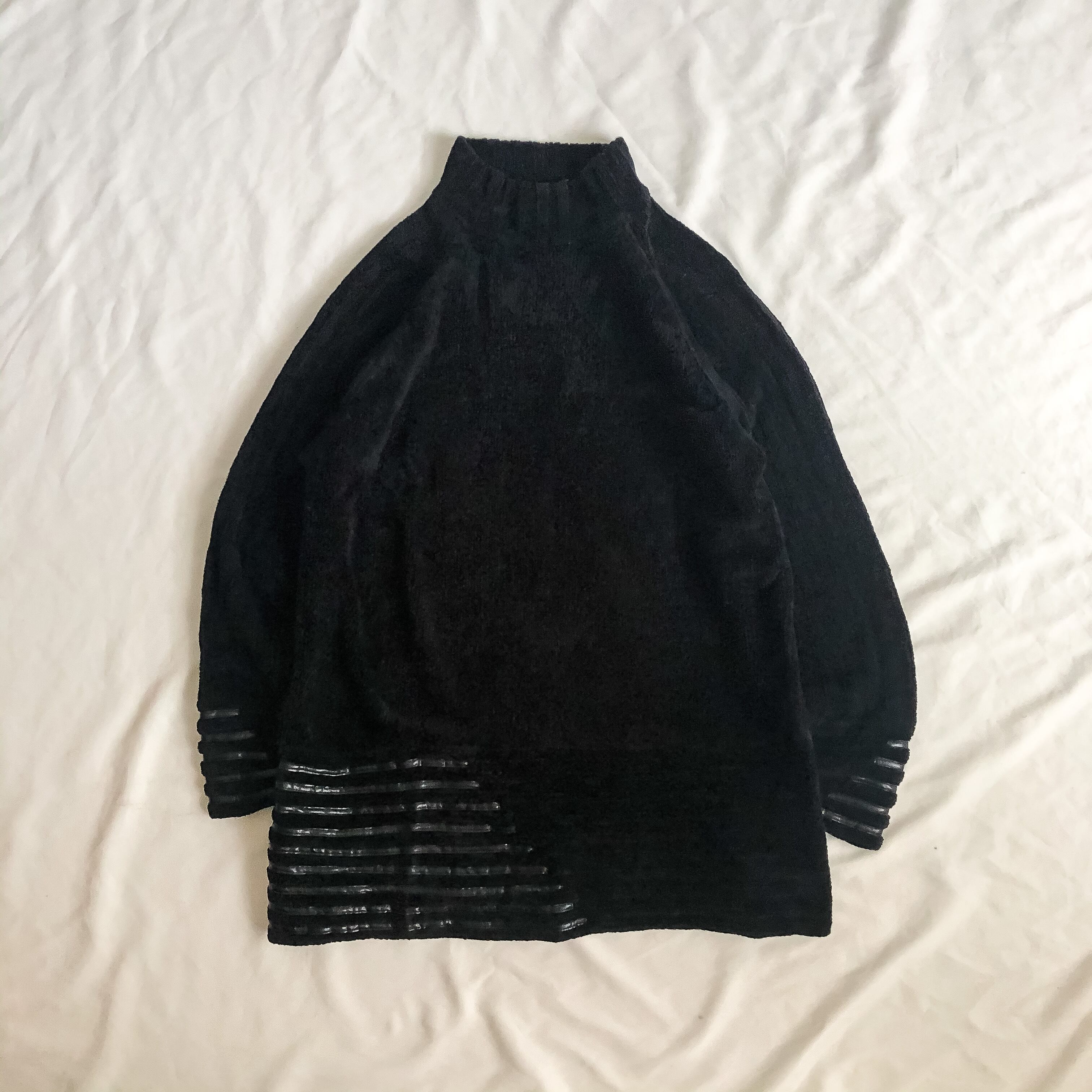 特徴 :ソリッドなブラックカラーのベロアに、裾や袖にフェイクレザーのデザインが入る珍しいデザインのベロアセーター。