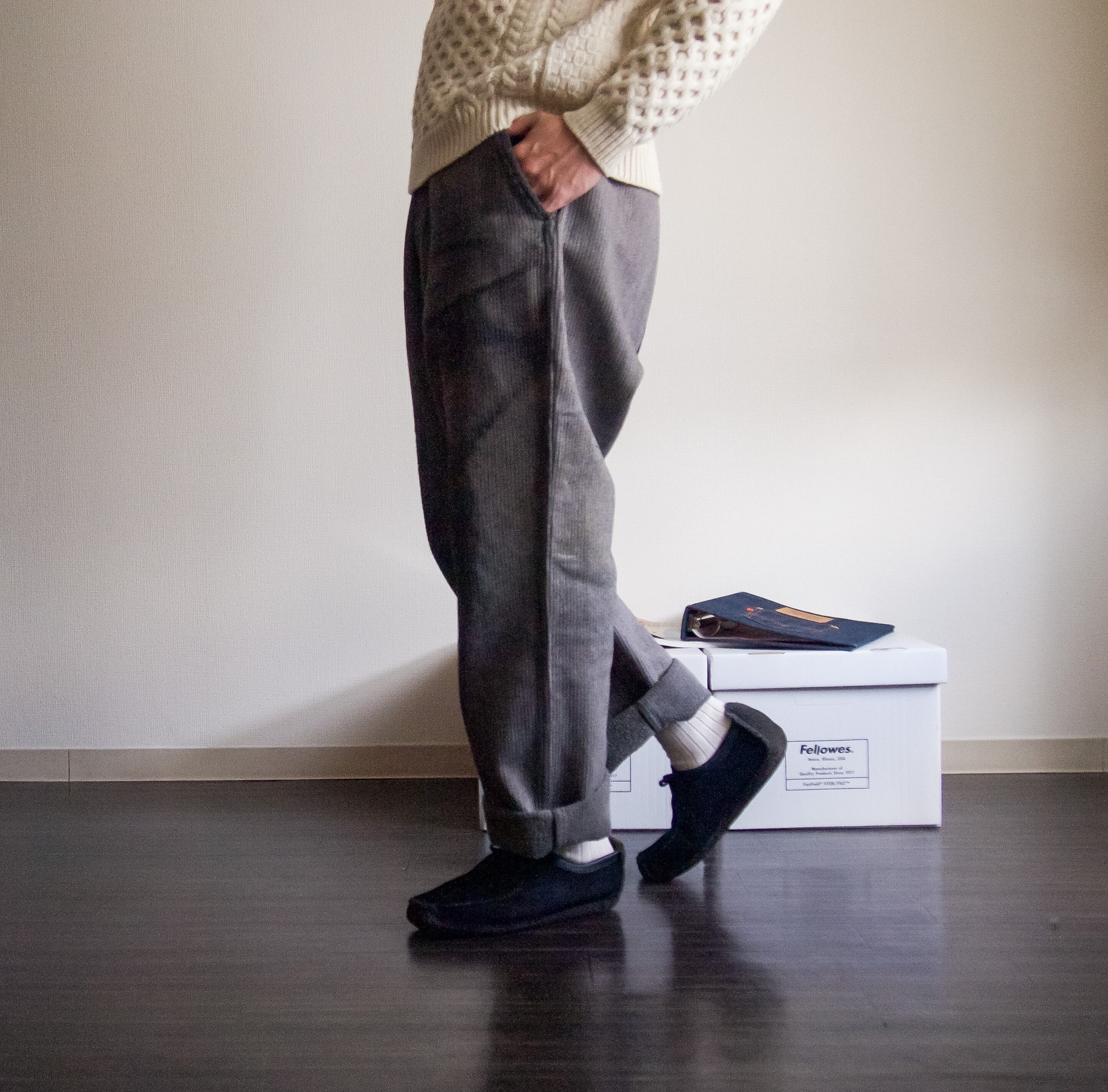 大きめなサイズですがベルトで絞ったり、サスペンダーで吊ってもいいですね。