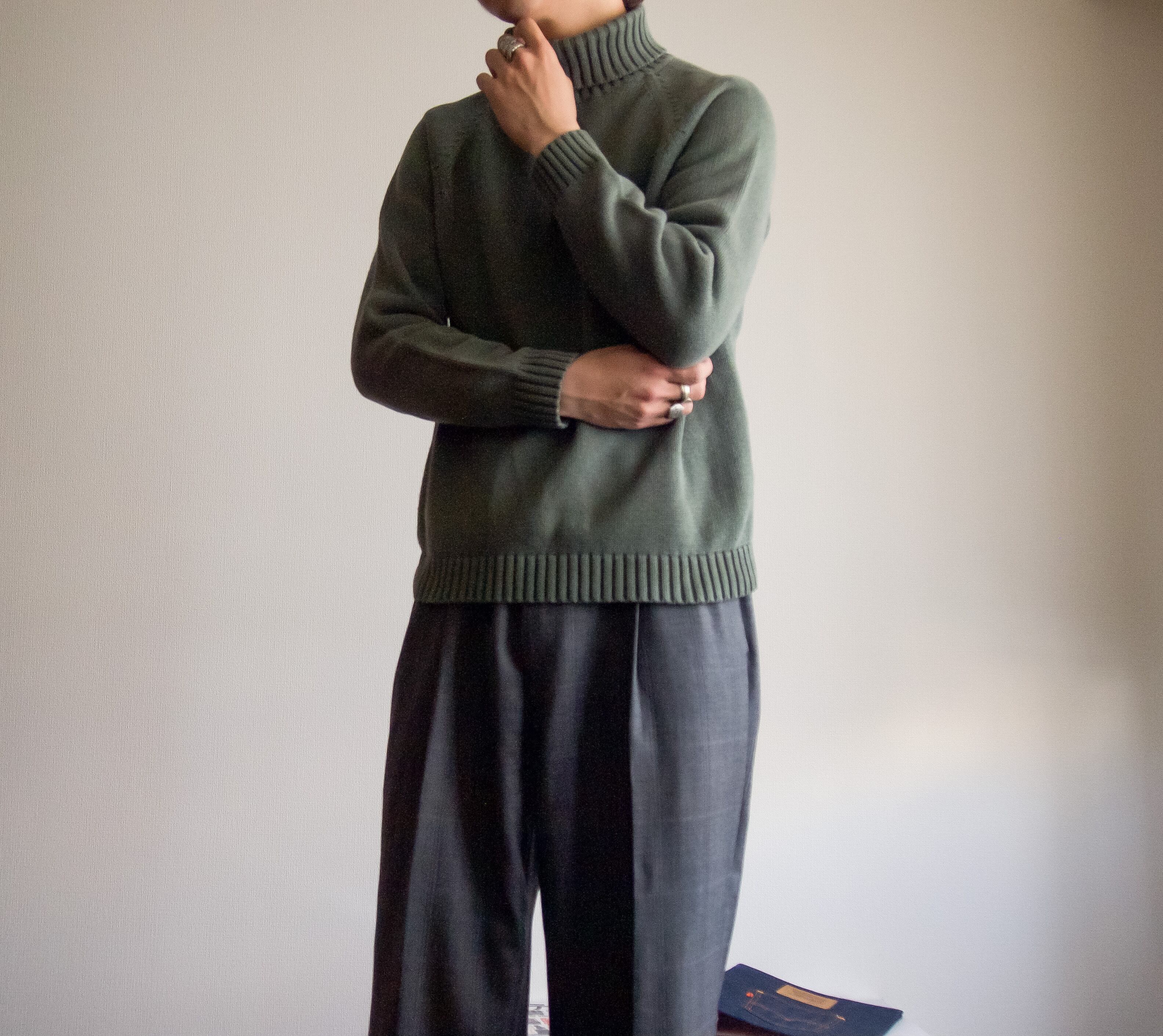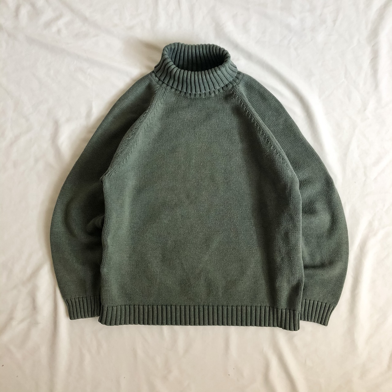 1990's~ "LANDS END" green cotton turtleneck sweater