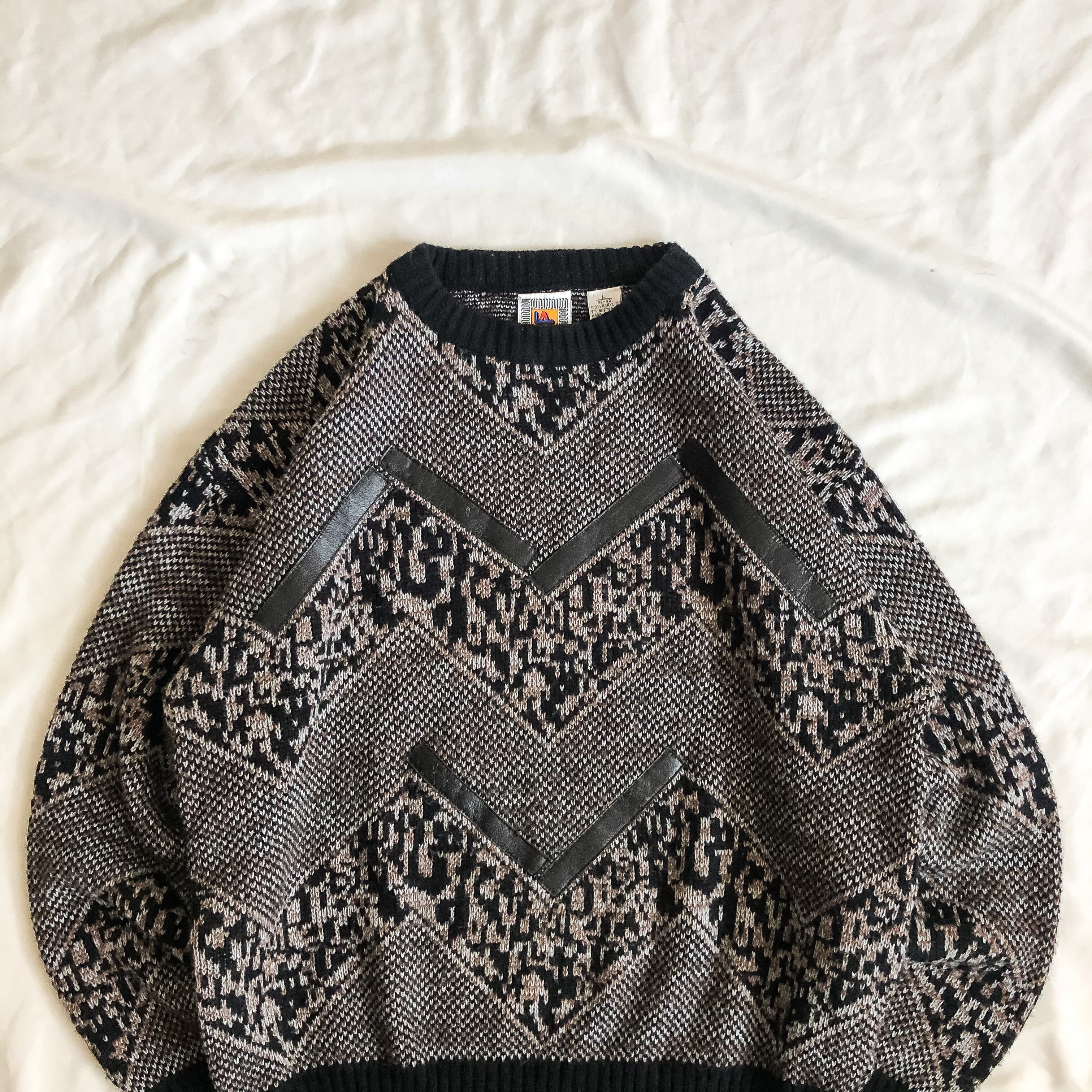 1990's~ leather design patterned allover sweater
