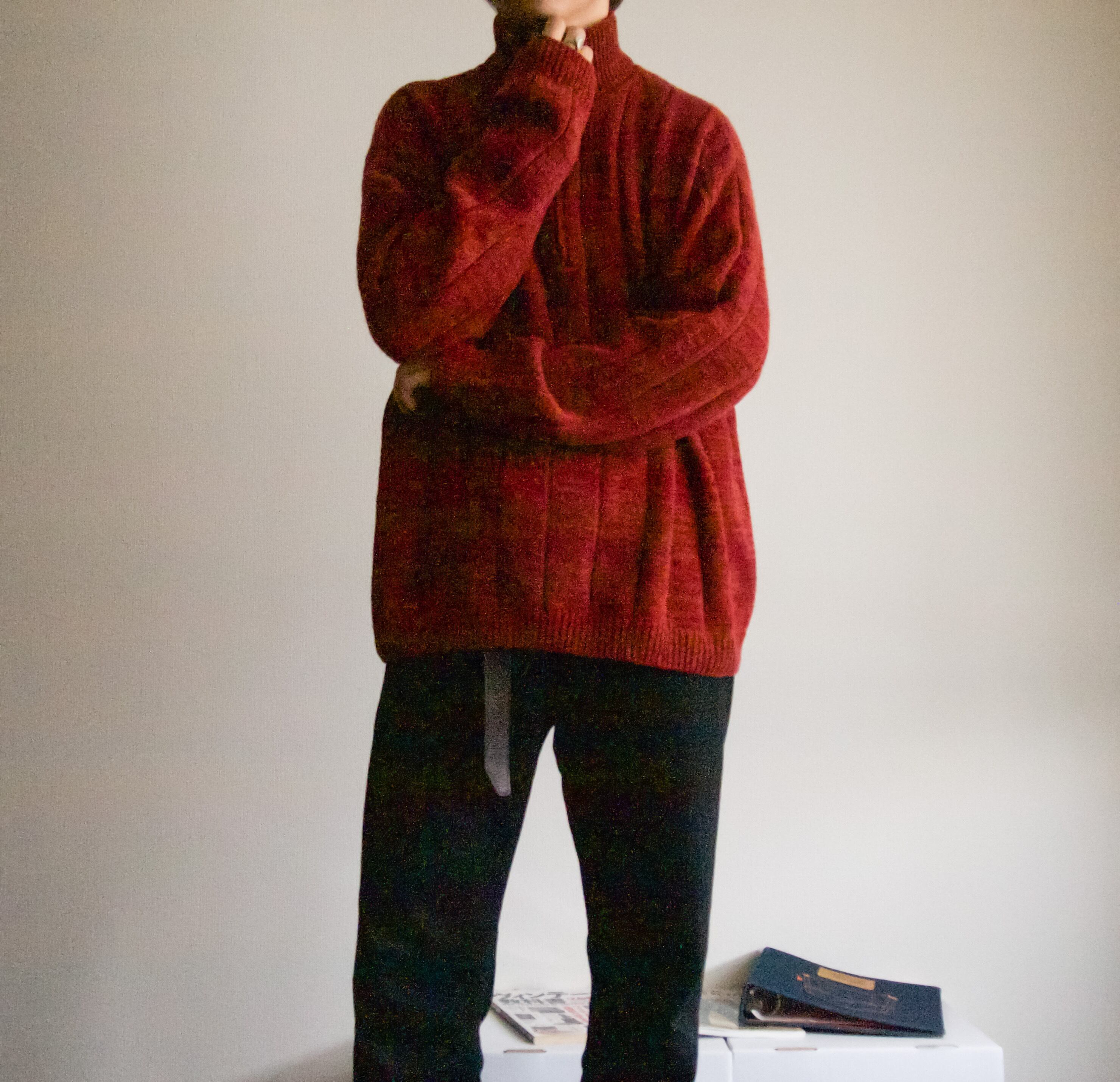 ハーフジップのセーターは殆どがコットンかウールですが珍しいシルクが混ざった一着。