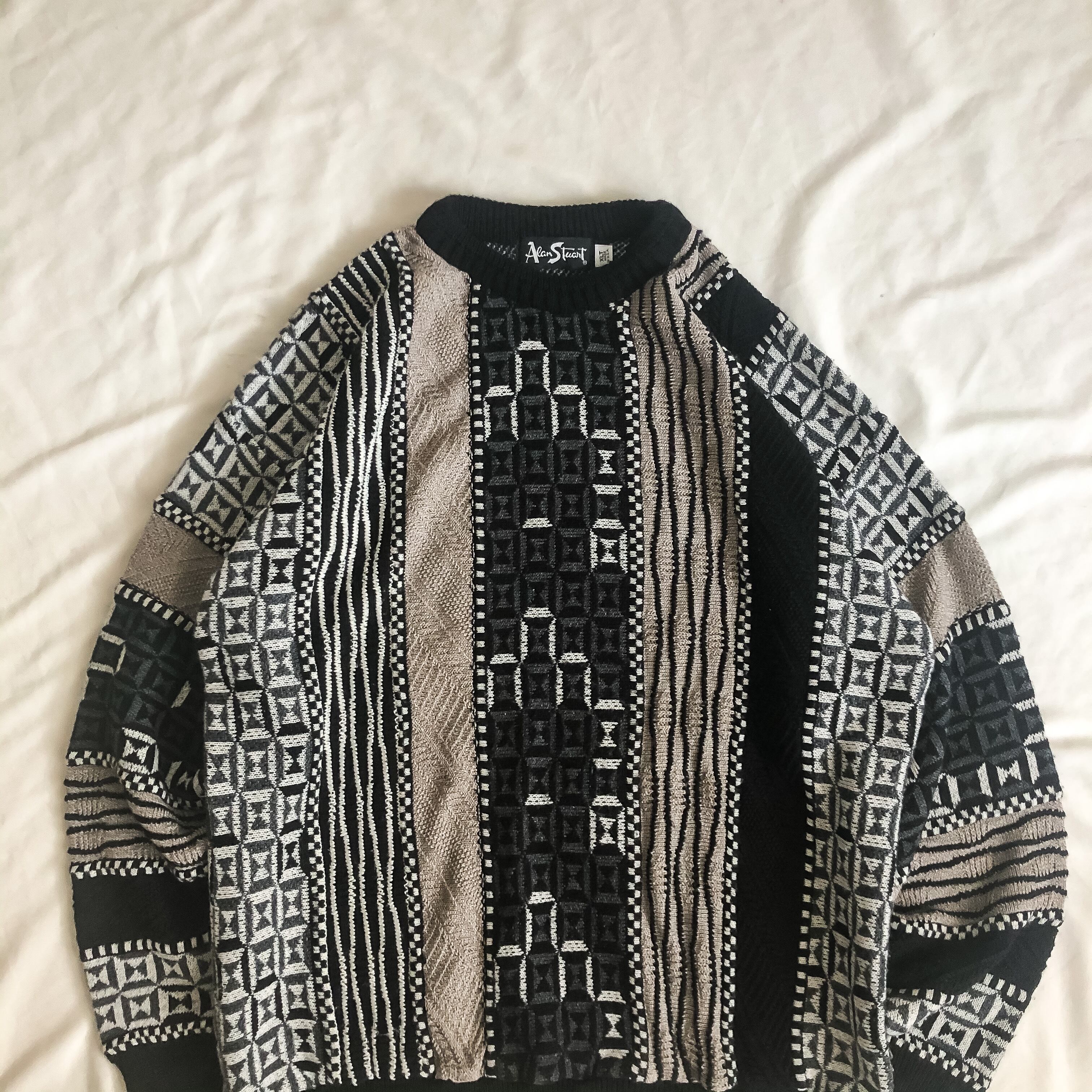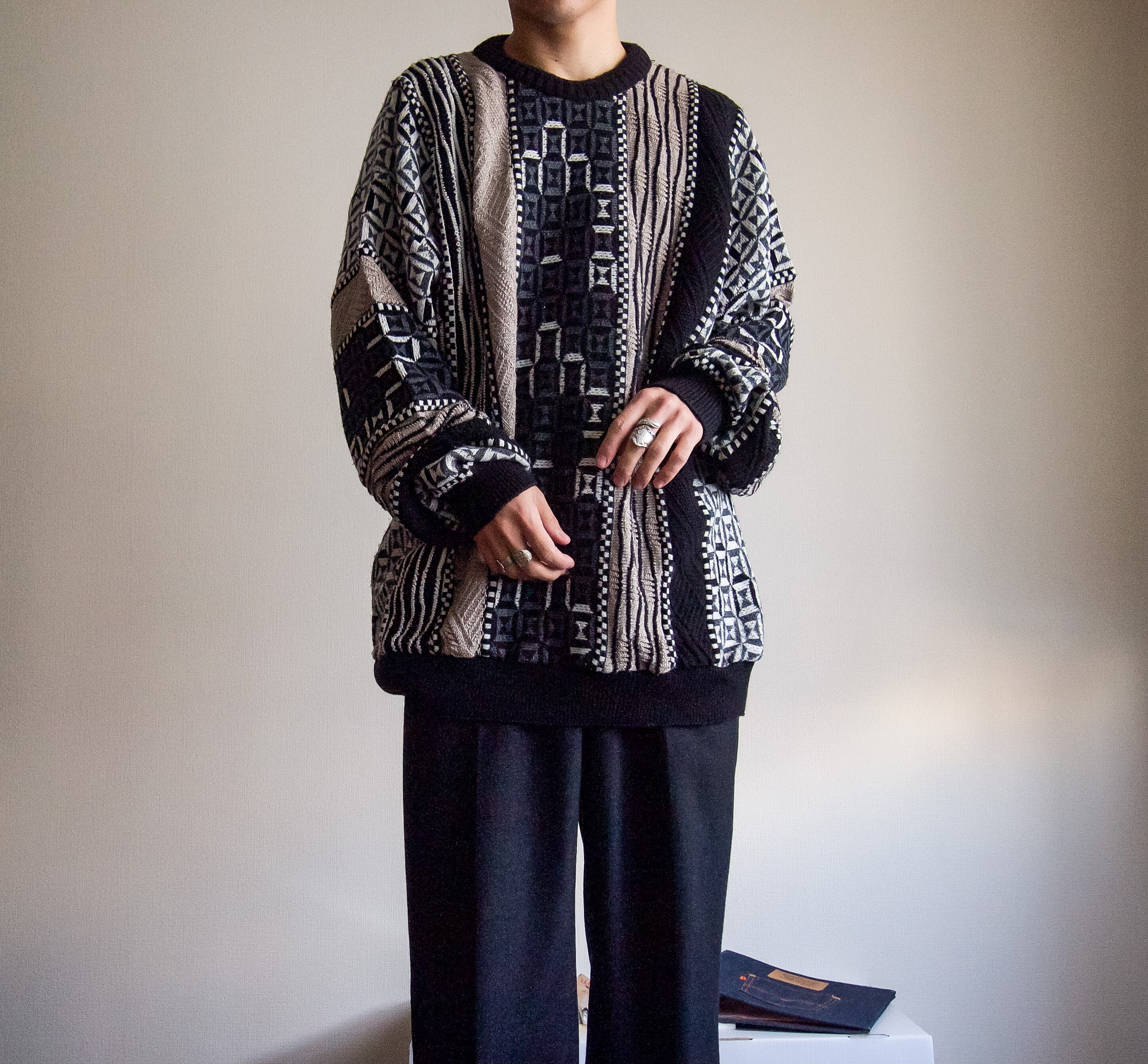 1980's~ bigsize 3D patterned allover sweater made in USA