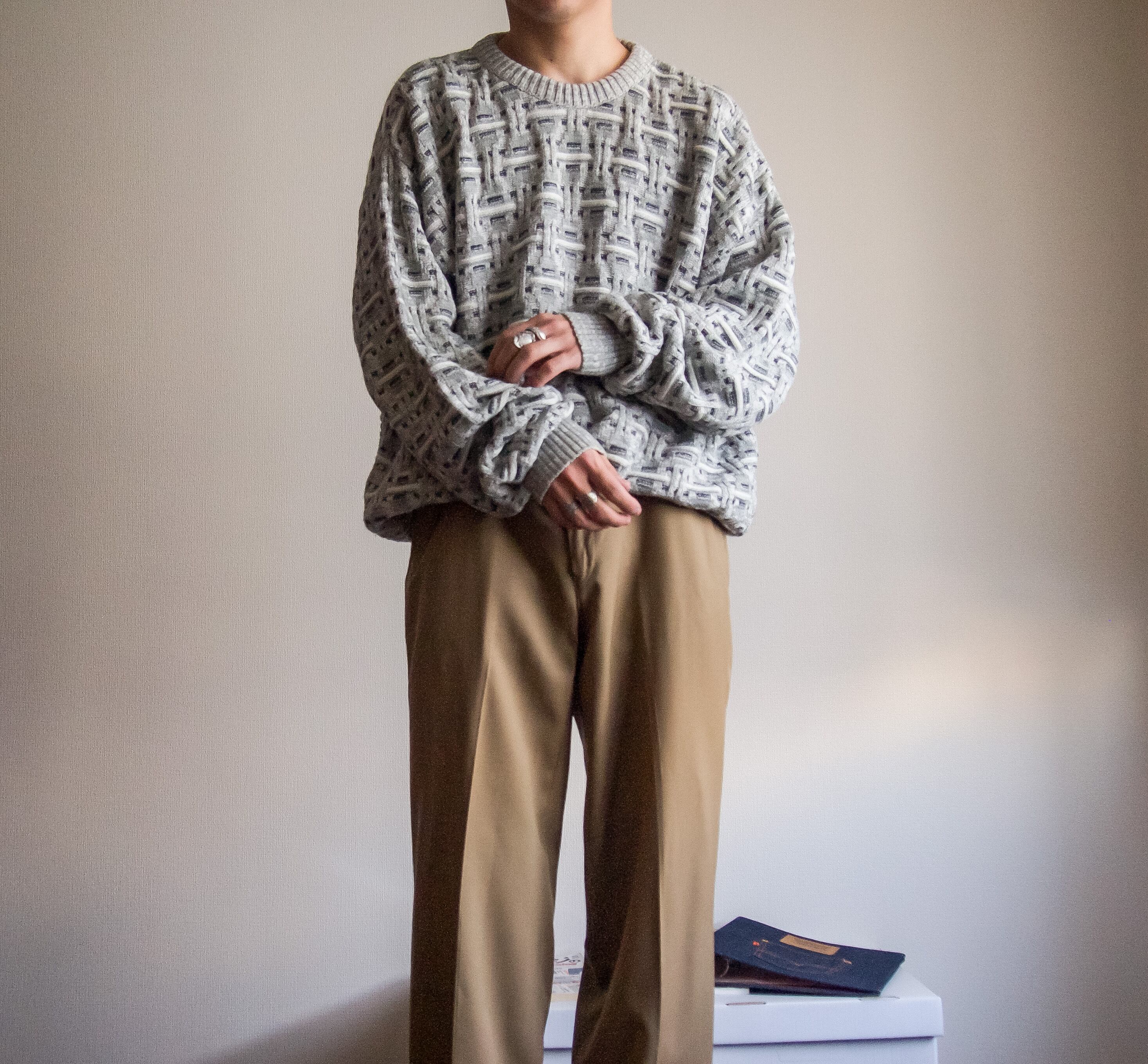 交差するような立体的な編みのデザインが素晴らしいセーター。