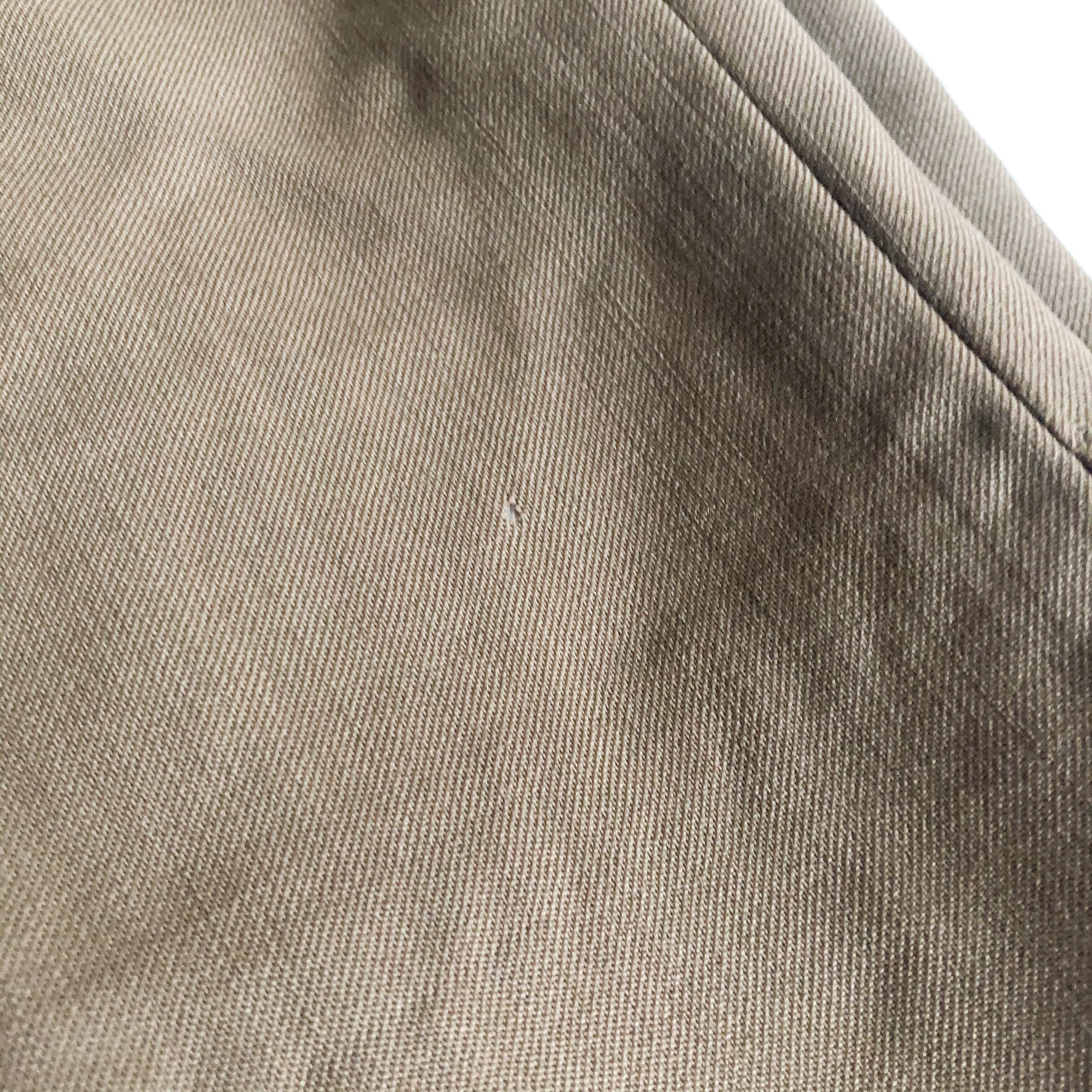 ※※古着故の多少の着用感や画像のように裾付近にに裏から薄い生地を当てたリペア、細かな汚れ、ステッチ抜け(穴は空いていません)、バックポケットのボタン欠損がございますが、古着慣れしているかたでしたら問題なく着用していただけるかと思います。古着に理解のない方のご購入はお控えください。
