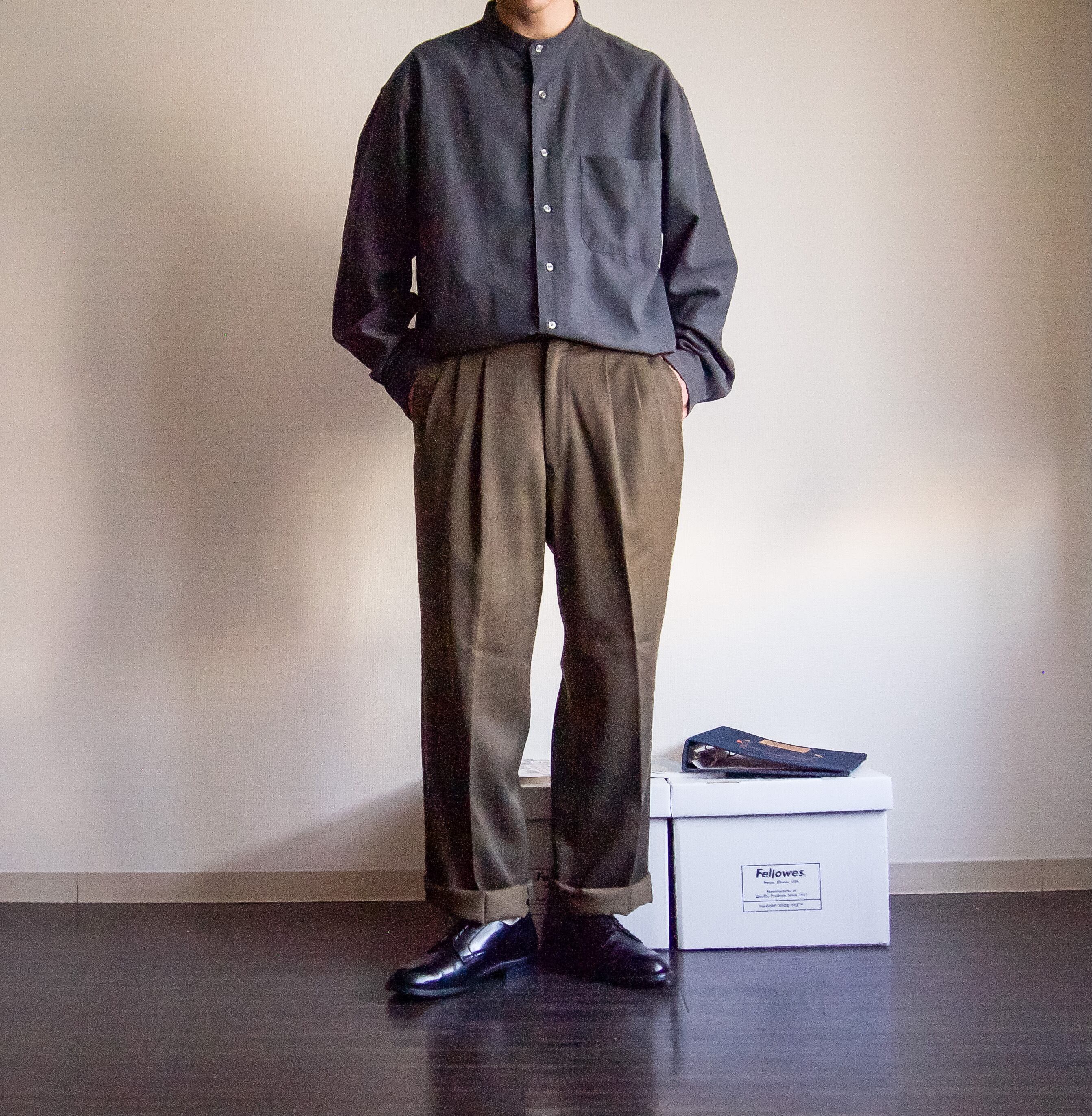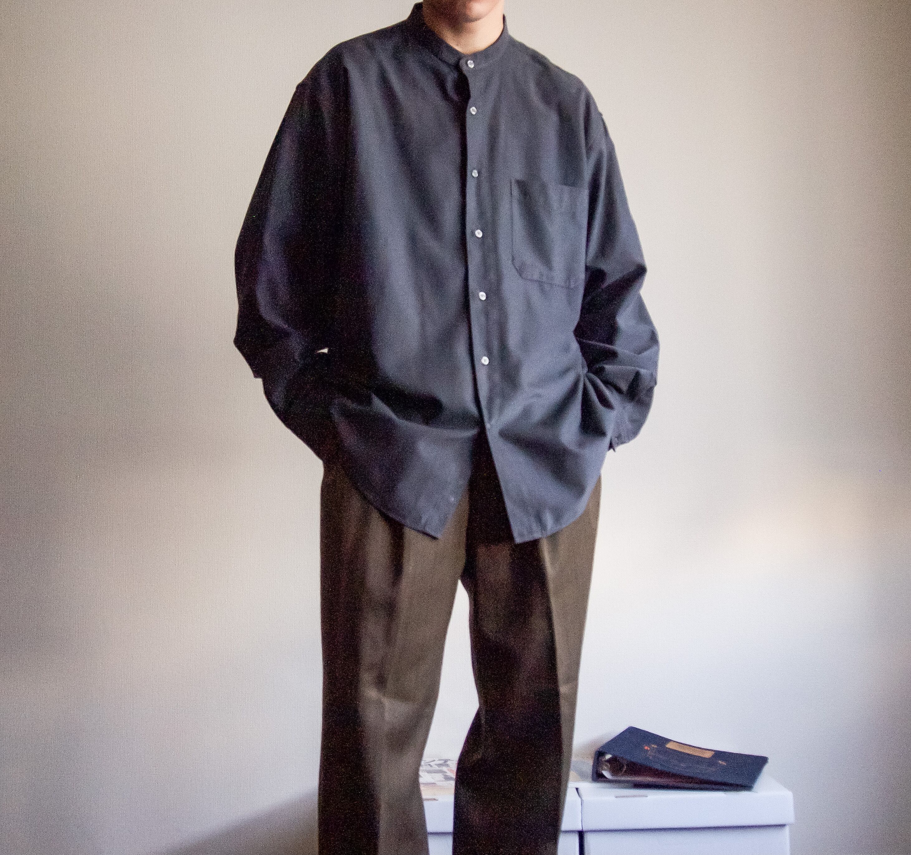 特徴 :よく見ると少し毛羽立ちのあるフェイクスエードにナイロンが混ざった、少し光沢感のある独特な表情が素晴らしいフェイクスエードシャツ。