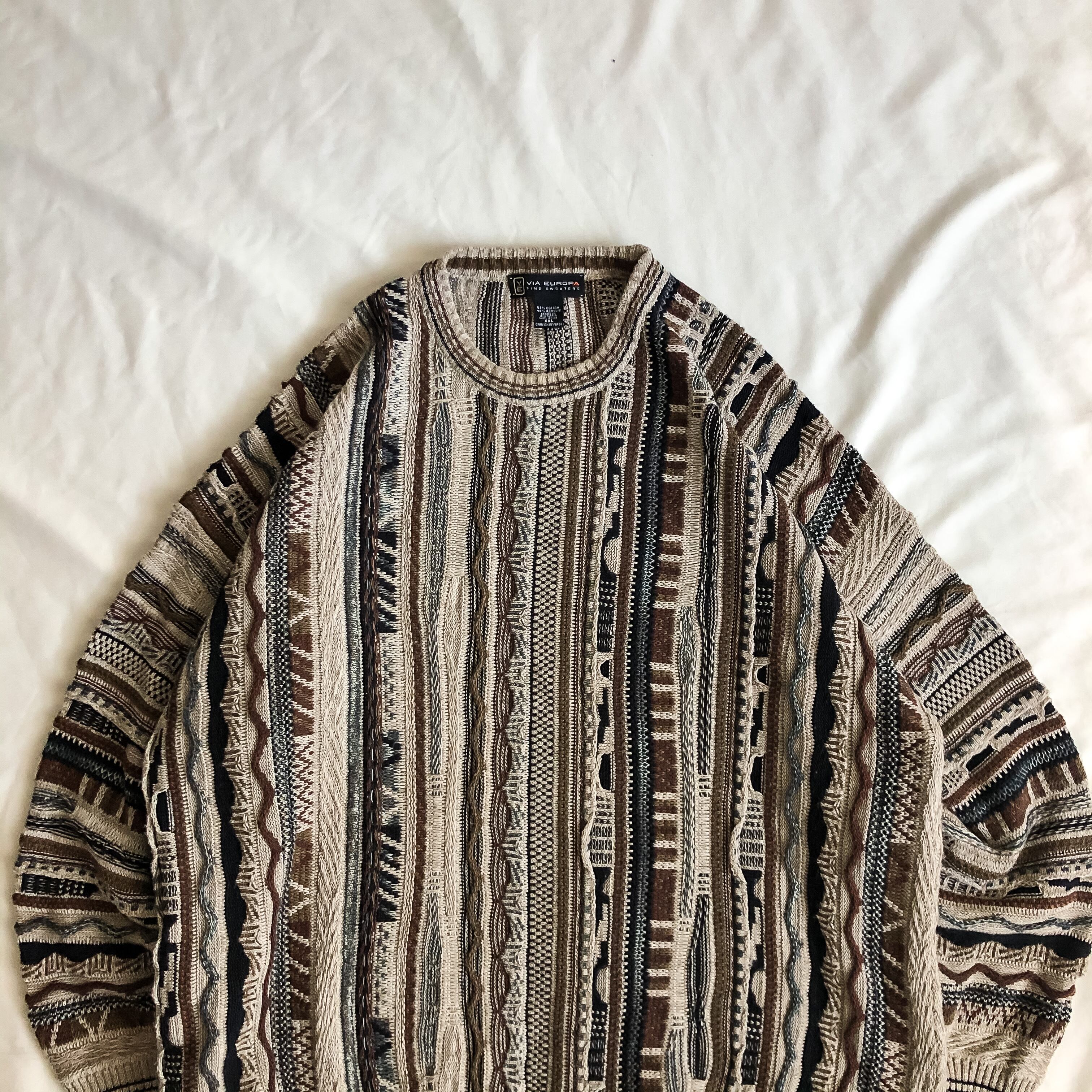 1990's~ bigsize 3D patterned allover sweater made in Bulgaria