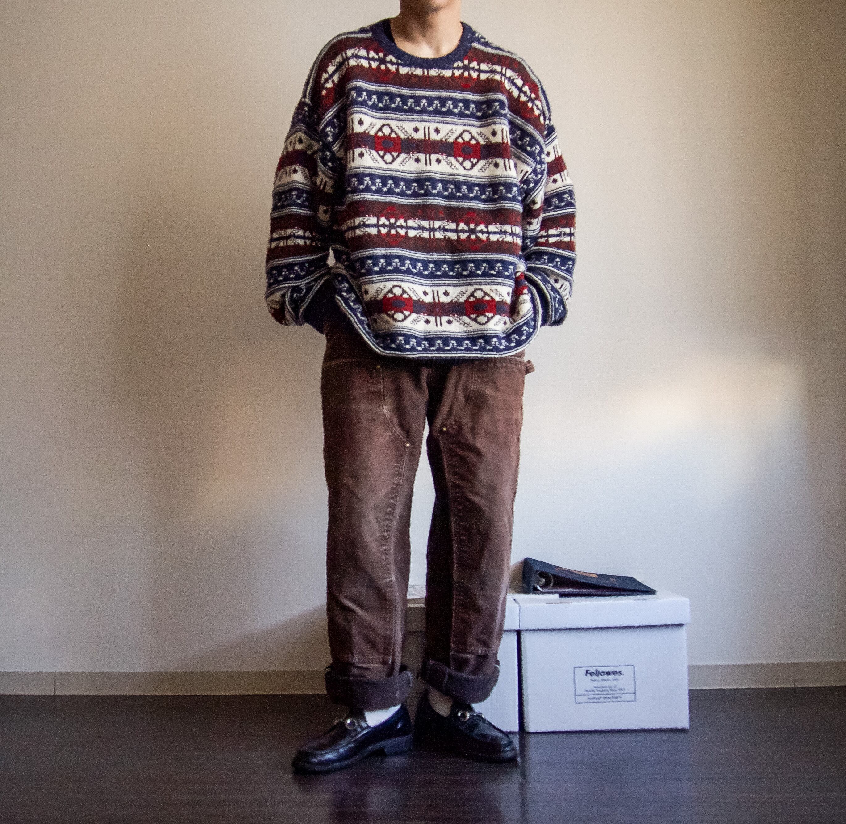 1990's Ralph Lauren "CHAPS" bigsize patterned allover sweater made in USA