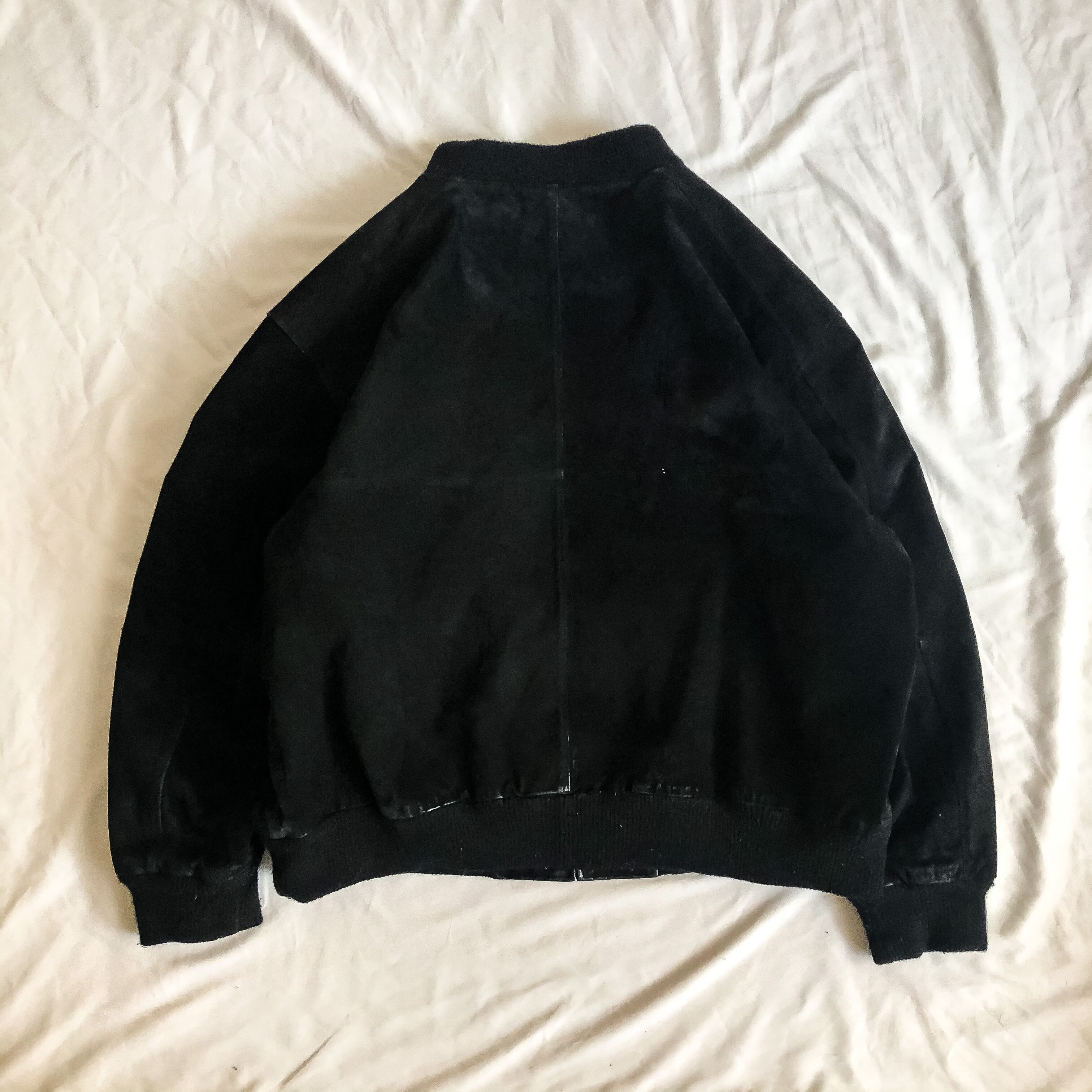 1990's~ bigsize black suede leather bomber jacket