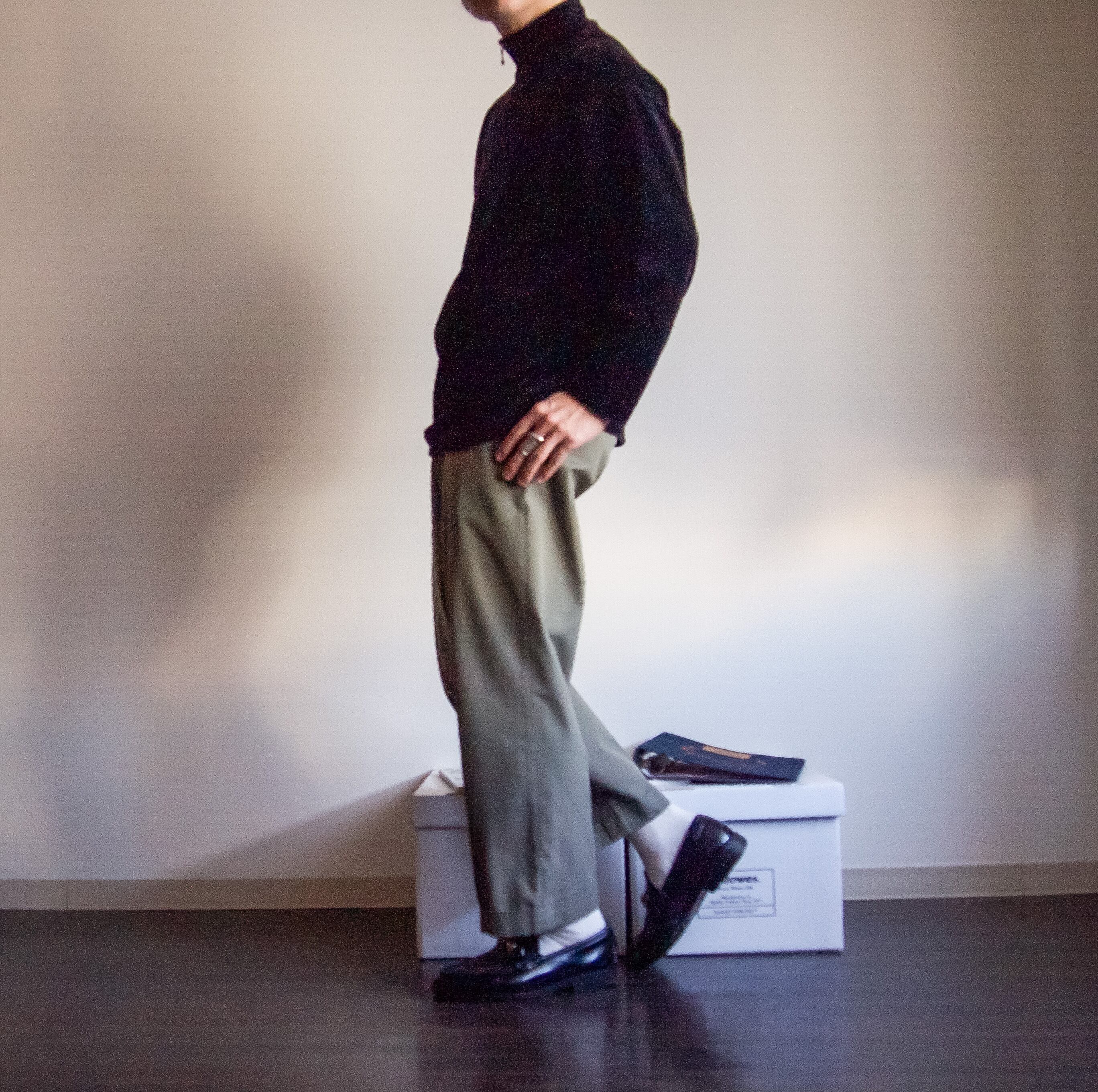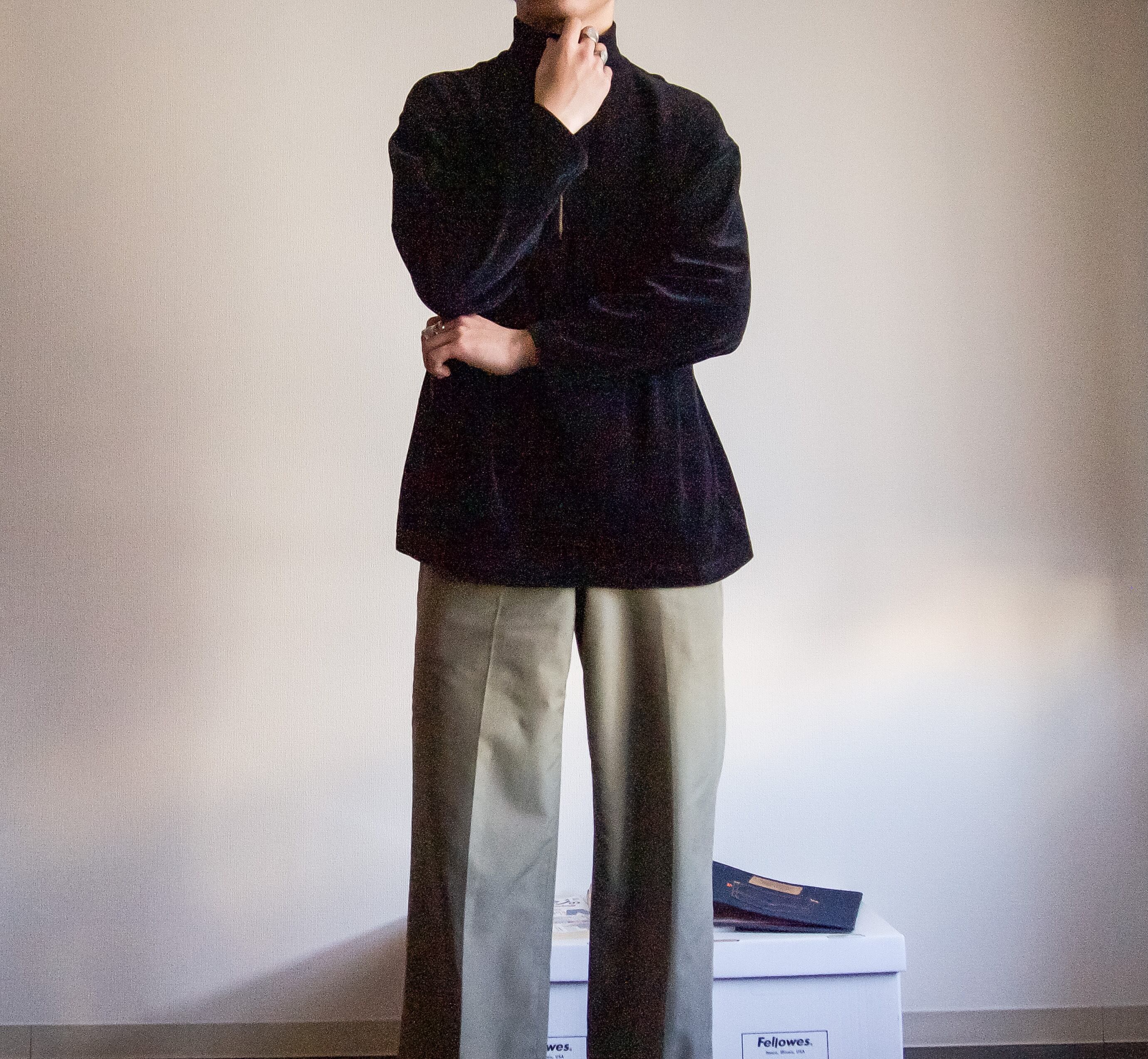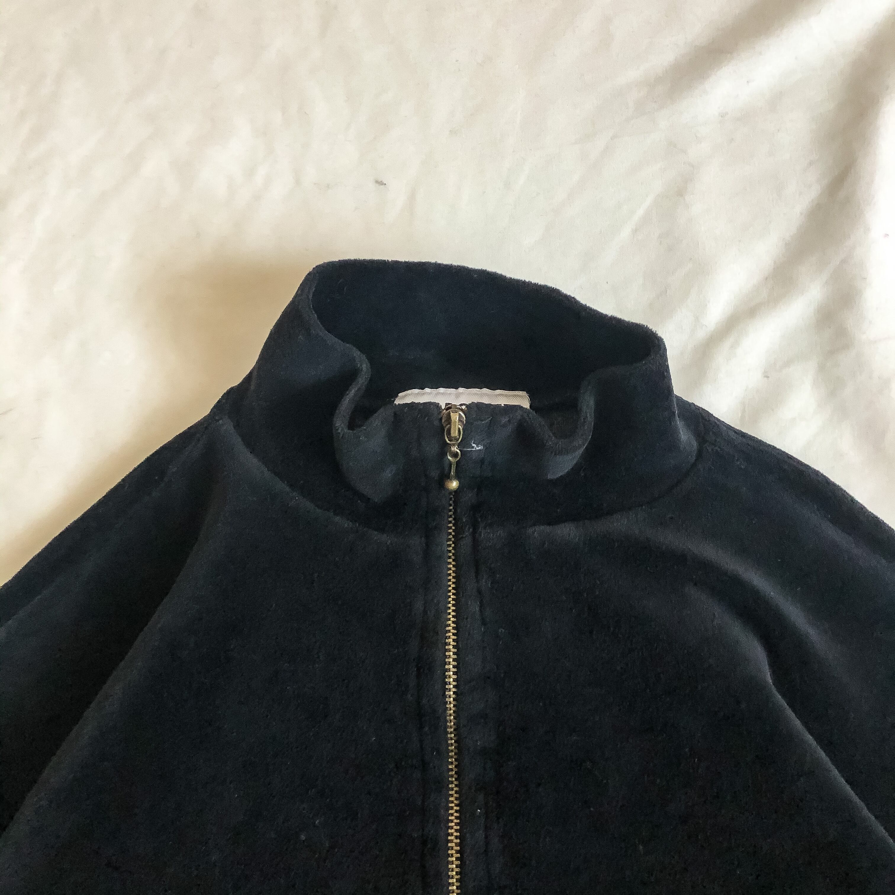 ゆるめのサイズ感にブラックのベロアが洒落た一着ですね。