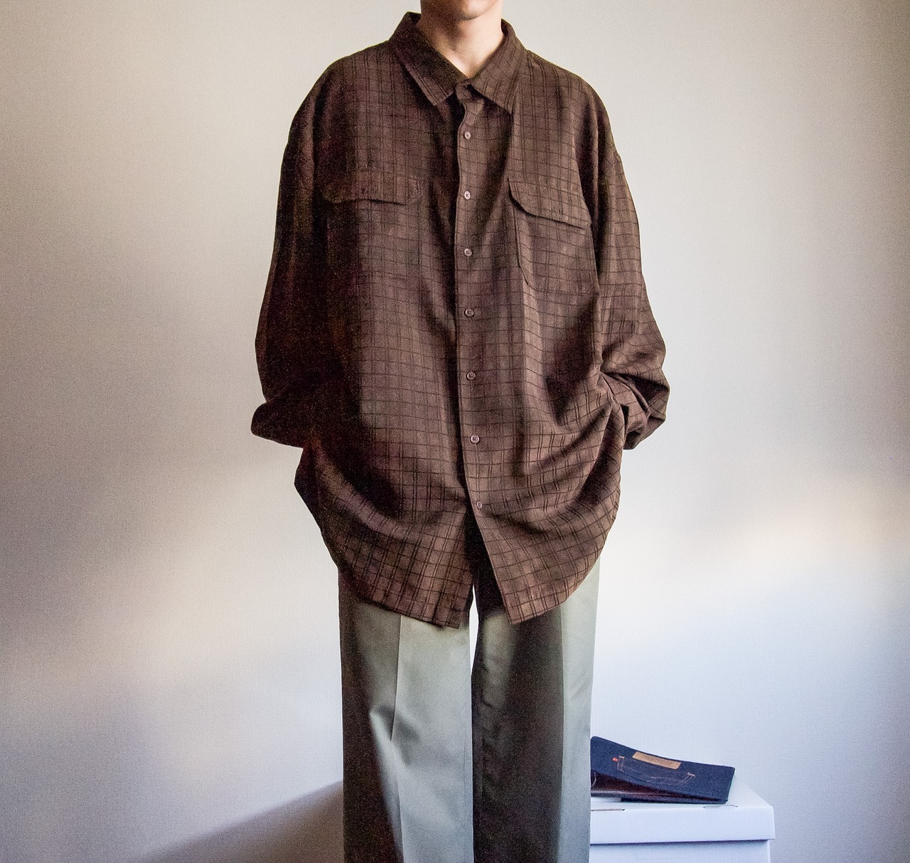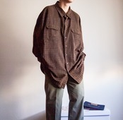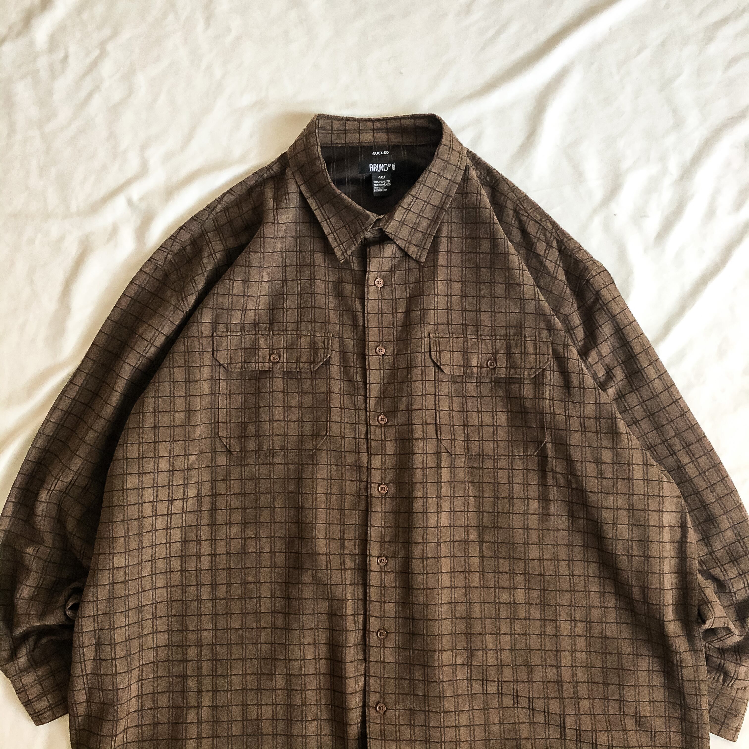 特徴 :無地が多いフェイクスエードですが珍しいチェック柄になったフェイクスエードシャツ。