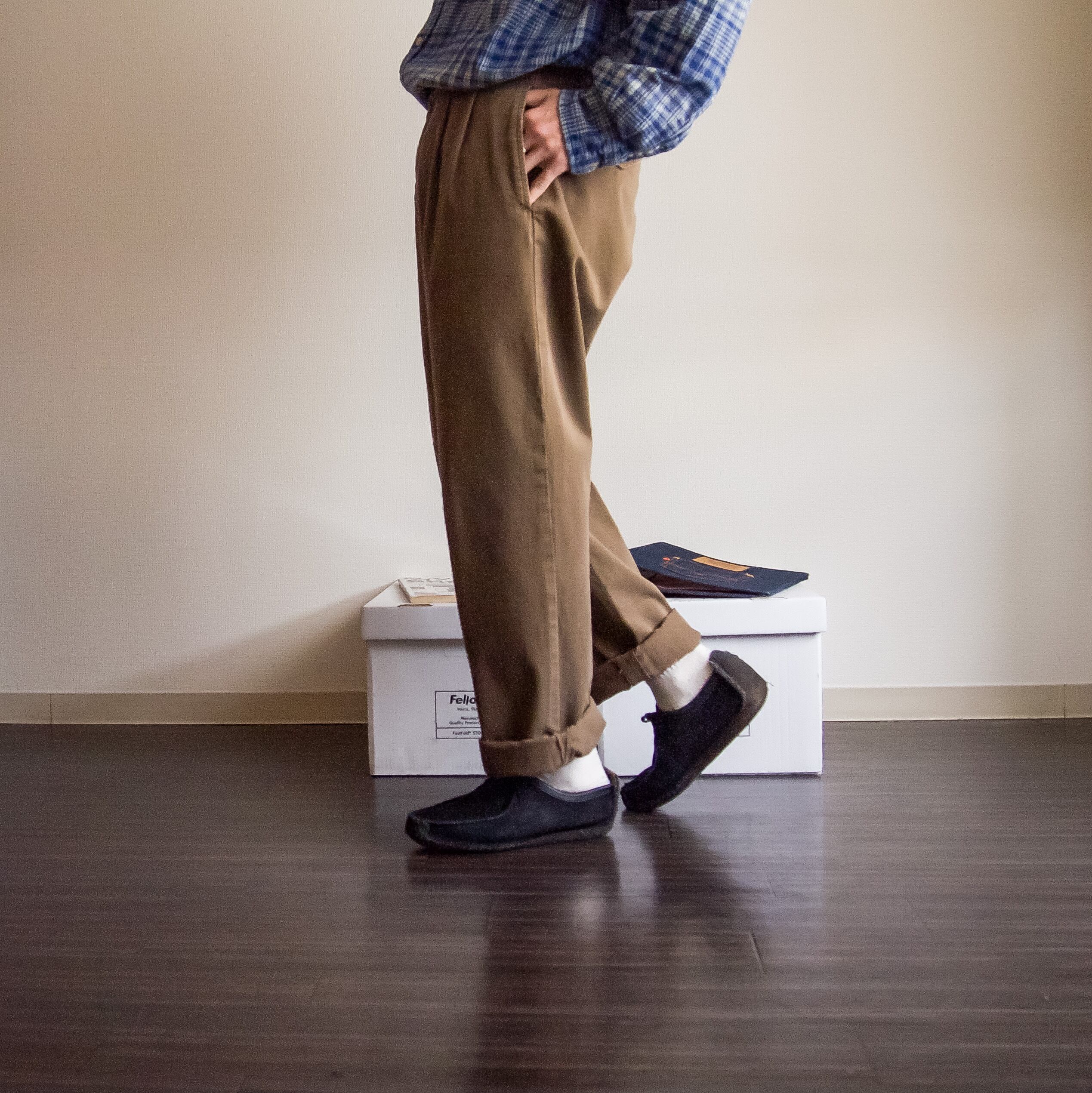 センタープレスが入り裾はダブルのスラックスタイプ。