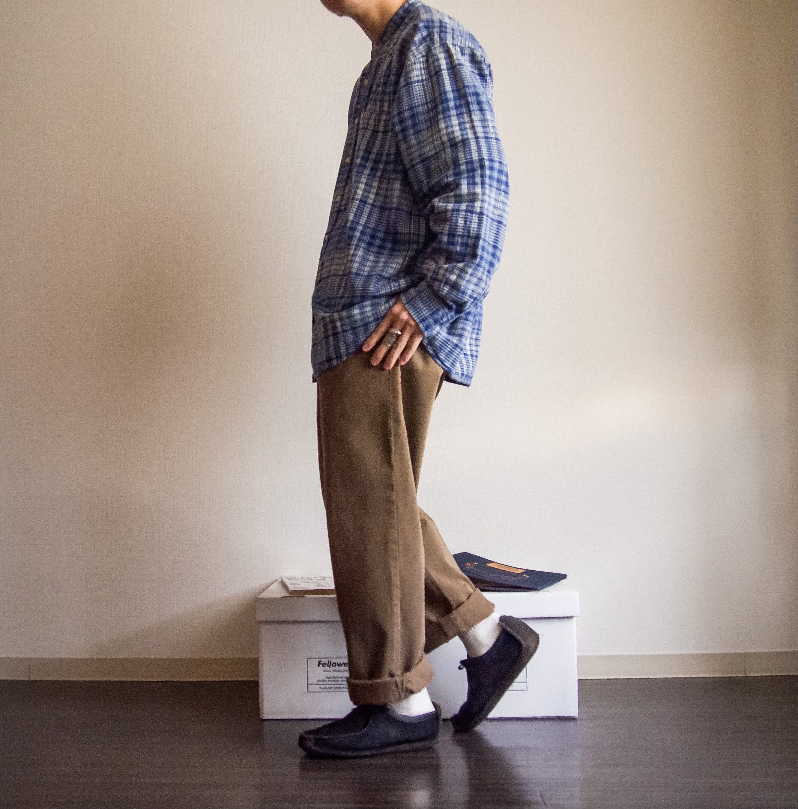 ネルではあまり見ない襟周りのスッキリとしたバンドカラーなのもポイント。