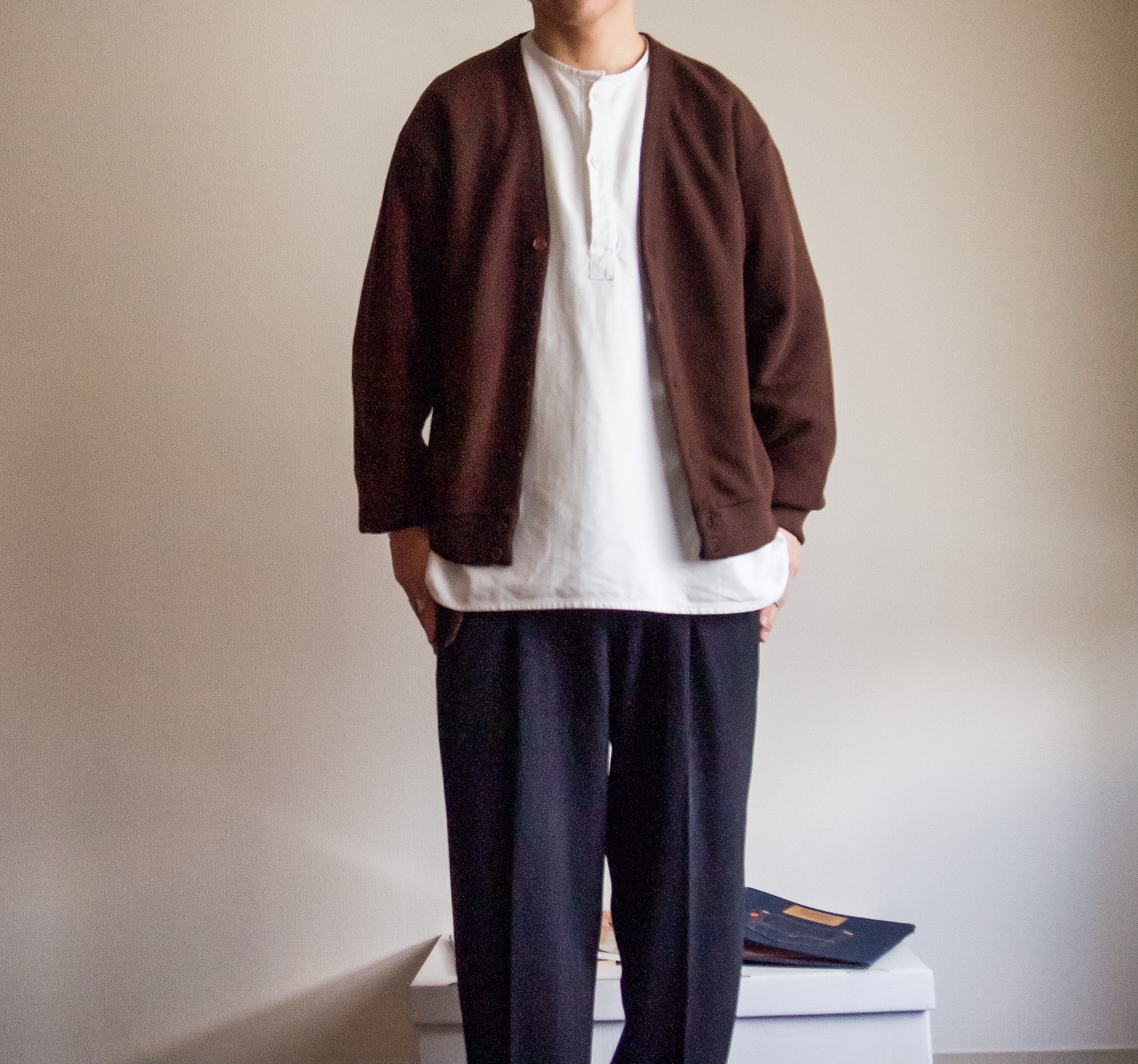 特徴 :定番なブラウンカラーのヴィンテージアクリルカーディガン。