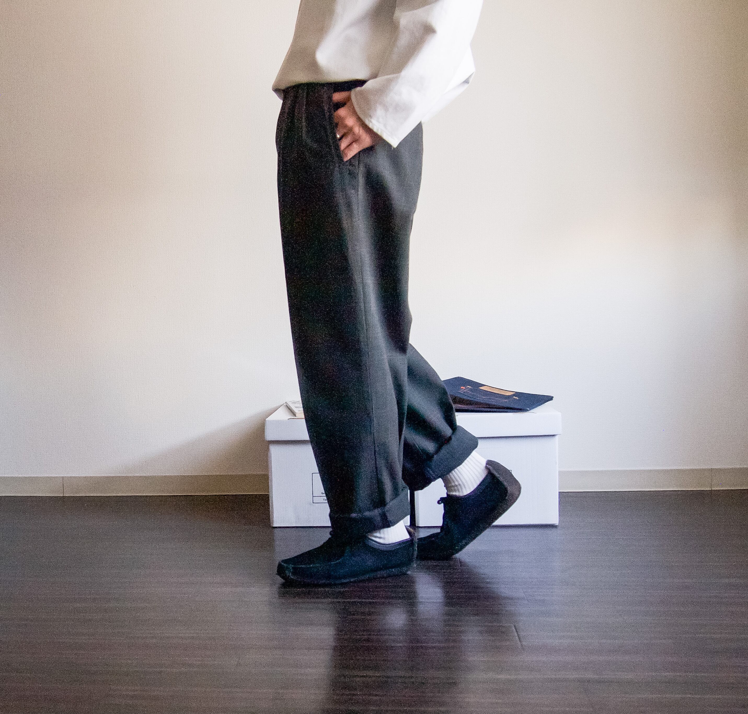少し内側に付くスラッシュポケットも好きなディテール。