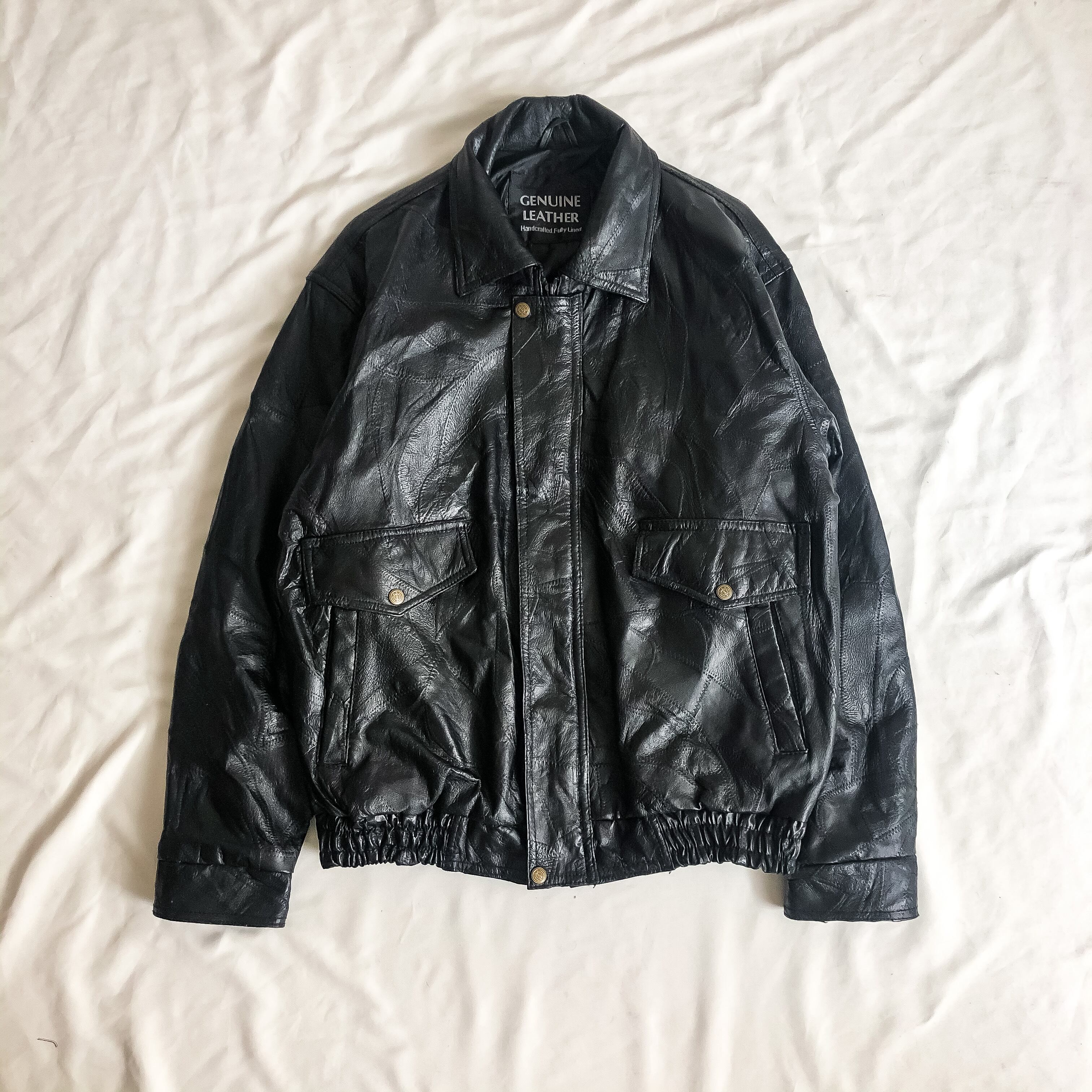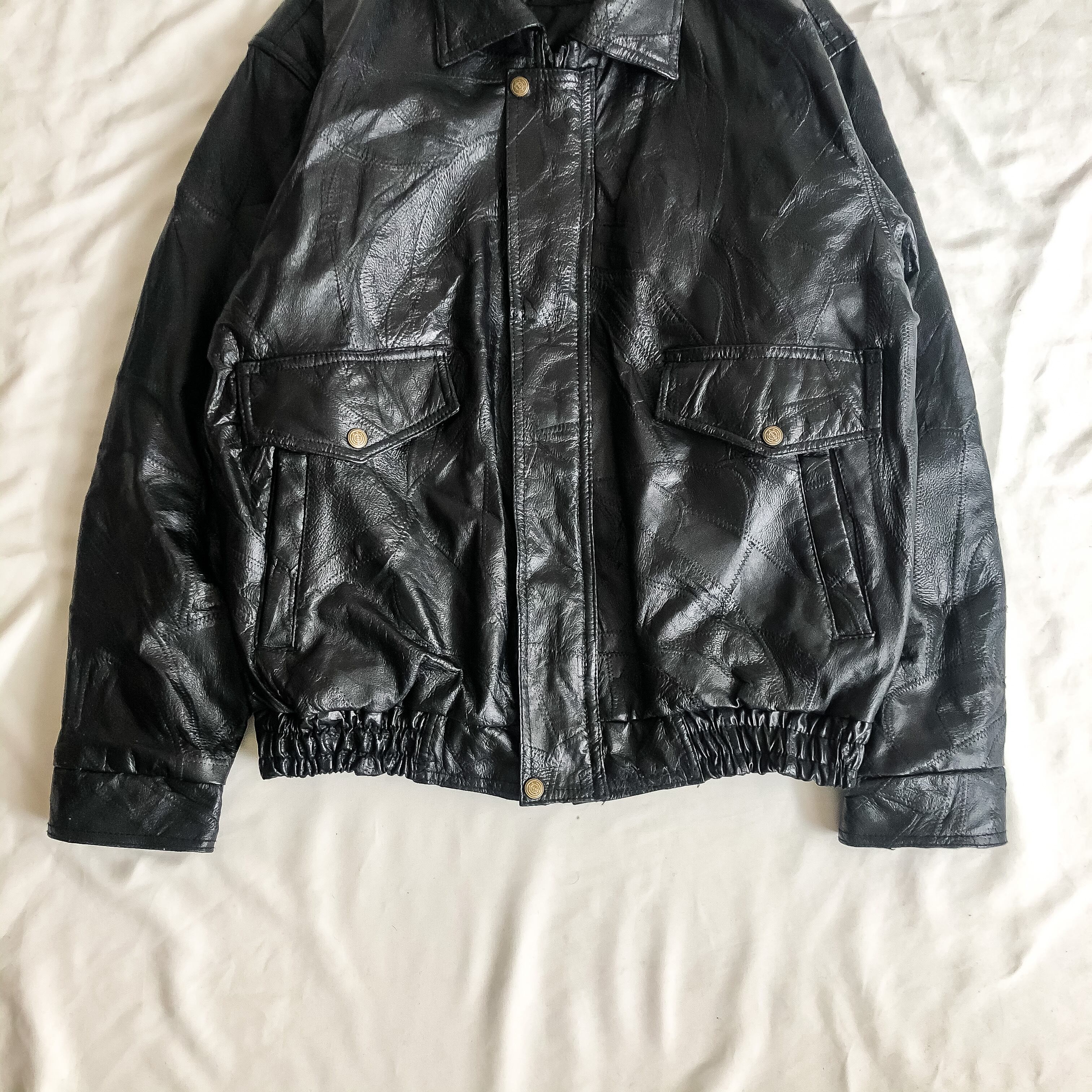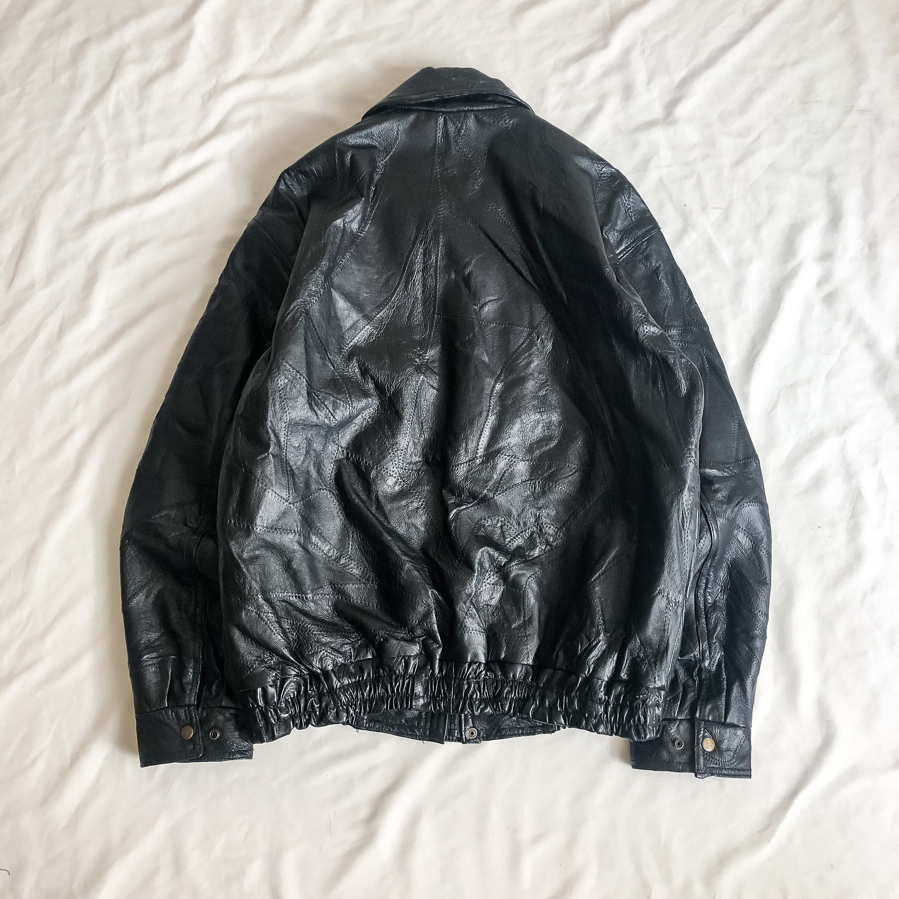 特徴 :ブラックカラーにパッチワークのようなデザインが秀逸な1990's~頃のレザージャケット。