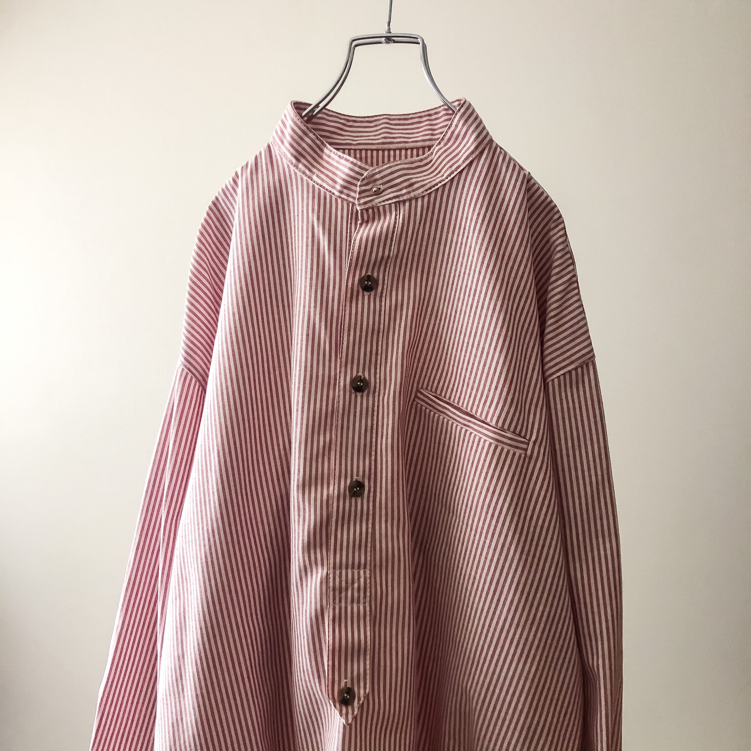 1990's stripe pattern band collor fisherman smock shirt made in USA