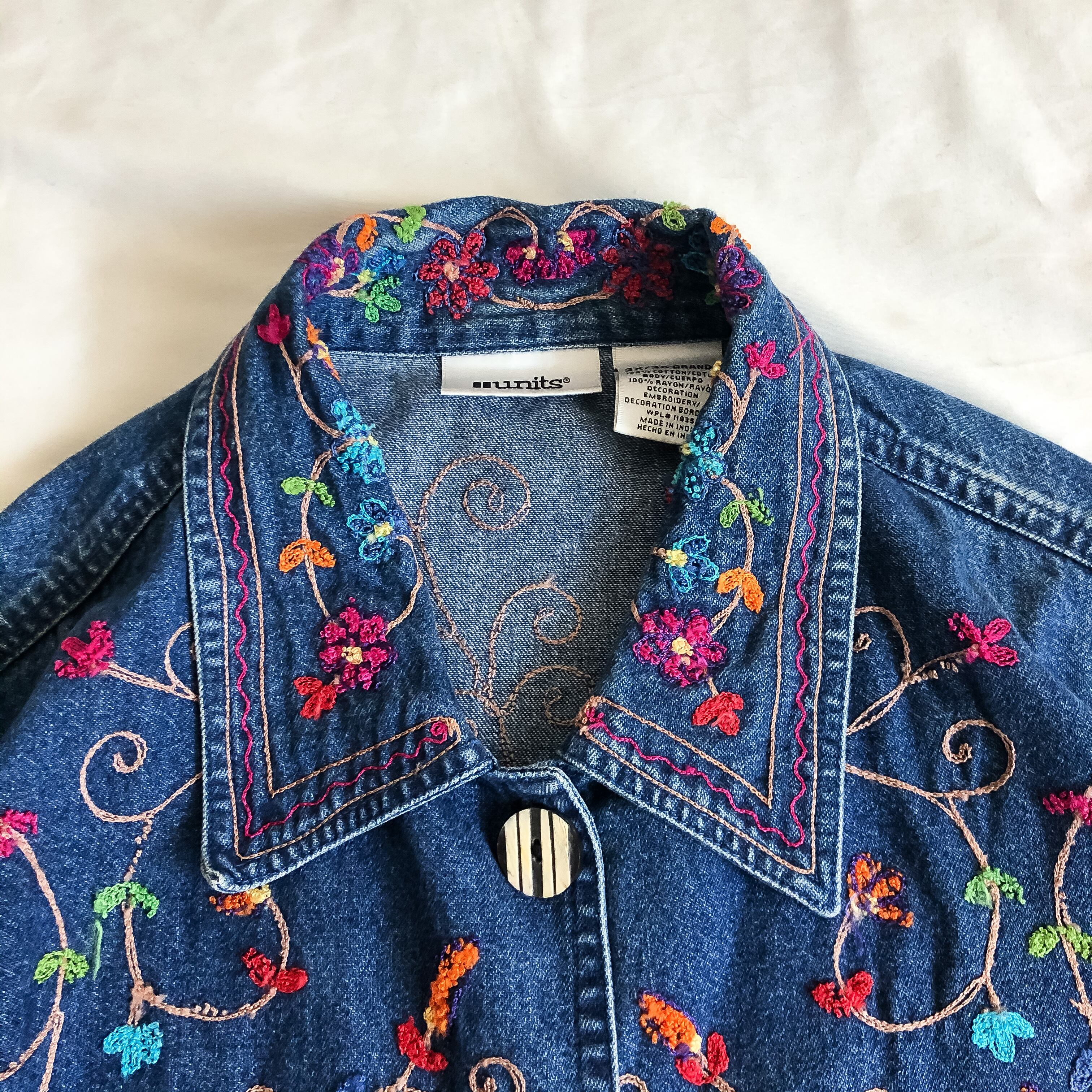 特徴 :全体に入る花や草木などのインド刺繍がグッドなデニムジャケット。