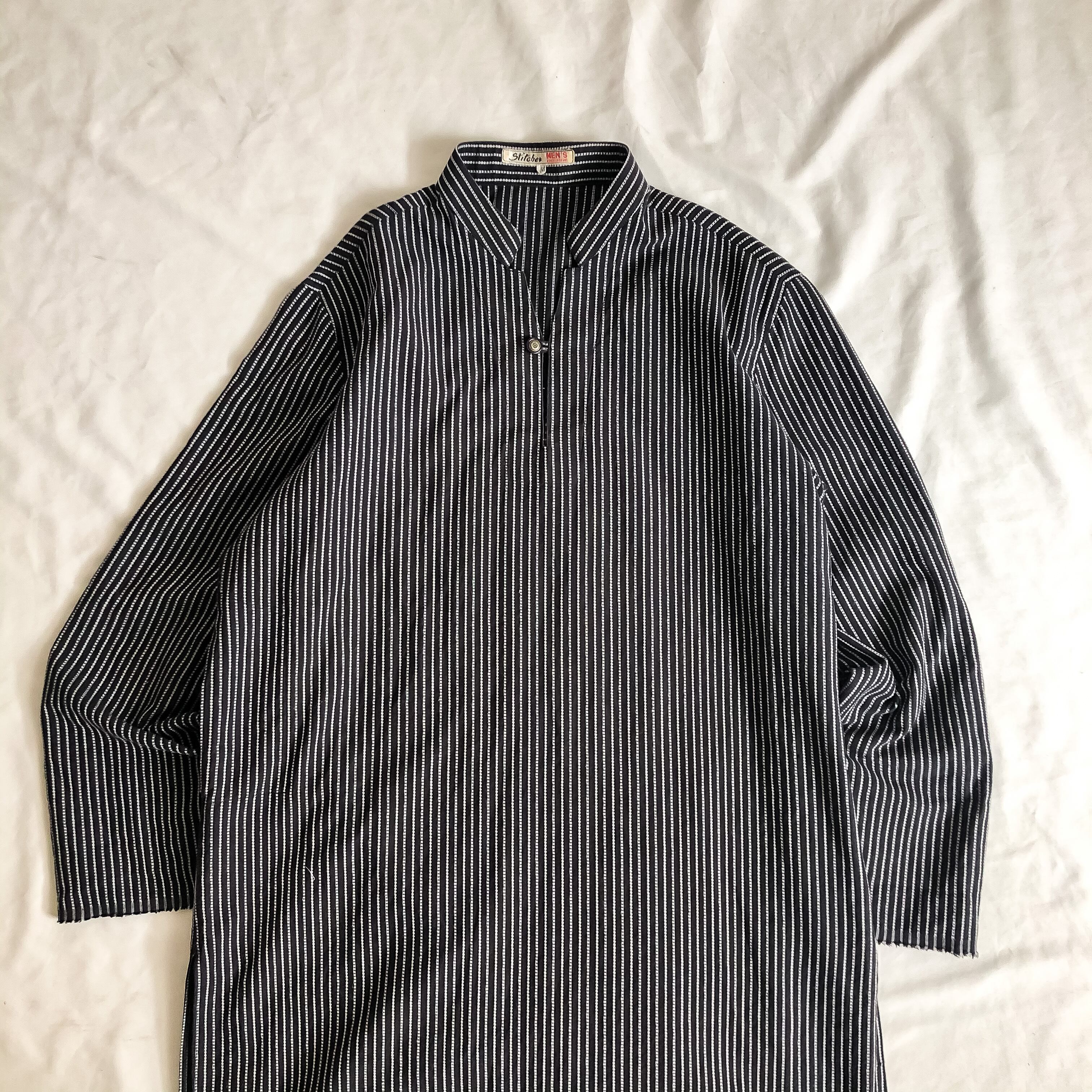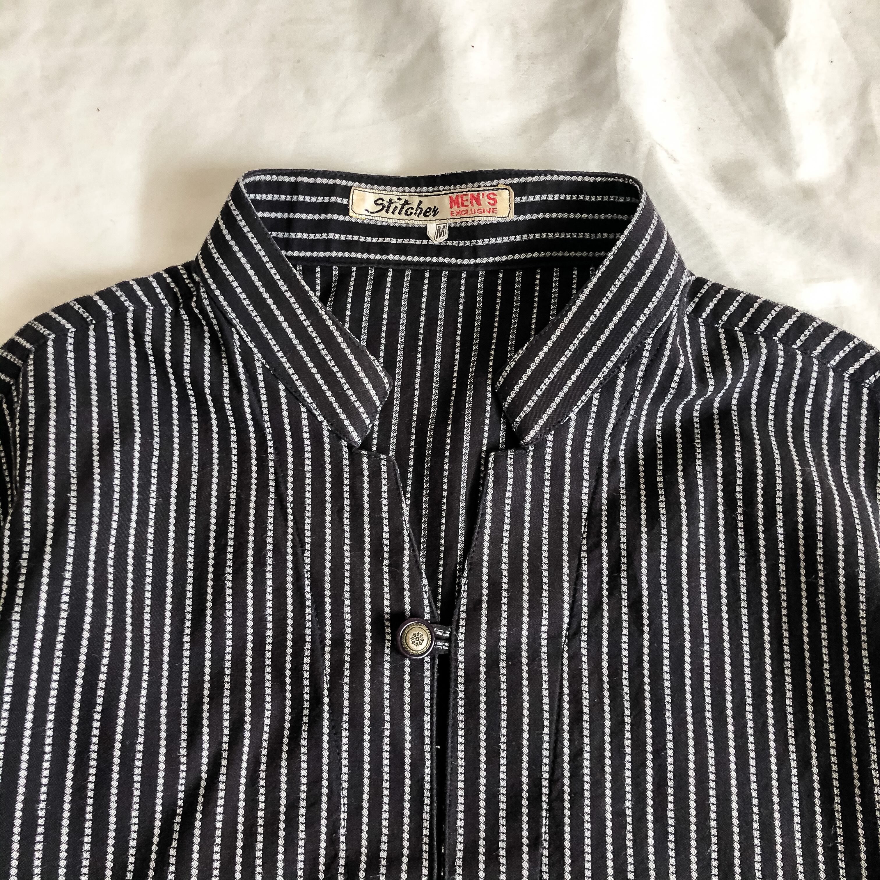 1970's~1980's stand collar stripe pattern grandfather shirt