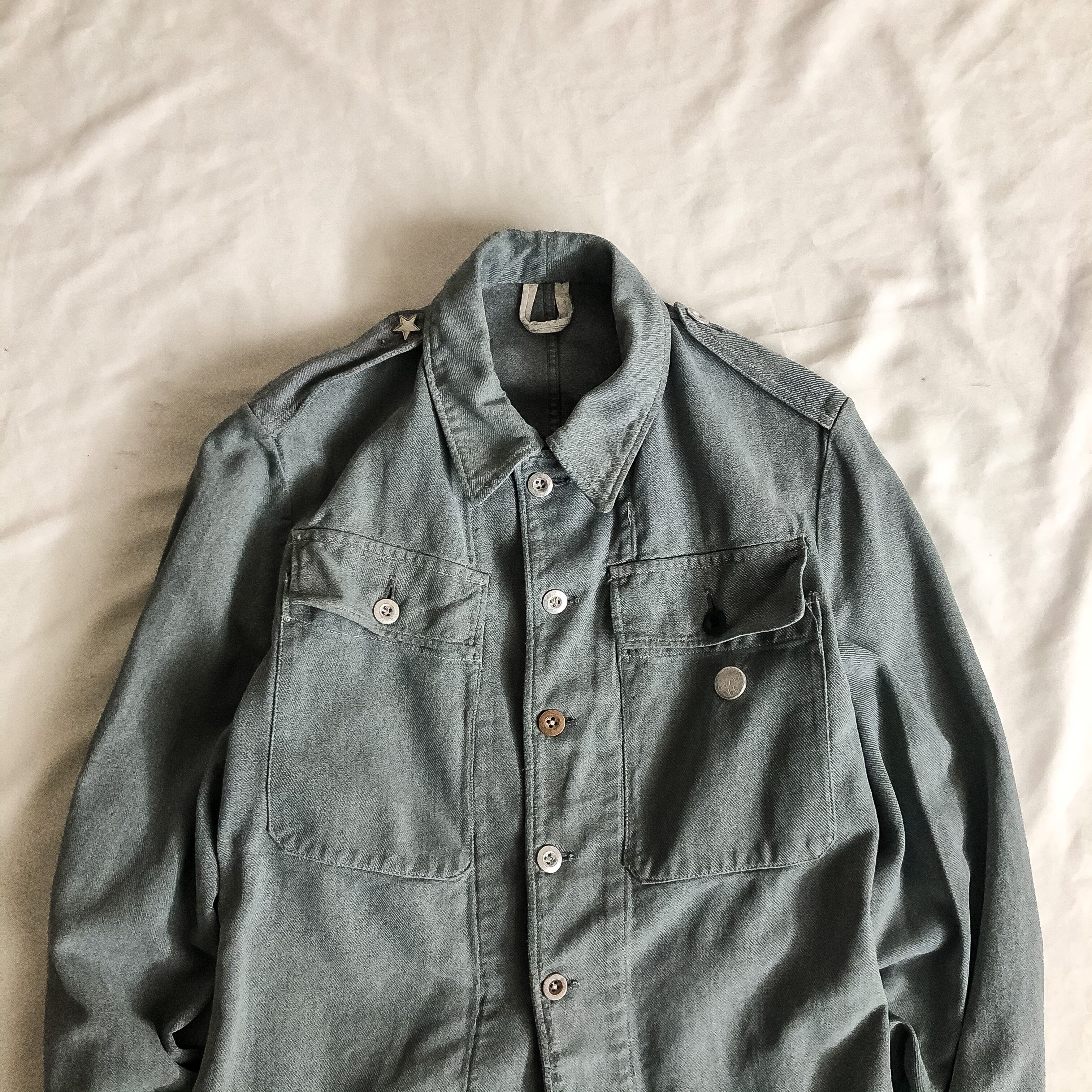 少しグレーがかった独特な色味は唯一無二で、どこを取っても雰囲気の良いユーロミリタリーならではな魅力の詰まった一着です。