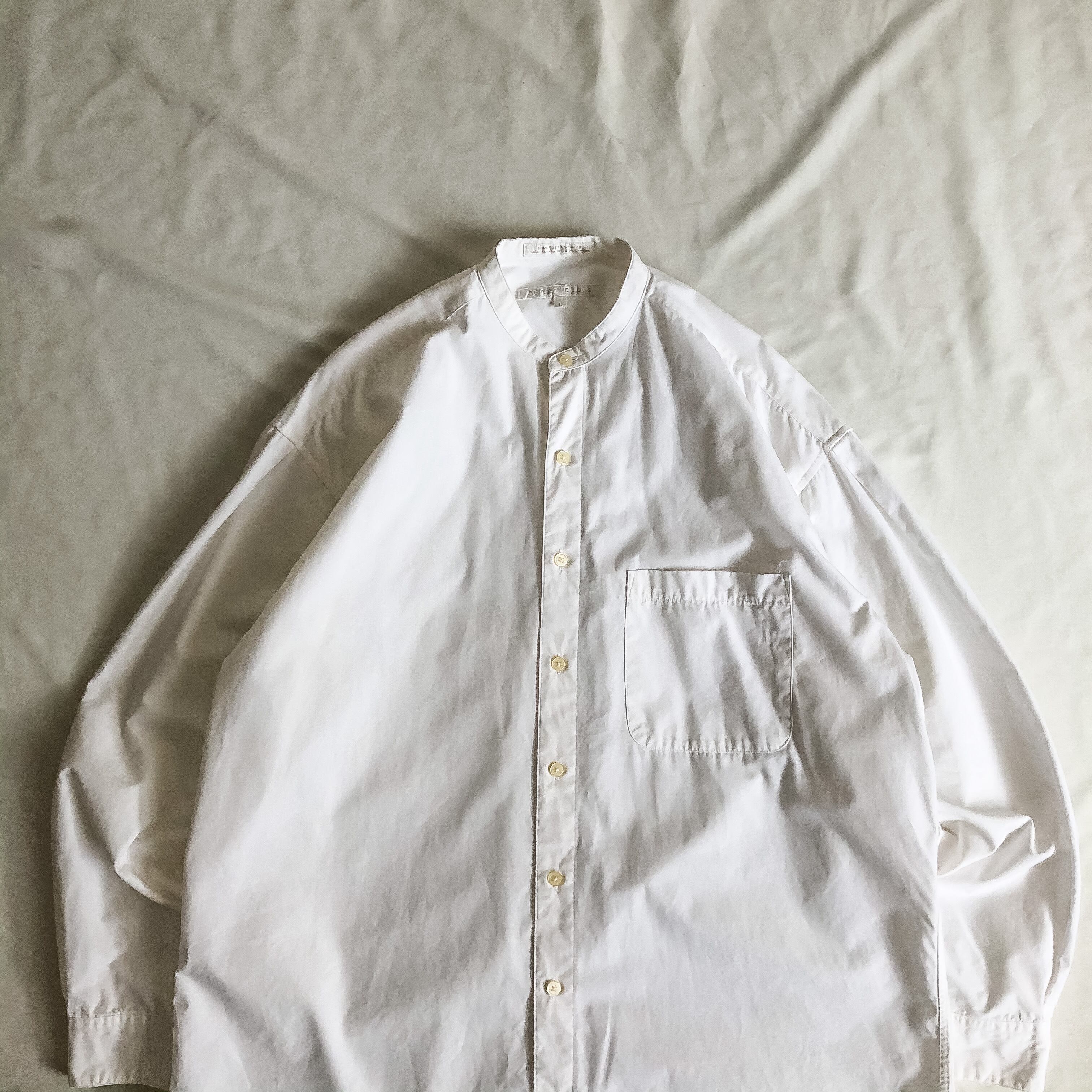 1990's~ bigsize white cotton band collar shirt