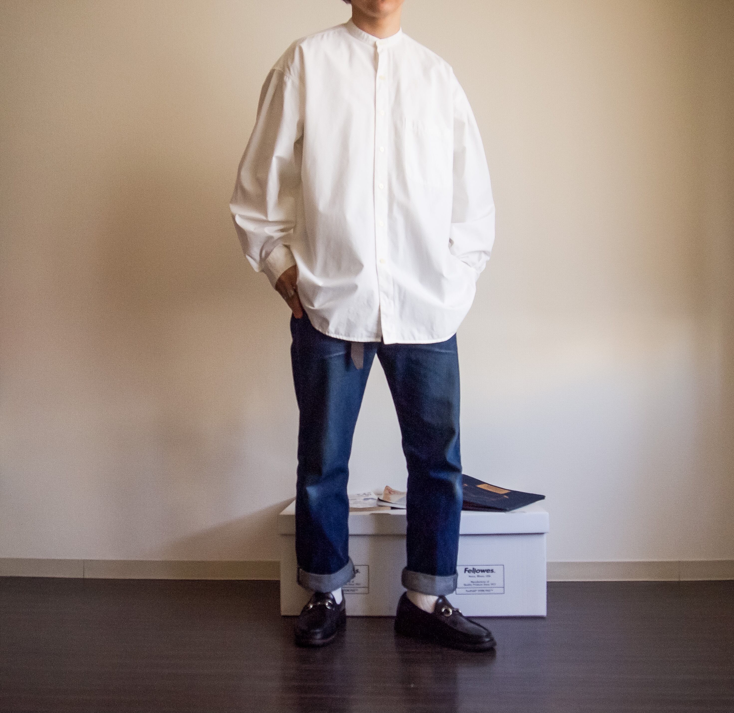 特徴 :当店で好評いただいているバンドカラーシャツですが、その中でも人気なホワイトカラーの物が入荷しました。