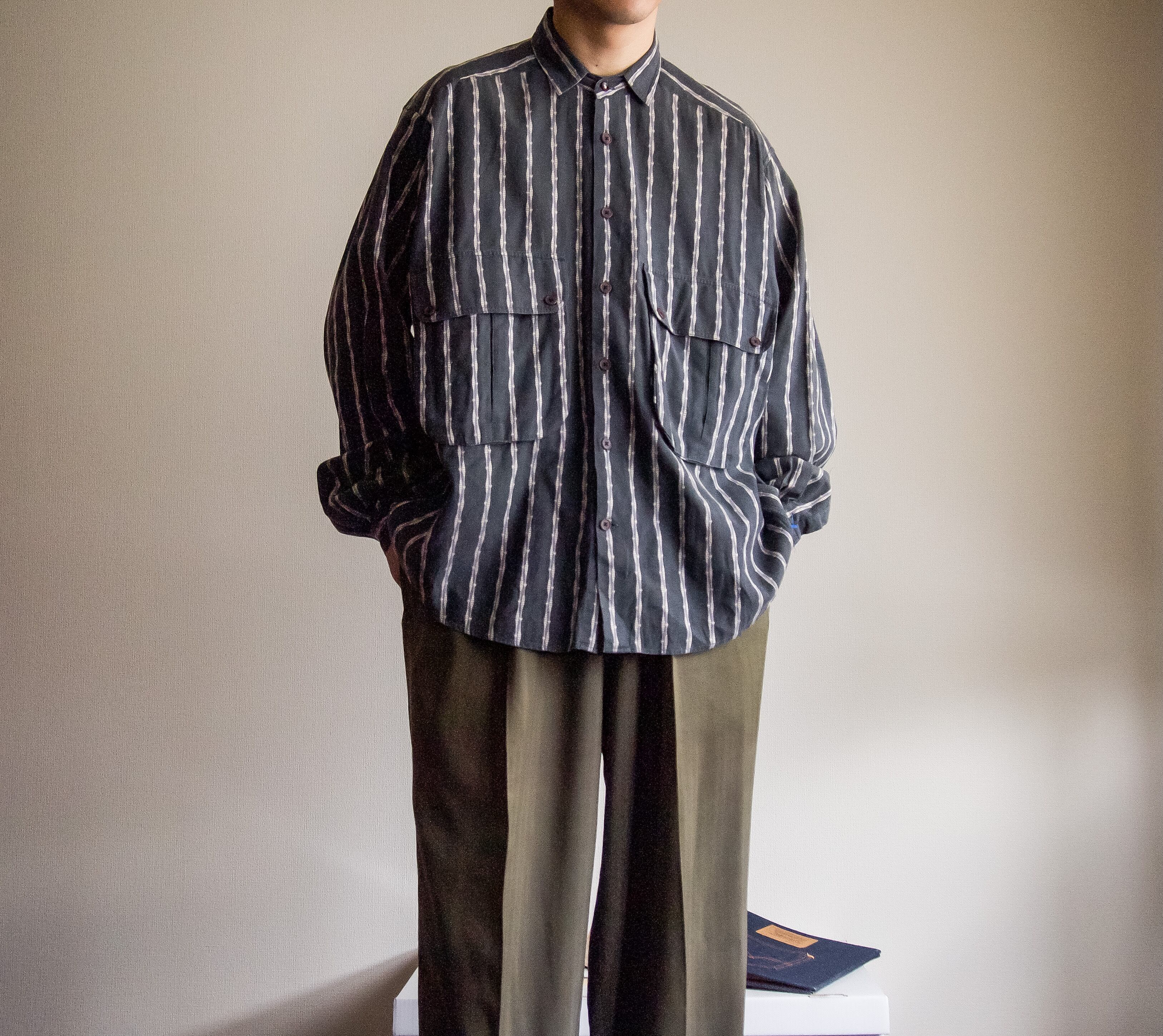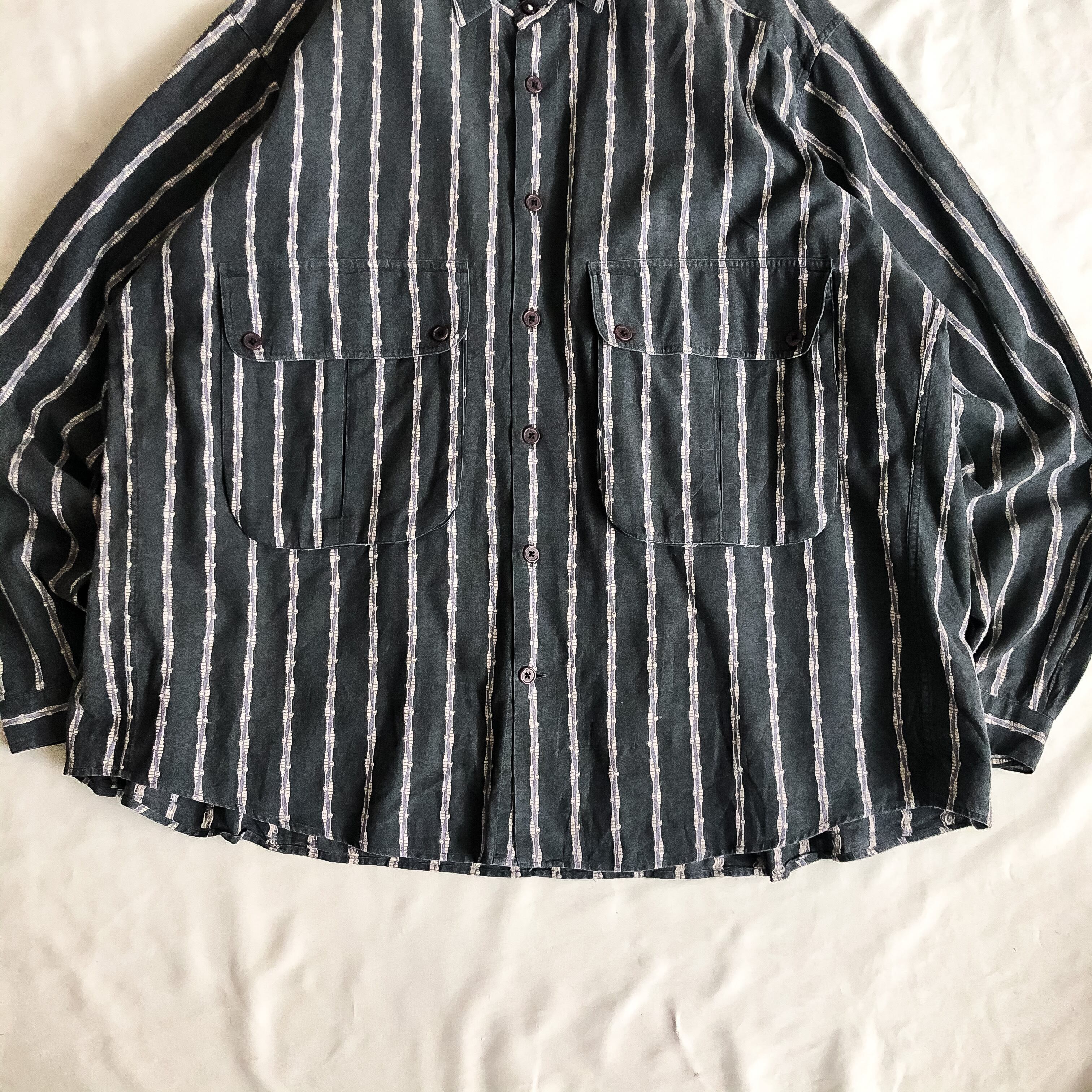 特徴 :ブラックベースにグリーンのストライプ柄の1990's頃のGIORGIO ARMANIのコットンシャツ。