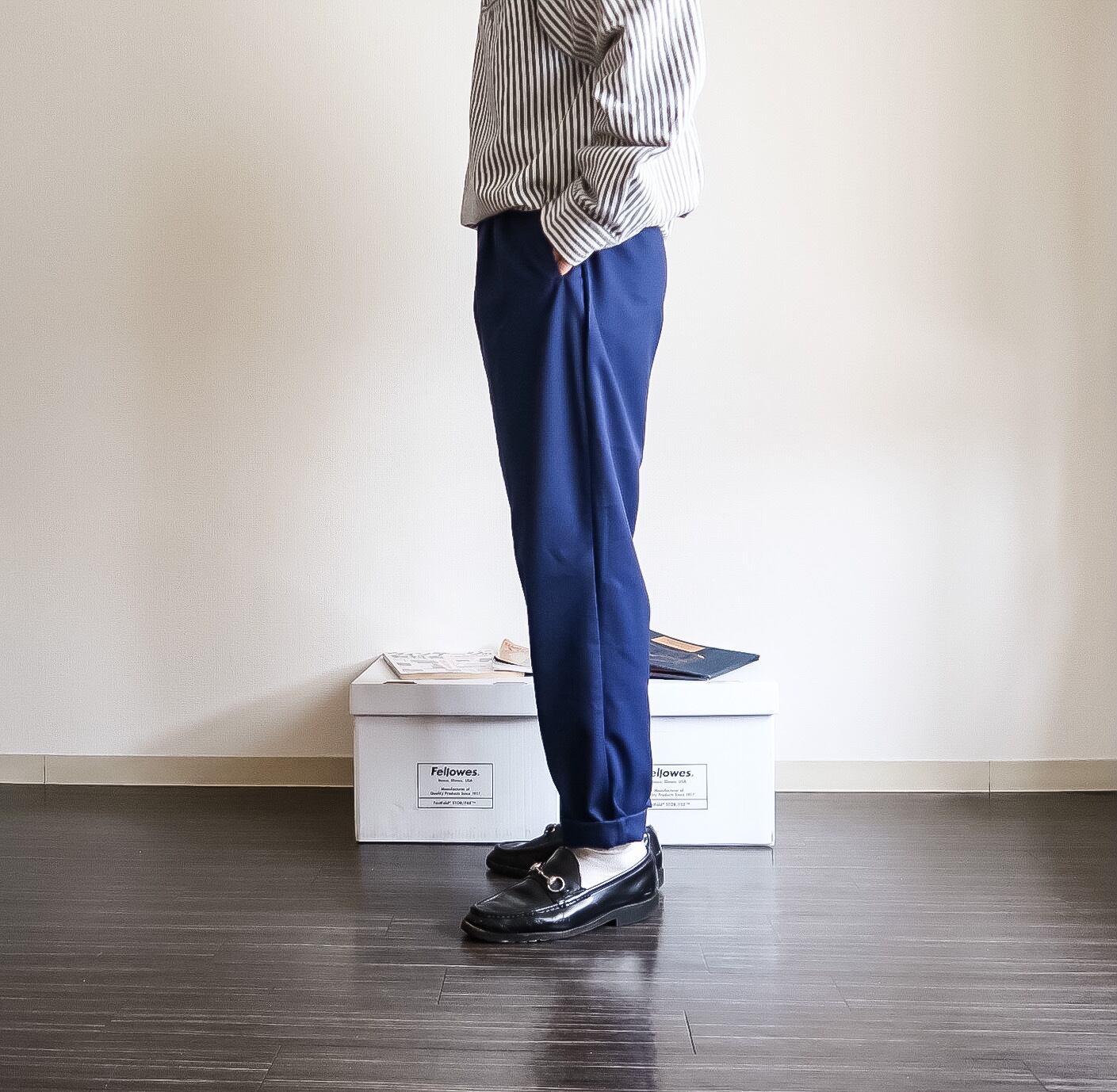 ツータック入りのもも周りは程よくゆるめで、裾にかけてテーパードのかかる綺麗なシルエット。