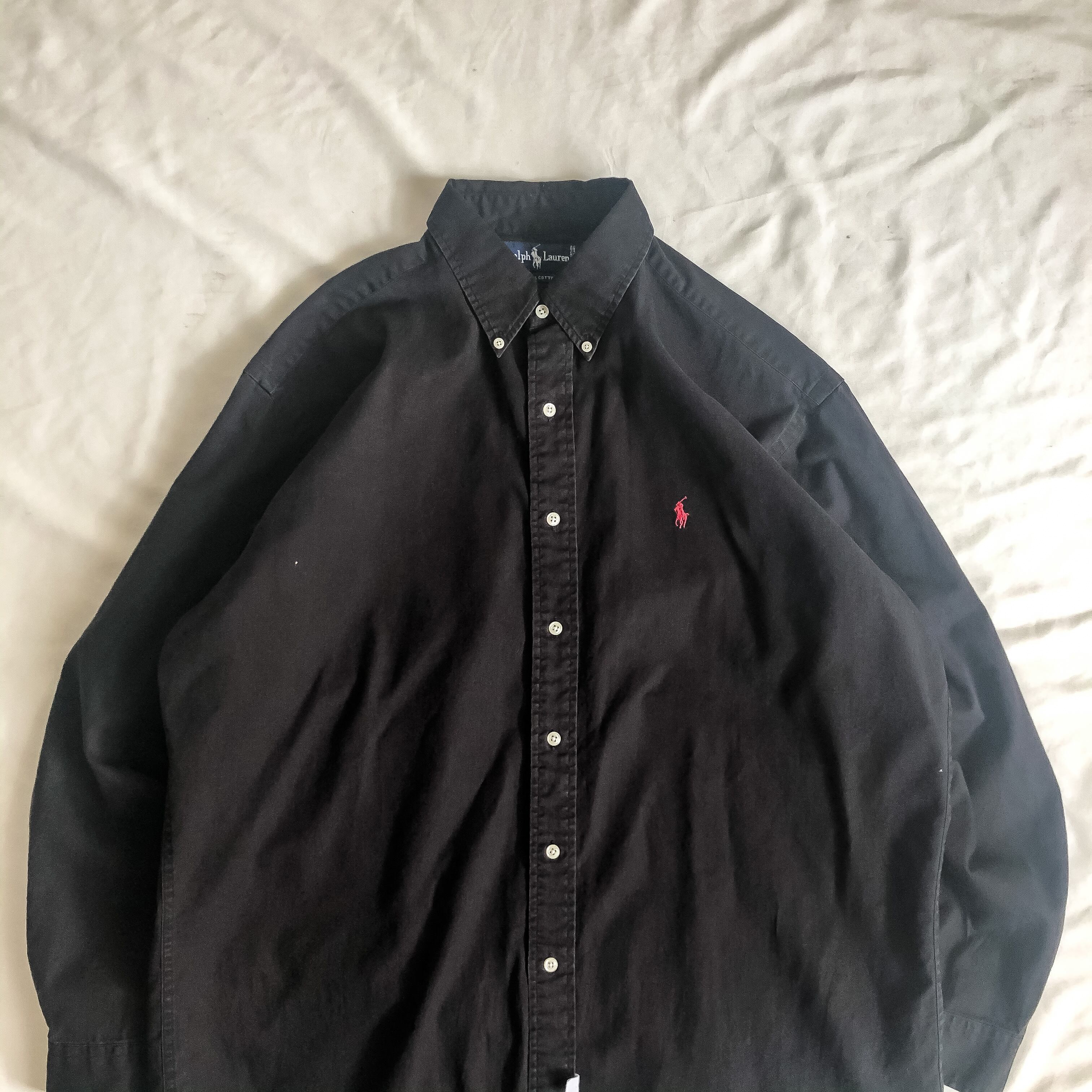 1990's~ "Ralph Lauren" bigsize black B/D cotton shirt