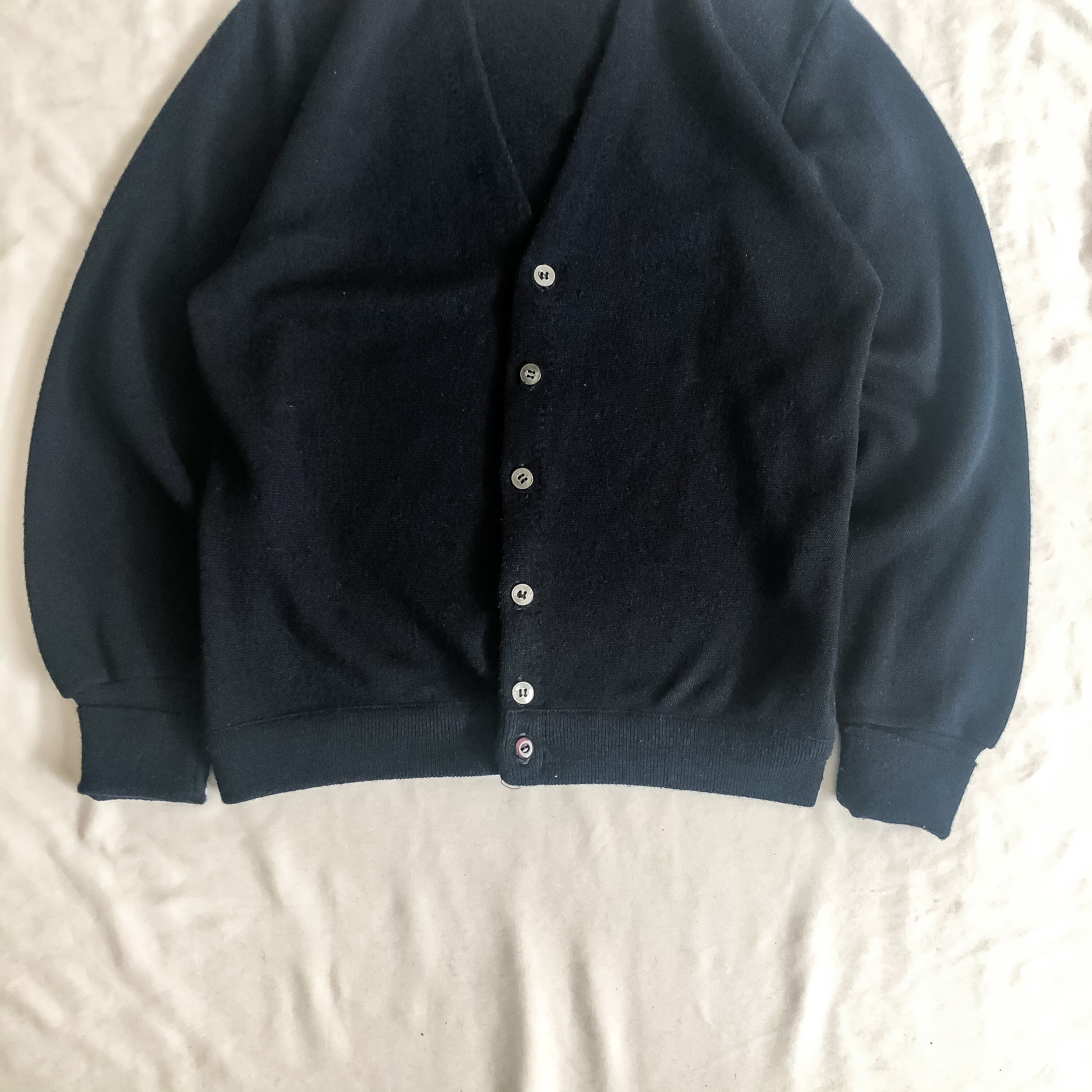 特徴 :ブラックに近いダークネイビーカラーのヴィンテージアクリルカーディガン。