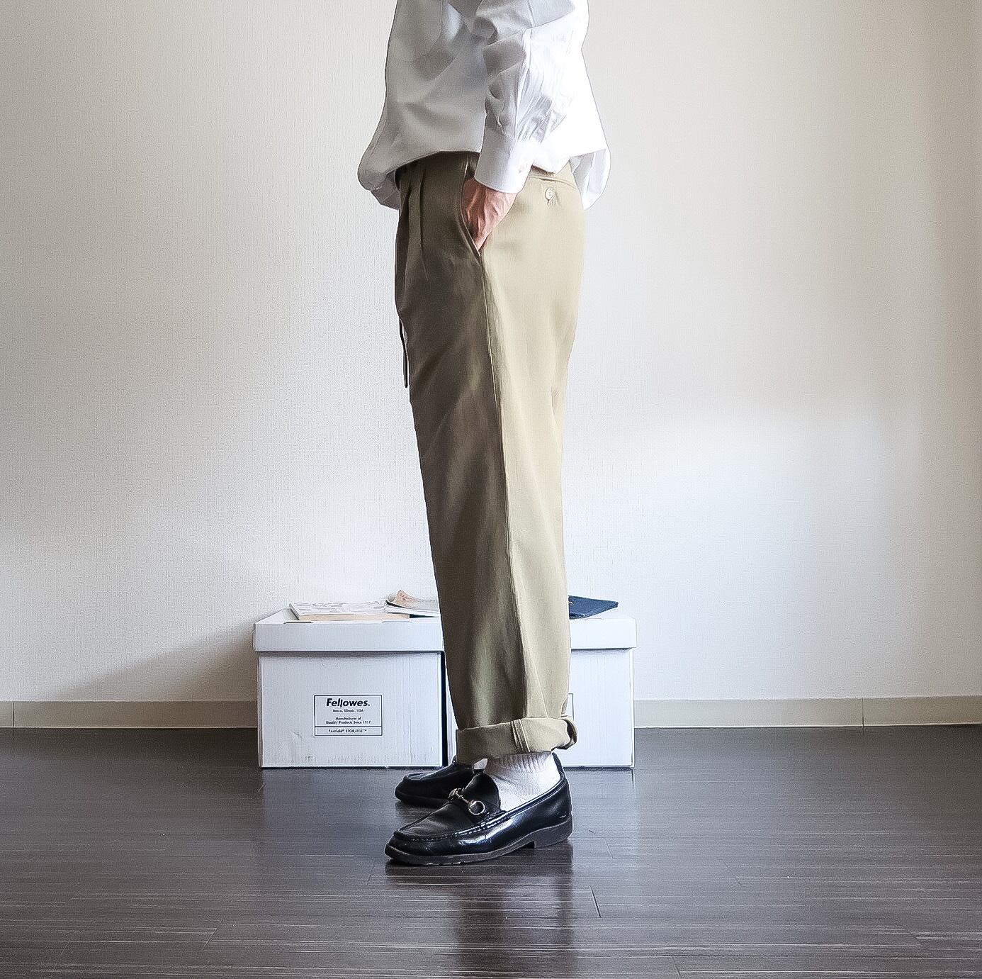 特徴 :ナチュラルな雰囲気の優しいカラーの1990's~頃のツータックスラックスパンツ。