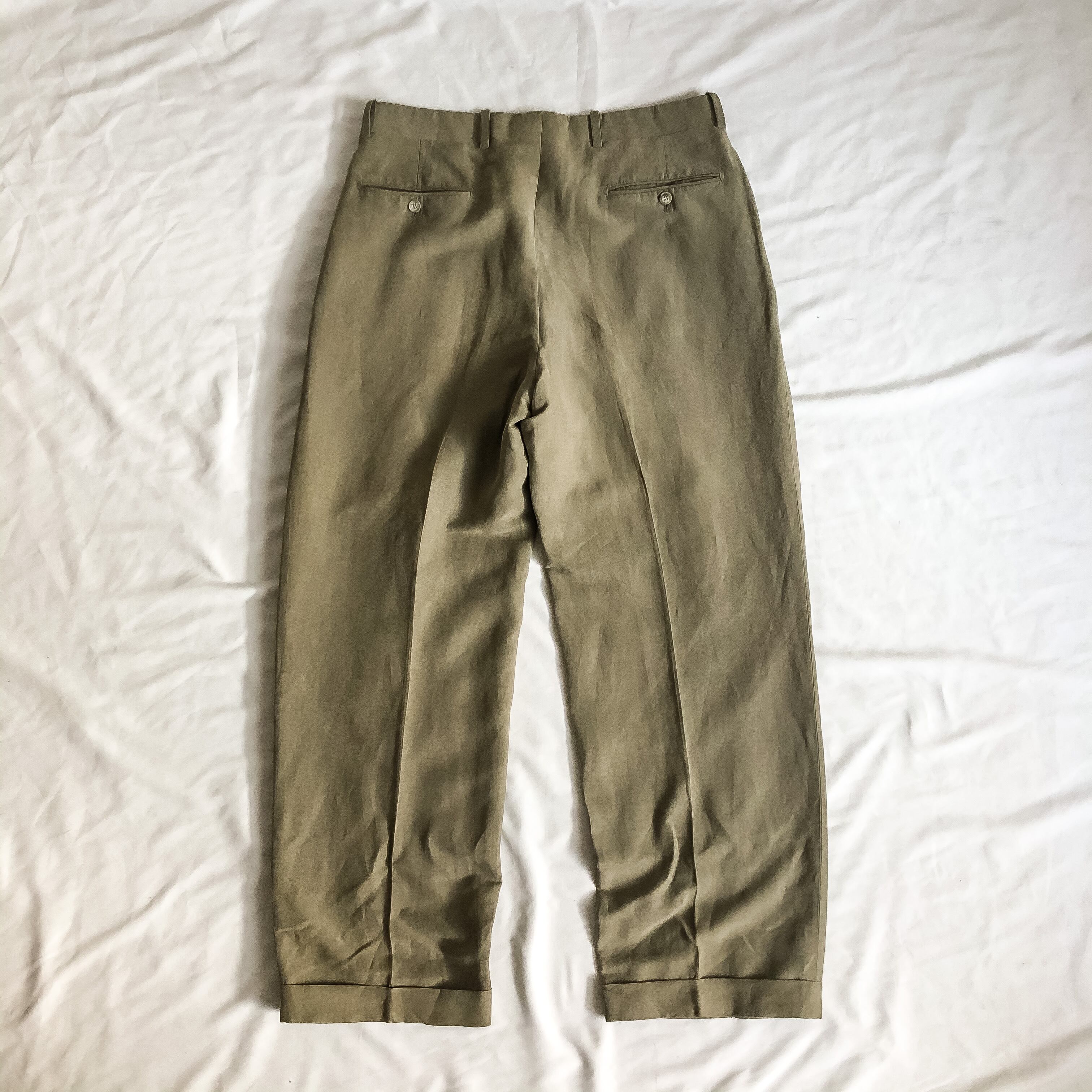 1990's~ green two tuck linen×silk slacks pants made in France