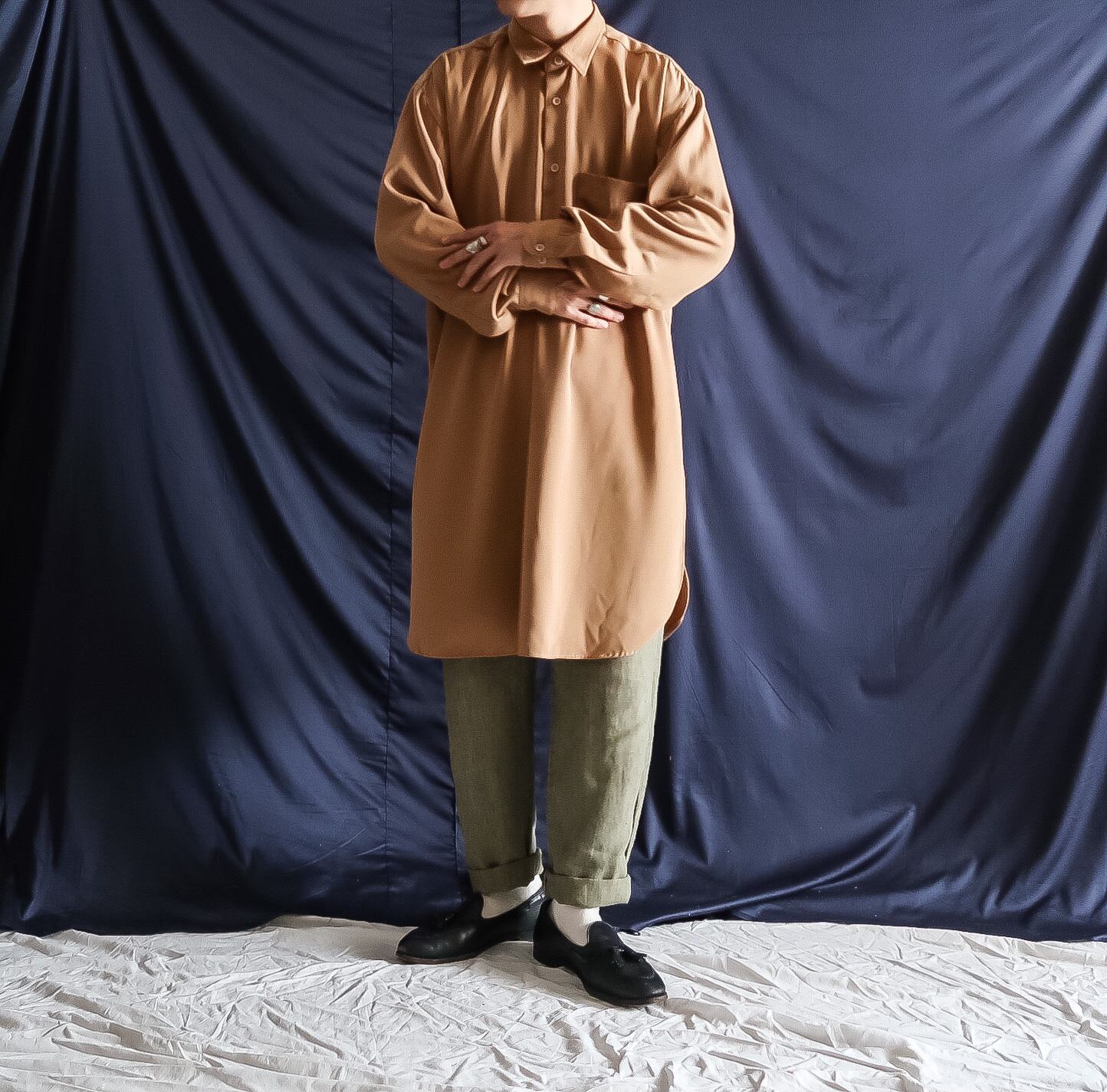 プルオーバーで着丈の長いこのディテールがグランパシャツの一番の魅力ですね。